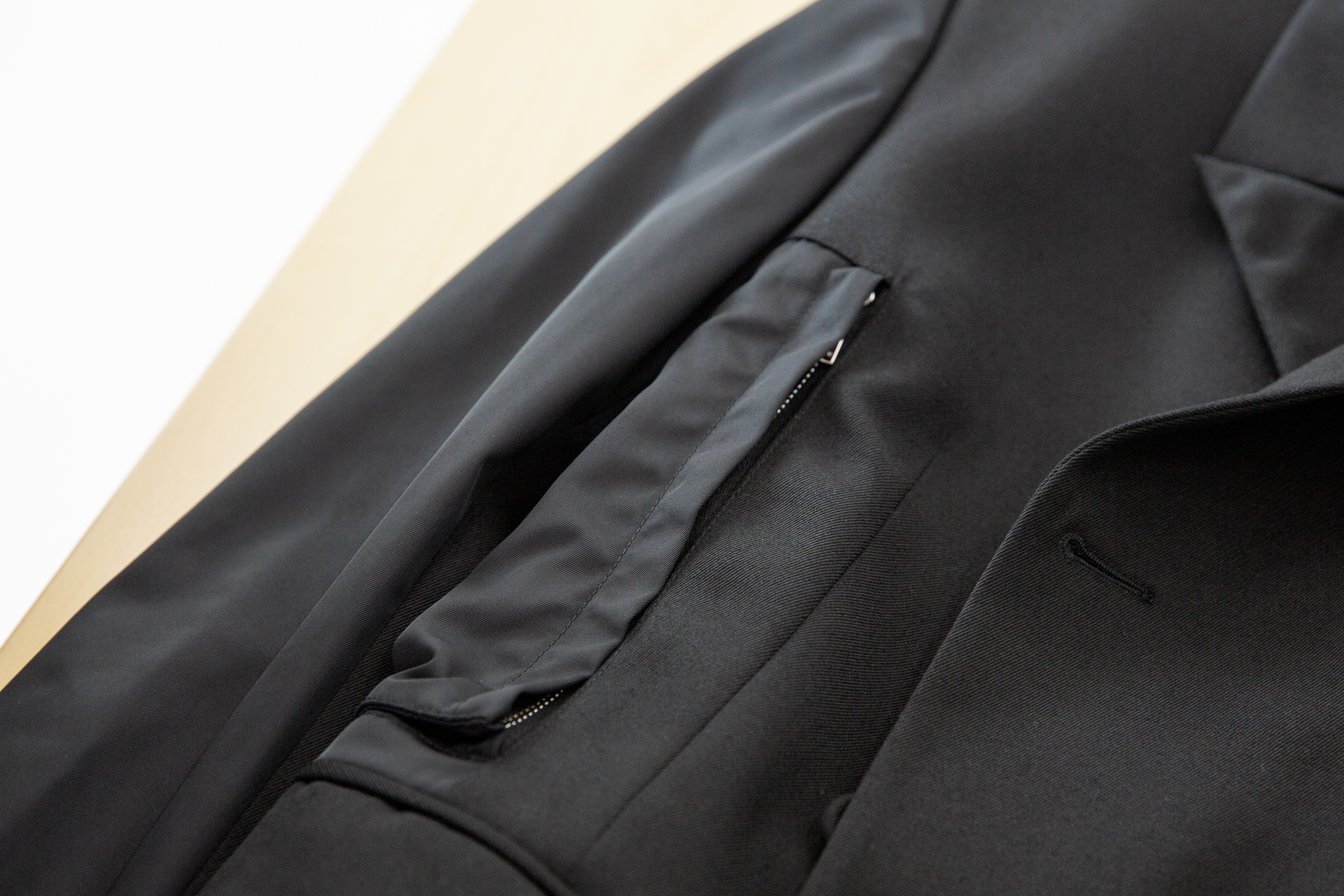 編集M:テーラードにしてはかなり複雑な作りだけど、ディテールが隠れるように作られているからか、見た目はミニマル。ナイロンがマットな質感でジャケットの素材と融合しているし、ディオールの端正な仕立てが生かされてます。