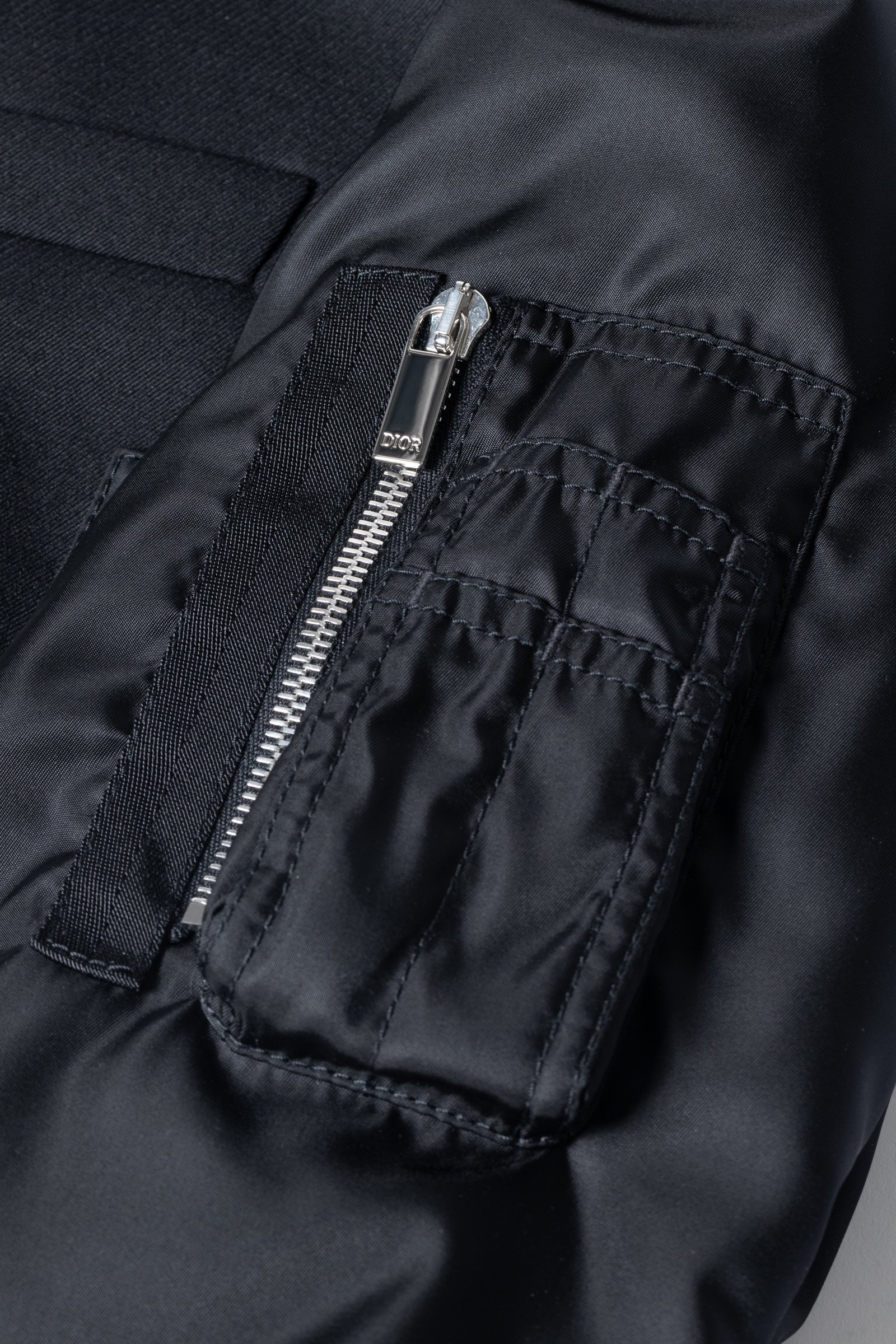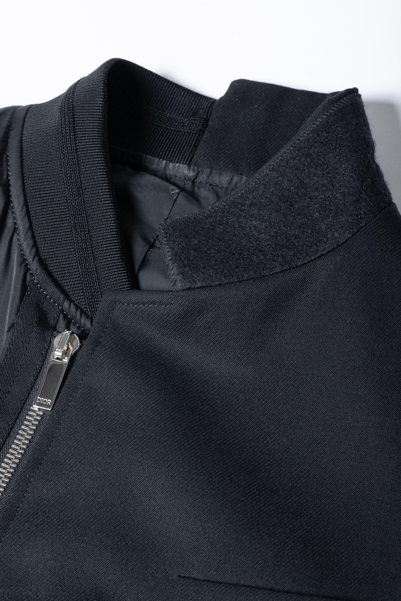 編集K:素材の良さはさすがディオール。リブもテンションが強めで、しっかりとボンバージャケットでありながら軍モノにはない高級感があります。腕は立体的なパターンで、二重になった袖口にはくるみボタンが。これもディオールのテーラードジャケットのディテールです。