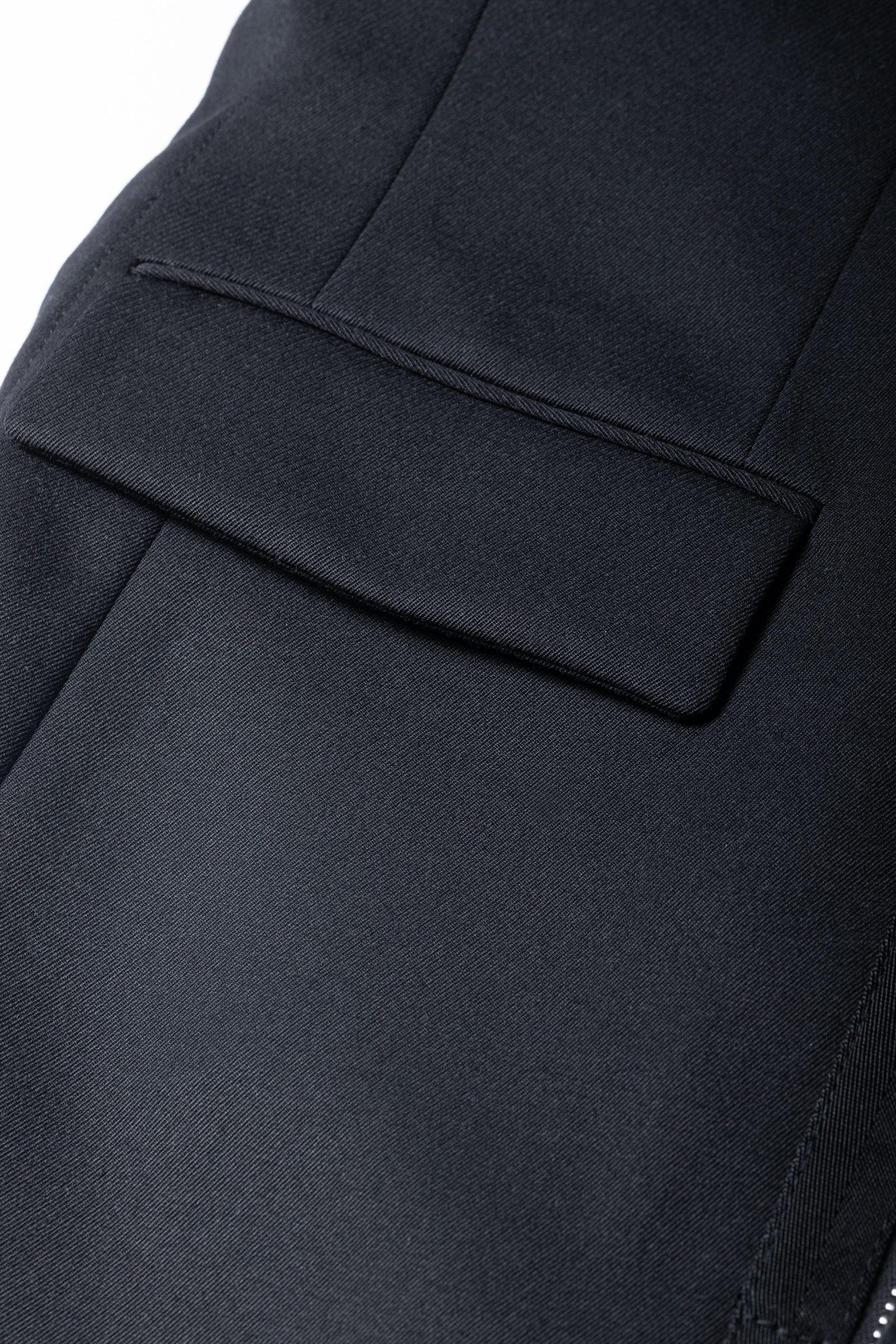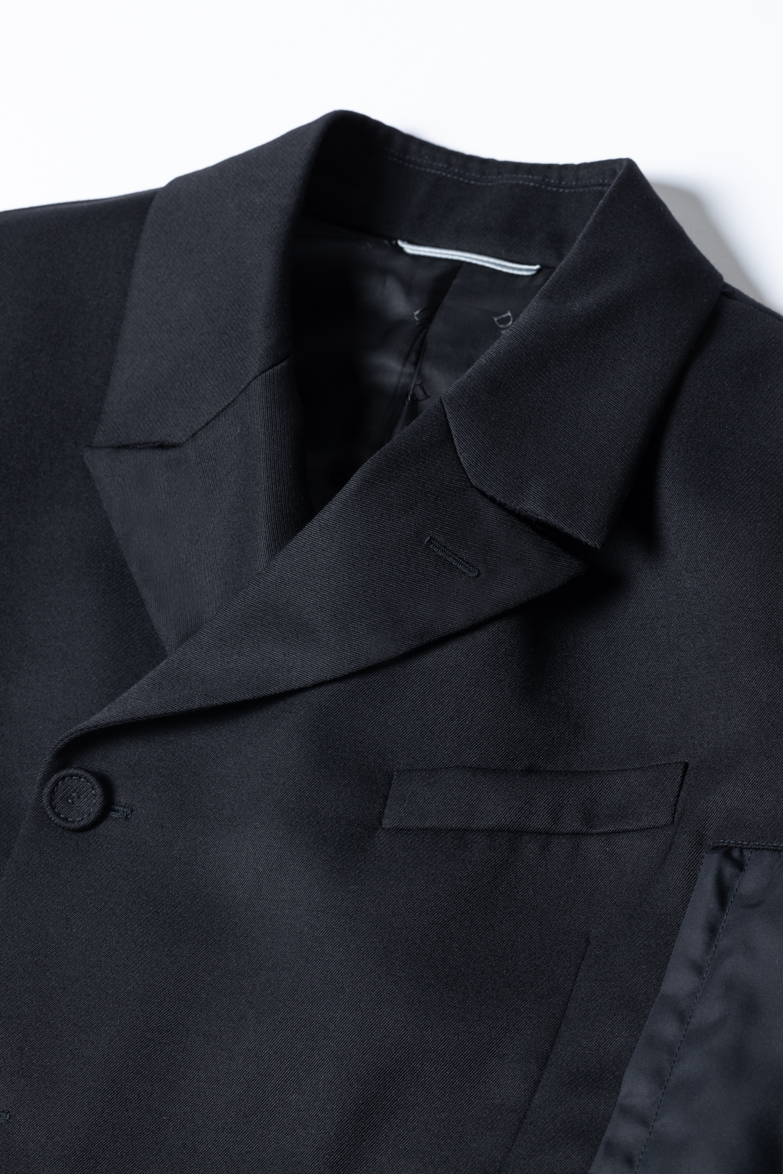 編集M:このドローコードも高級感があって、細部の作りや付属から「やっぱりディオールなんだな」と感じますね。バックスタイルはセンターベントだけど、レイヤード風のデザインでサイドベンツにも見えるのも面白い。