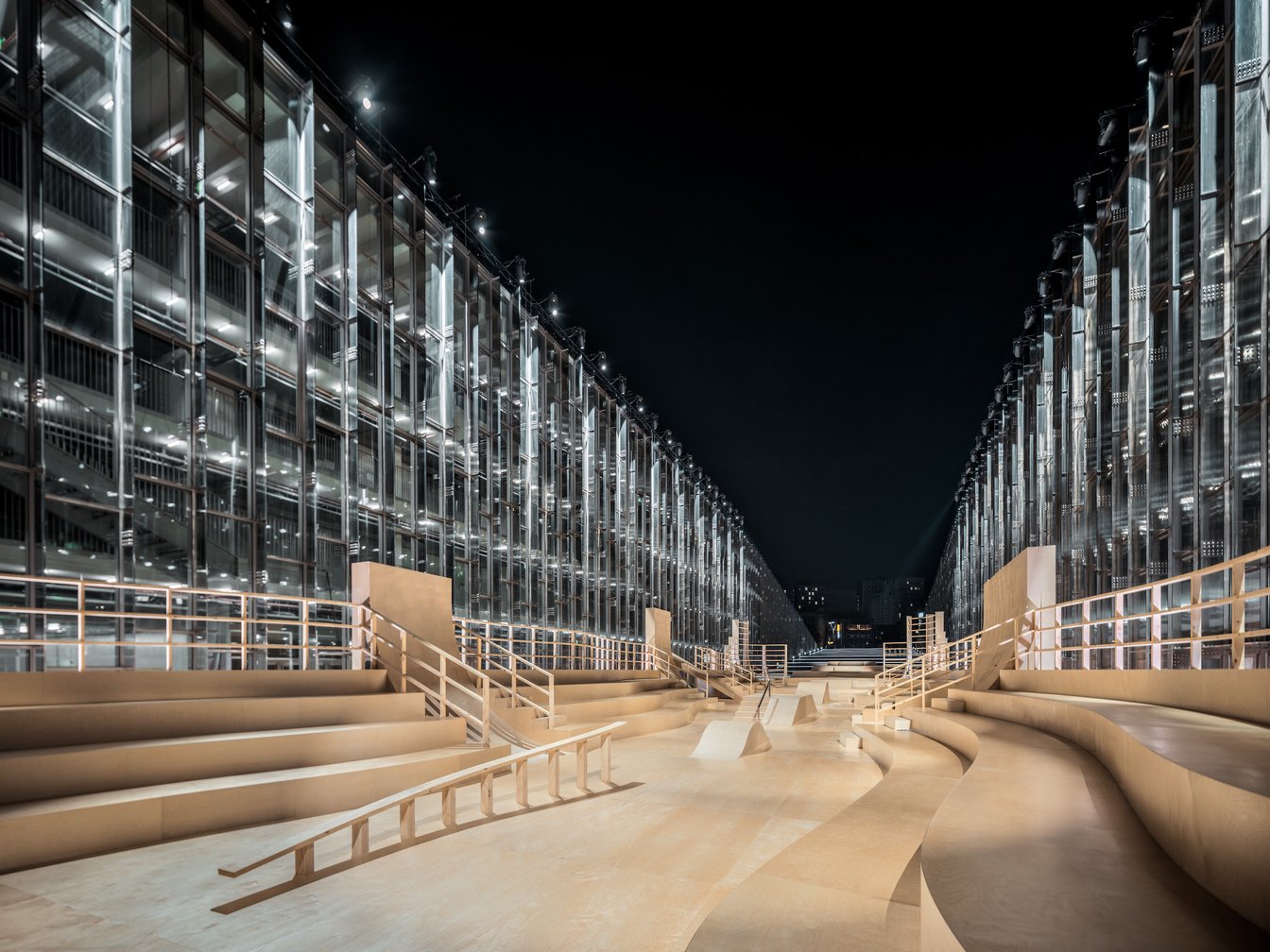 ディオールによる今回のイベントは、ソウルの創造性にスポットライトを当てるために立ち上がったという。梨花女子大学校の敷地内にランウェイを設置し、ショーのオープニングとして10人の女性スケートボーダーが登場。特製のユニフォームで軽やかな滑りを見せた。