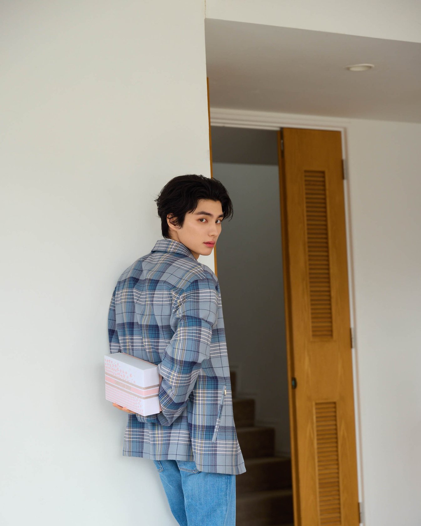 僕、“香りフェチ”でもあるんです。だから香りを贈りたいですね。今回撮影した「ミス ディオール ブルーミング ブーケ ミニ ミス」は、最初リップだと思っていたので、スティック フレグランスだと知って驚きました。ジャカード織の千鳥格子模様のクチュール ケースは、ピンク色も素敵で、持っていても気分が上がりますね。プレゼントしても喜ばれそうですし、自分へのご褒美にも最適だと思います。香りフェチですが、あんまり強く香るのは苦手で…。このミニミスは手首につけていても、ふとした瞬間に優しくふんわり香るのが良いなと感じました。