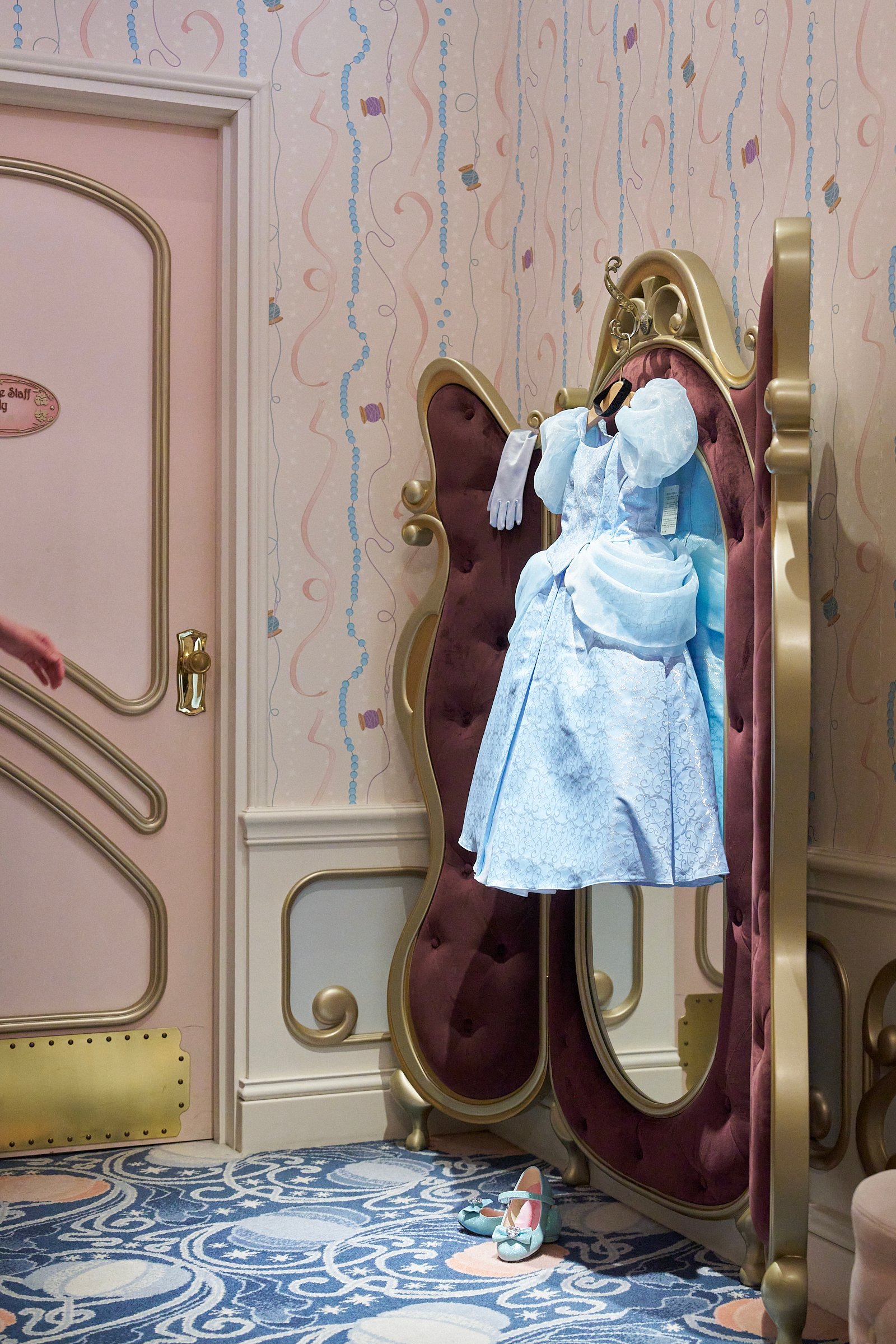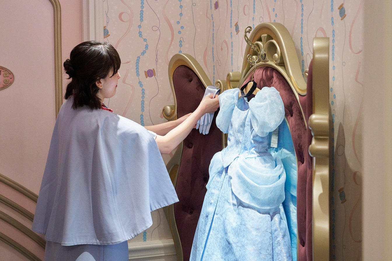 子どもたちは完成するまで鏡を見ずに過ごす。その時間もまた、特別な体験の一部だ。ヘアセットやメイク、ドレスの準備が進む間、ゲストはこれから始まる物語の主人公として扱われる。仕上げに鏡の前に立った瞬間、初めてプリンセスになった自分と対面する。その演出には、驚きと感動をより大きくするための工夫が込められている。