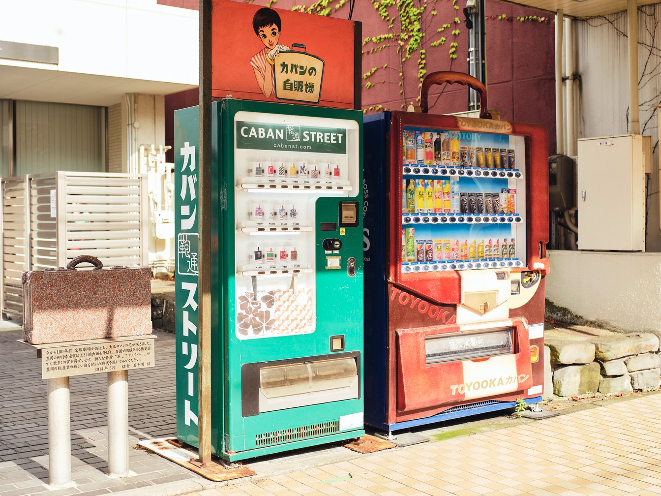 豊岡市内には「かばんの自動販売機」など、様々なものが鞄の形に模られている。