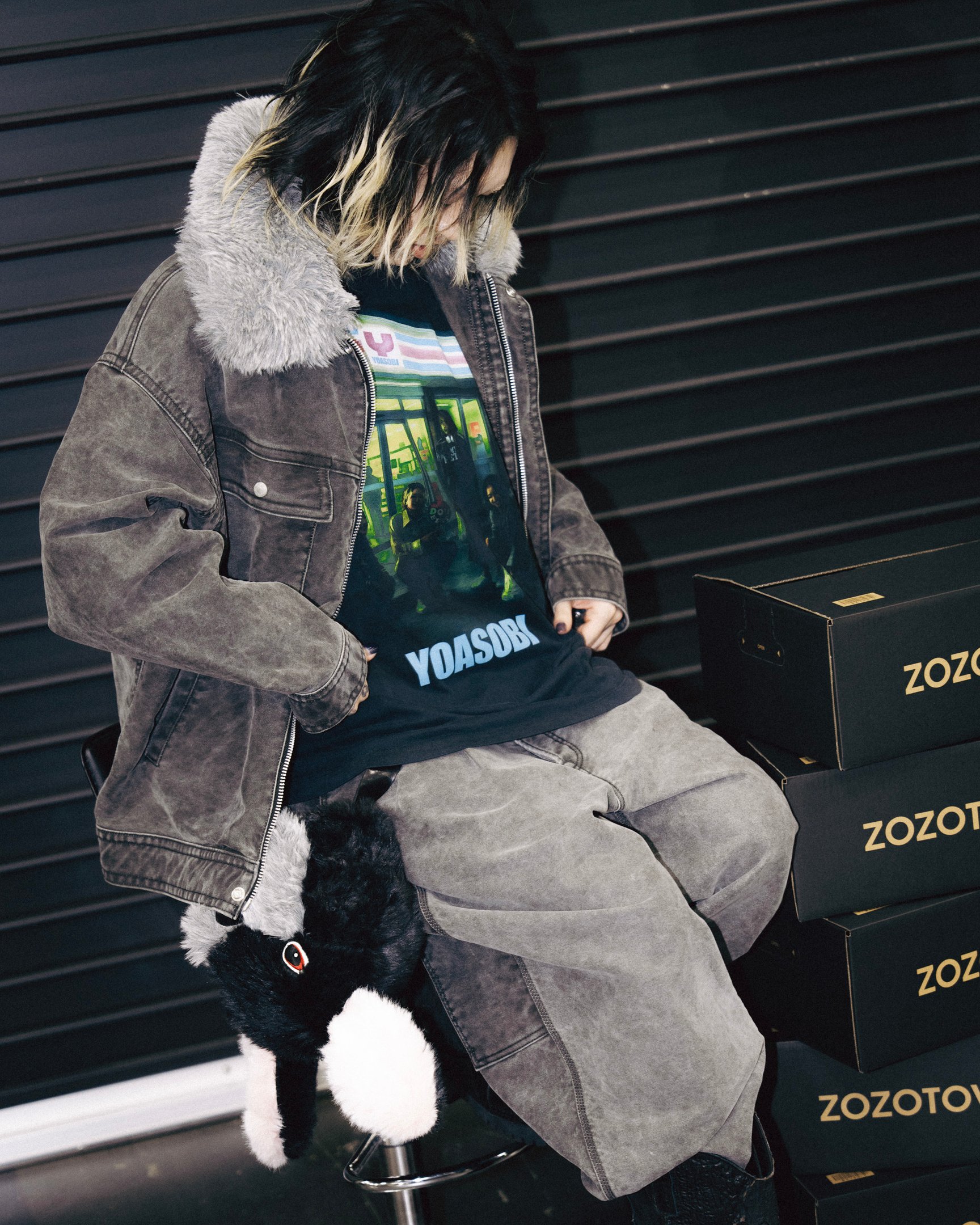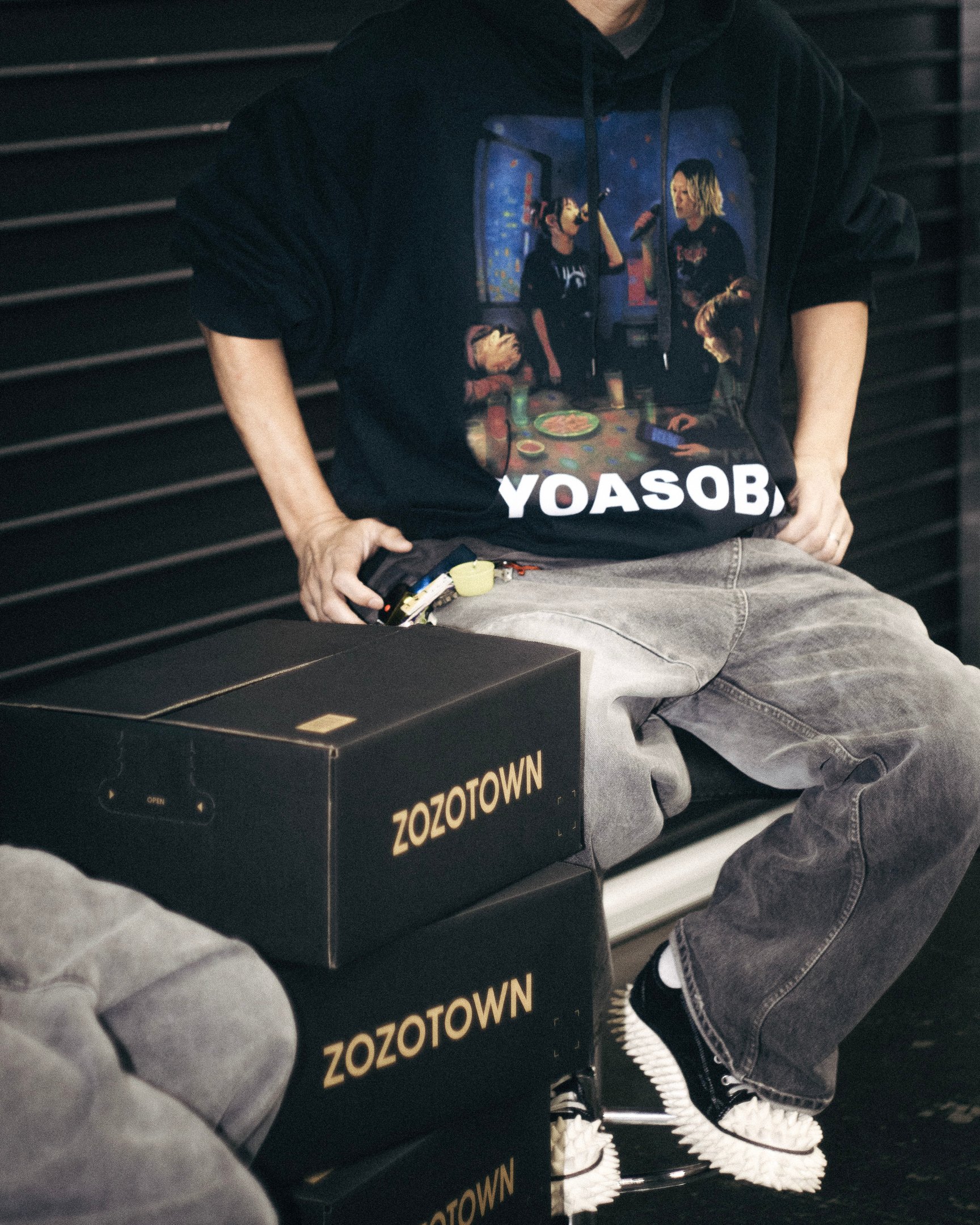 10月13日に開催されたZOZOTOWN20周年記念イベント「ZOZOFES」を機に販売されたコラボコレクション「NIGHT OUT WITH YOASOBI / YOASOBIと夜遊び」。YOASOBIのコンポーザーであるAyaseと気鋭デザイナー井野という、互いのクリエイションを深く敬愛する二人は、いかにしてそれぞれの表現世界を融合させたのか。創造の現場で交わされた対話を通して、補完し合うファッションと音楽の関係性に迫る。