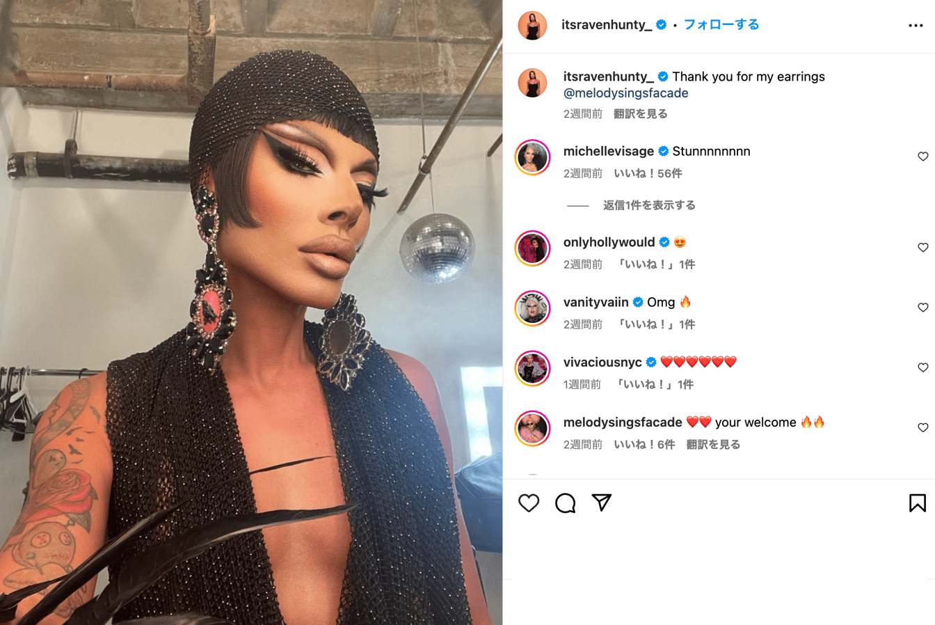 一般的に「ドラァグクイーン」と聞けば、派手なヘアメイクと、グラマラスドレスを思い浮かべるだろう。装飾過剰は装いについてヴェラ氏は「女性になりたいわけではないという前提がある」と付け加えた上で「ドラァグクイーンはパフォーマンスアーティストで、職業の一種」と説明する。