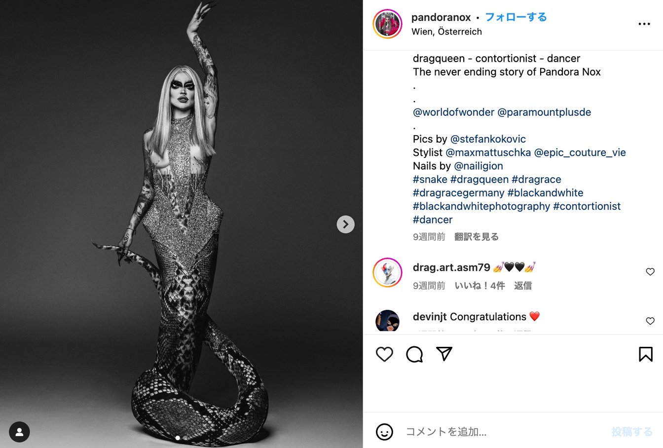 「ルポールのドラッグ レース」に基づいたドイツの「ドラッグ レース ジャーマニー」では、女性のドラァグクイーンである パンドラ・ノックス氏が優勝した。