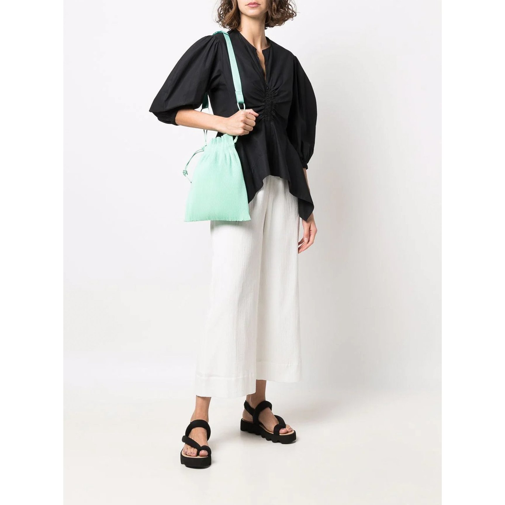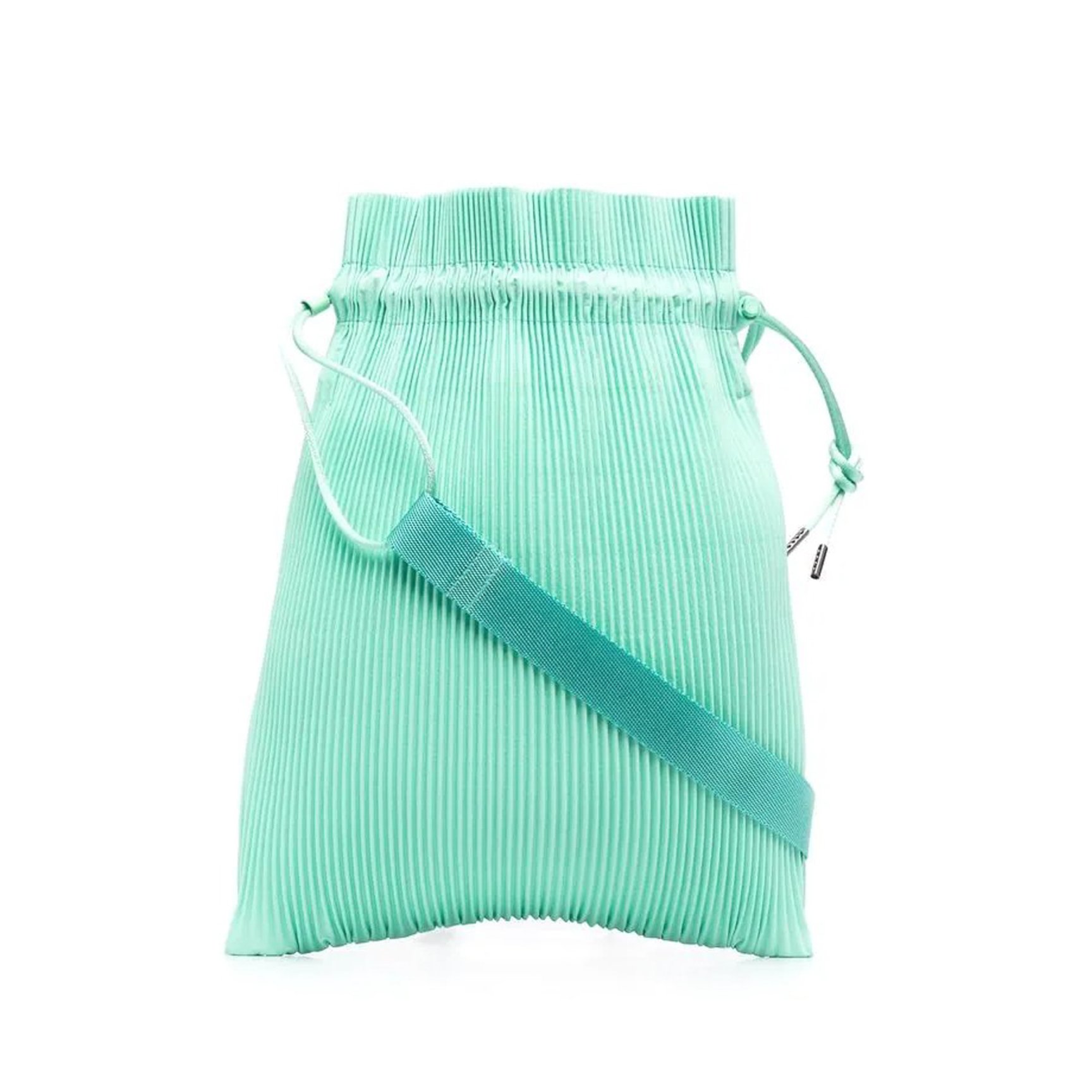 「プリーツ プリーズ イッセイ ミヤケ(PLEATS PLEASE ISSEY MIYAKE)」の代名詞となっているプリーツ生地を使ったバッグ。ナイロンのショルダーストラップやミントグリーンのカラーも相まり、スポーティな印象です。