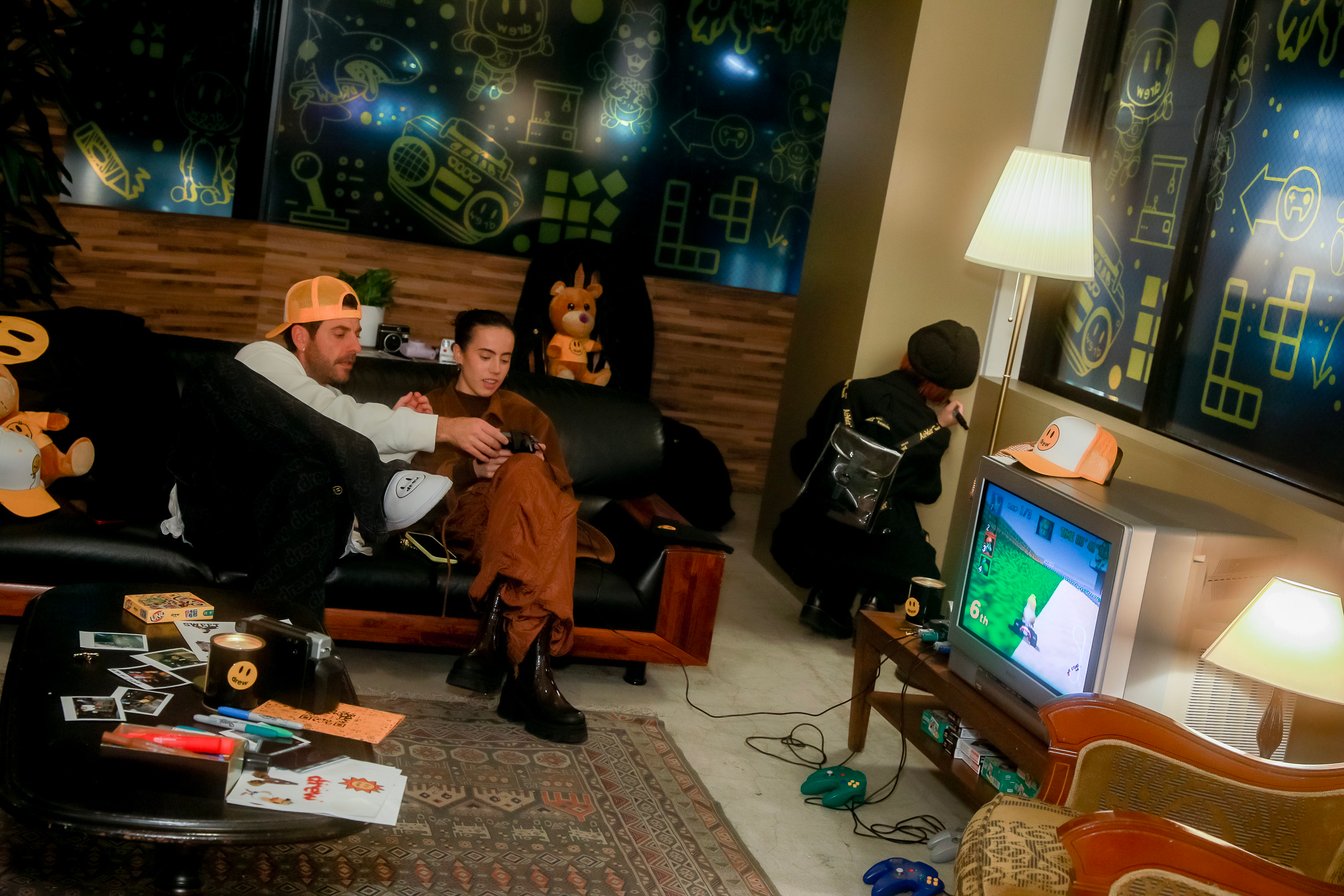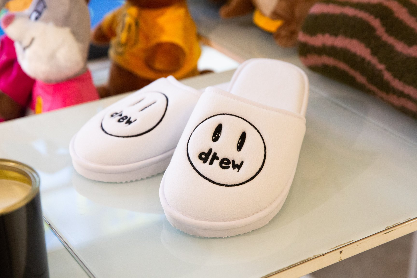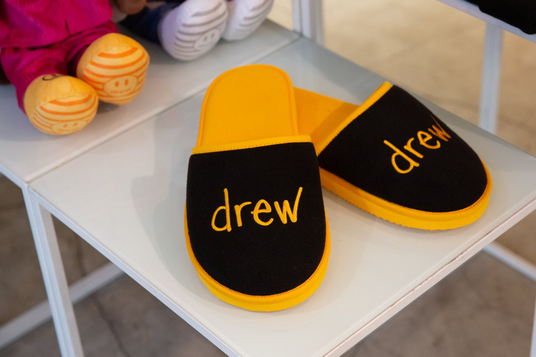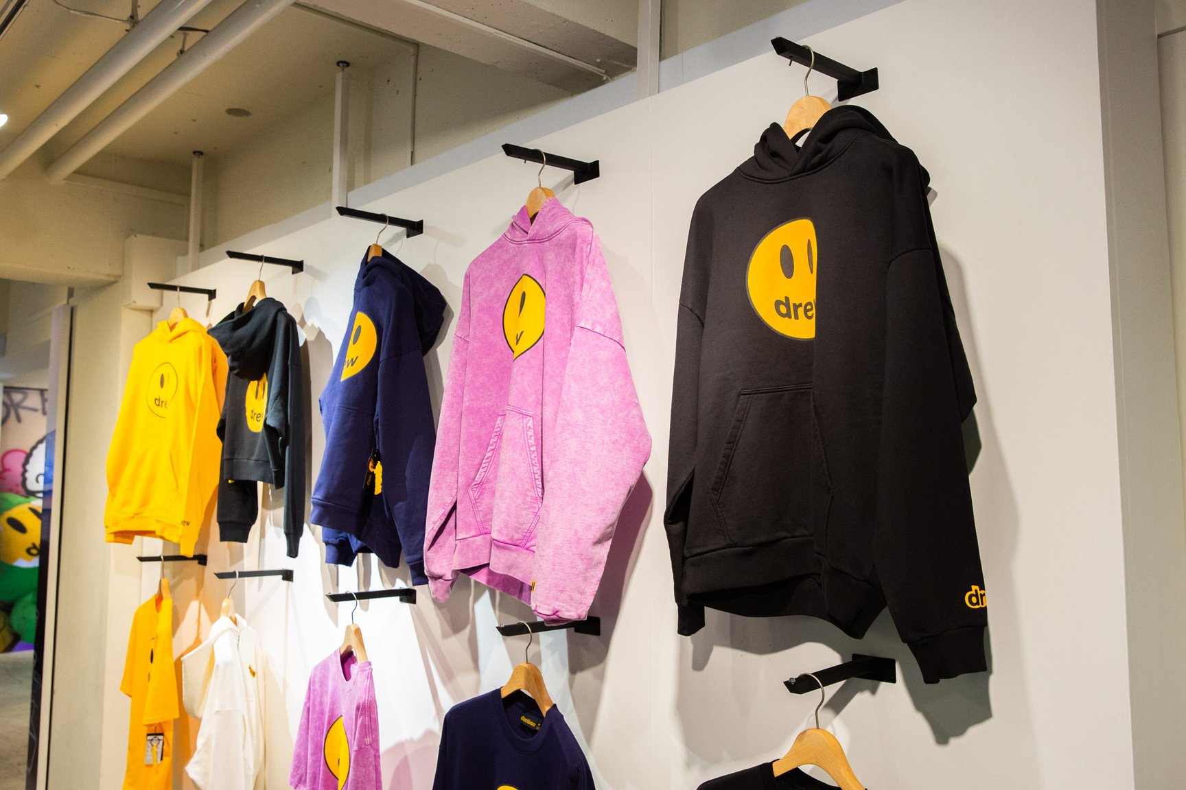 ポップアップ会場の2階はドリューハウスのリビングルームを再現しました。ドリューハウスでは、喜びと愛と平和を大事にしていて、誰もが自分らしくいれて、愛され、励まされ、大切にされる場所を目指しています。ウェアでも同じように“誰もがハッピーになれるもの”に重きをおいてモノ作りをしています。