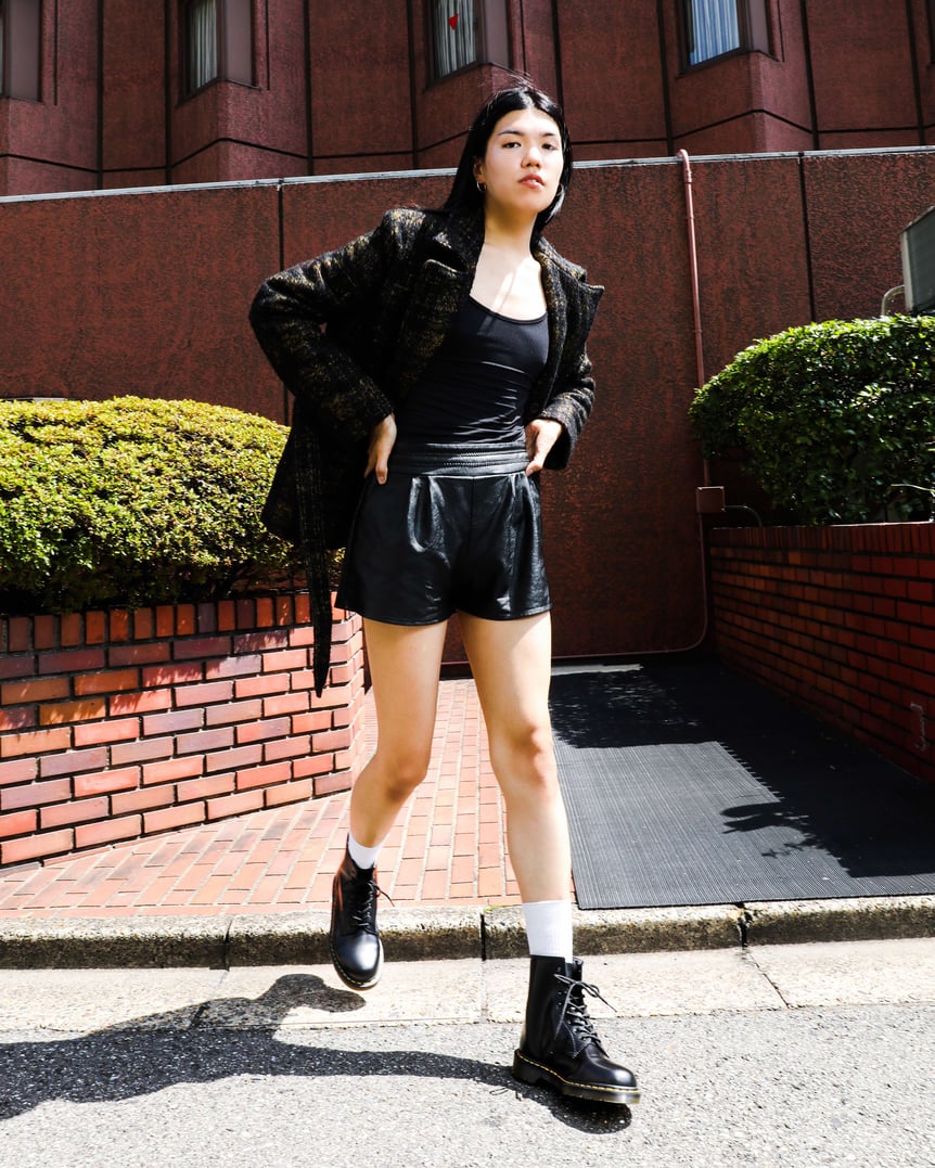 KEISHANは、ファッション誌やニューヨークコレクションでも活躍する注目のトランスジェンダーモデル。この日はショートパンツとハイソックスを合わせ、レッグラインをヘルシーに。足元は、ドクターマーチンの永遠のアイコンである「1460」8ホールブーツで引き締めた。ドレスアップのハズしアイテムとしても使えるレースアップブーツで、秋冬シーズンに欠かせないアイテム。世界中のミュージシャンやアーティストを魅了してきたアイコニックな逸品を、個性豊かに履きこなしたい。