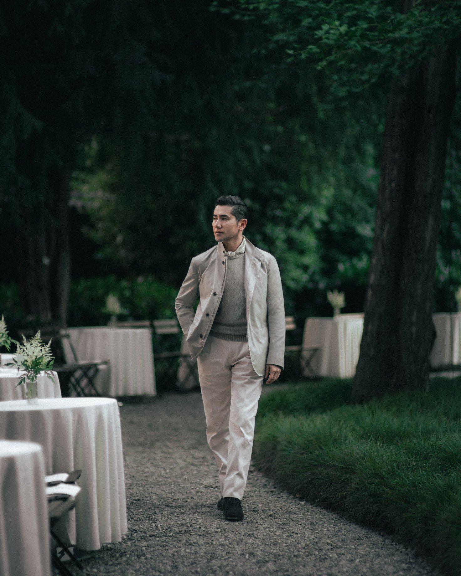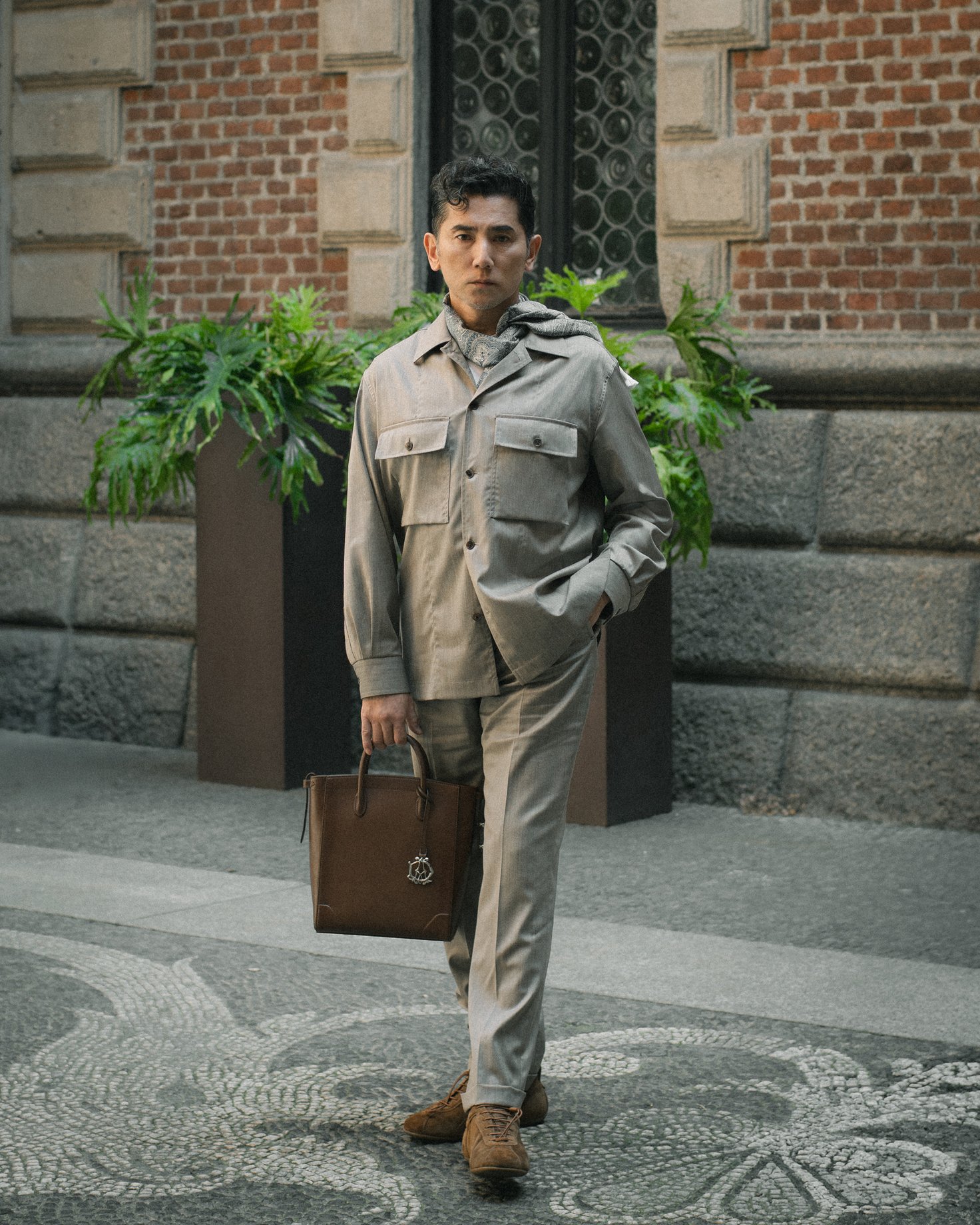 ショーでは、整ったモデルが着こなしのお手本を示すわけですけど、骨格も肌の色も違ったりするので、なかなか難しいところはありますよね。でも、男性は、つまるところ体型云々ではなく、自分自身の「味わい」で着こなせないといけないような気がするんです。気構えとして、最後の仕上げは自分の「味」なのかなと。