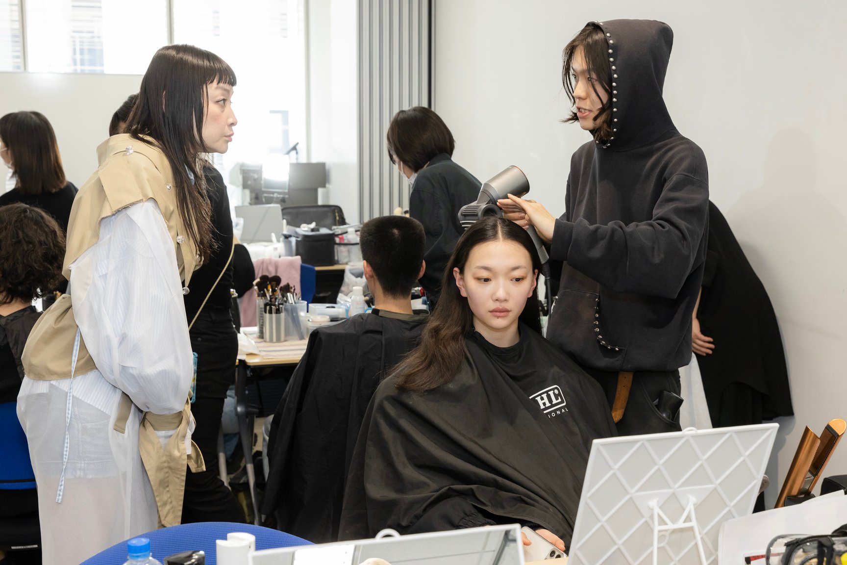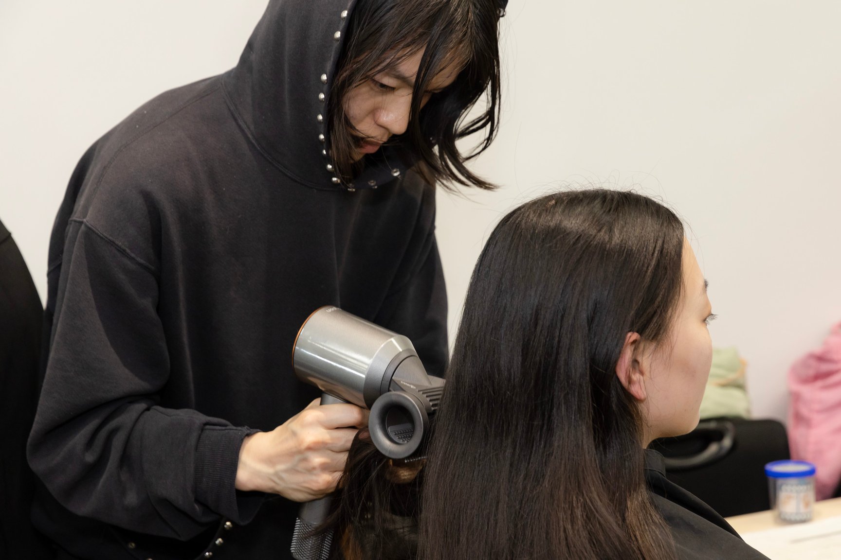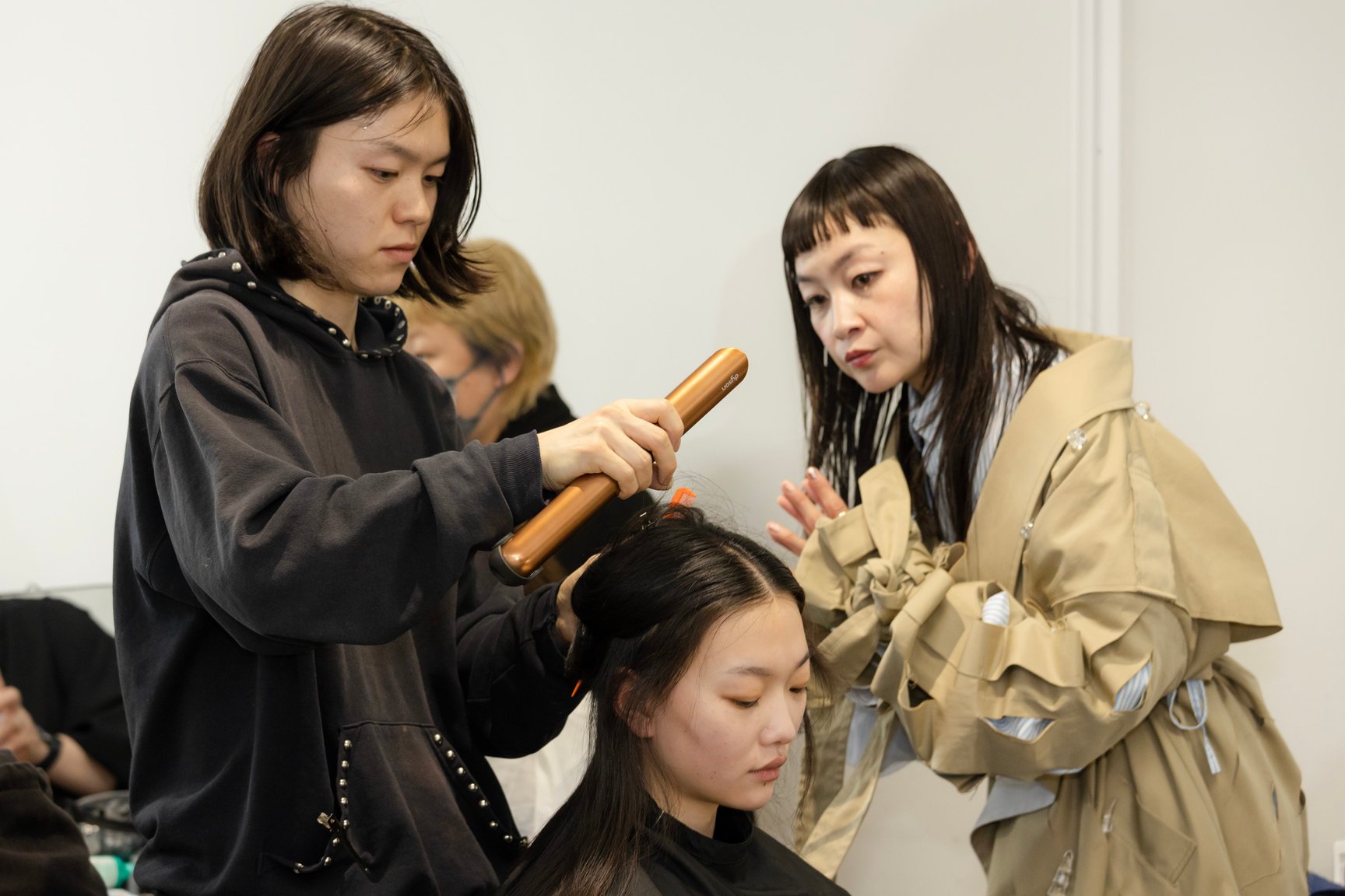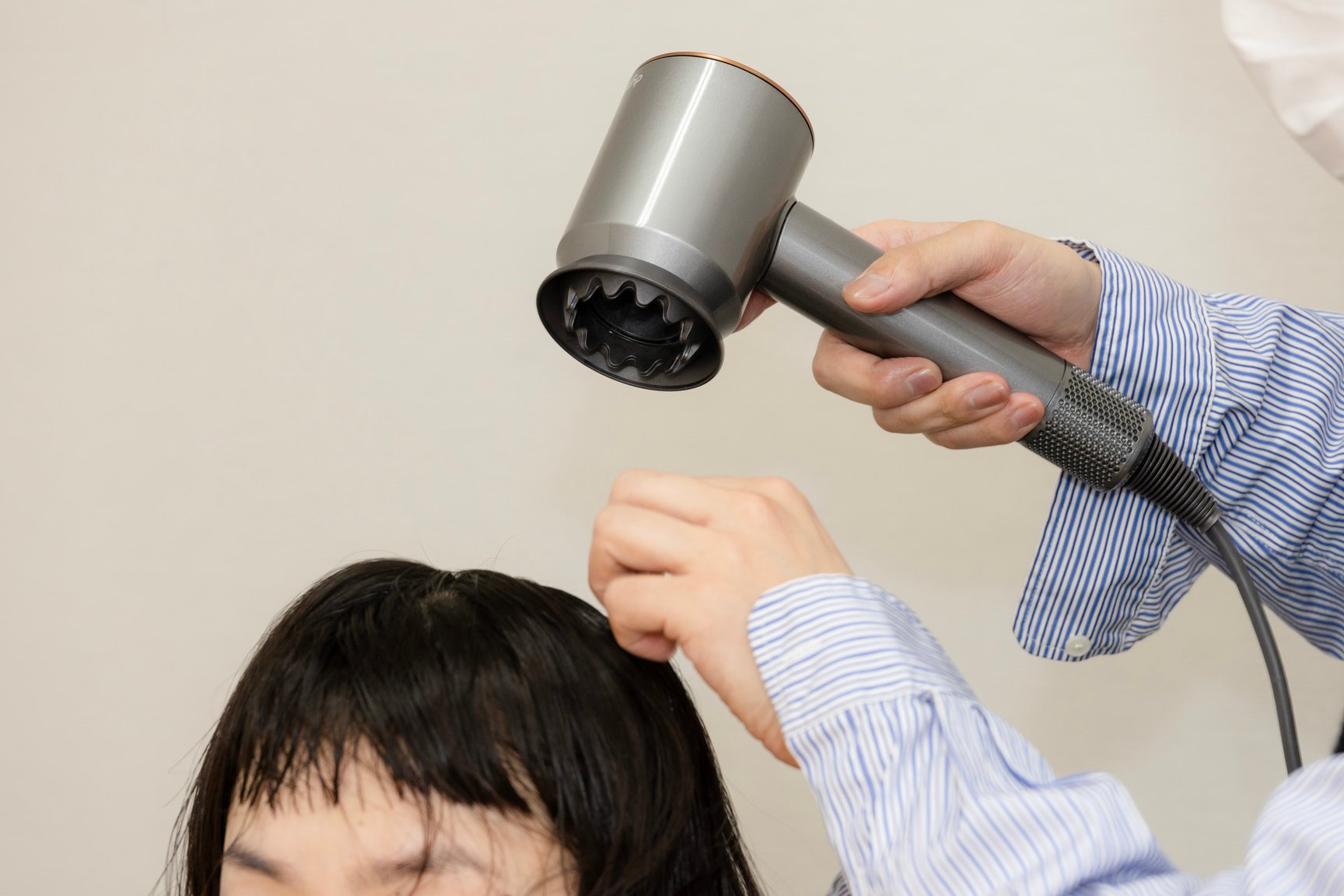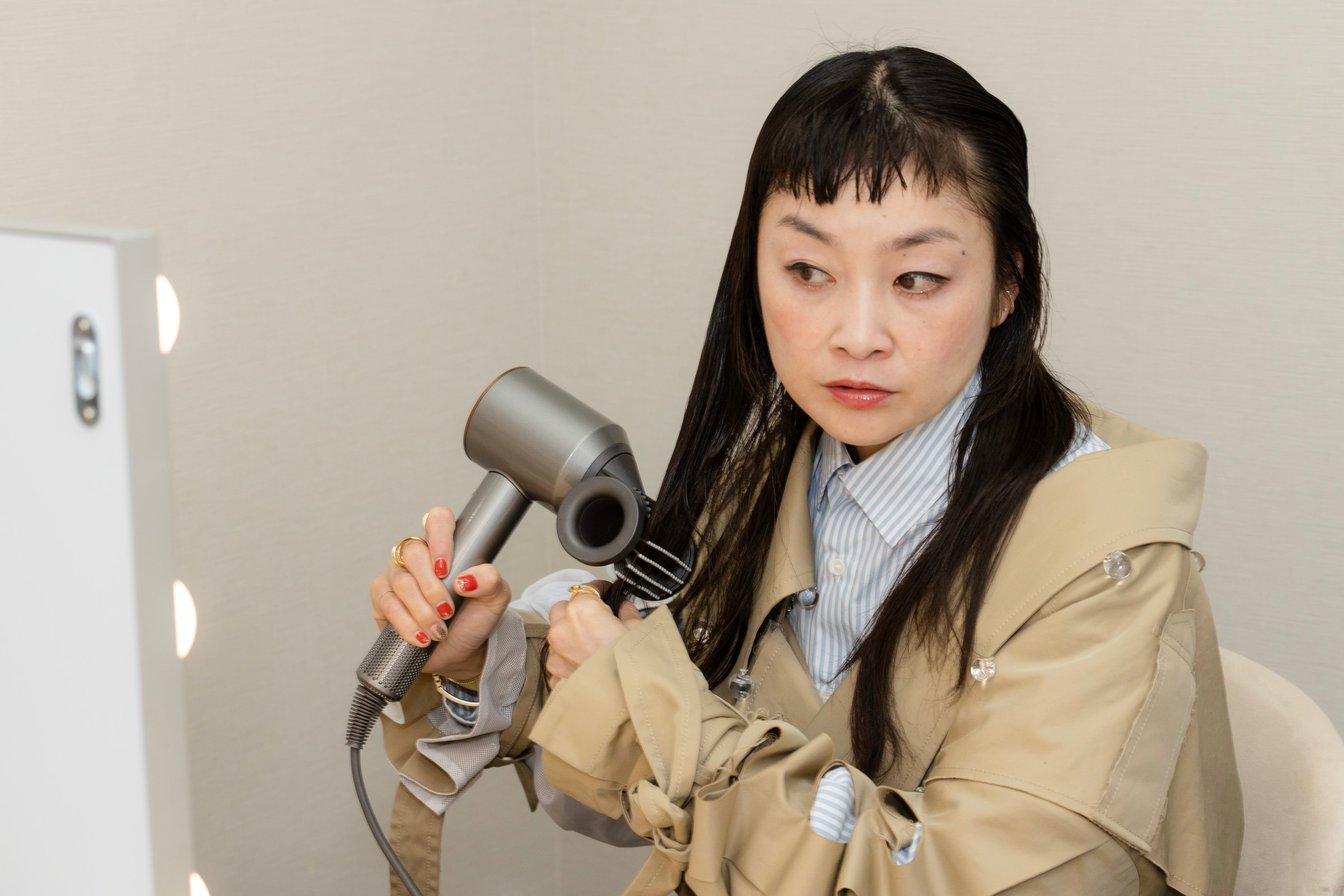 hayate:Dyson Supersonic Shine ヘアドライヤーは、速乾でありながら、やわらかいブローができるのがいいですね。アタッチメントを使うと、自然な仕上がりがつくりやすく、慌ただしいバックステージではとても便利でした。