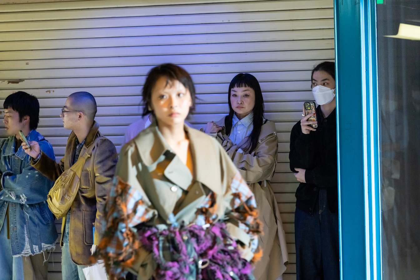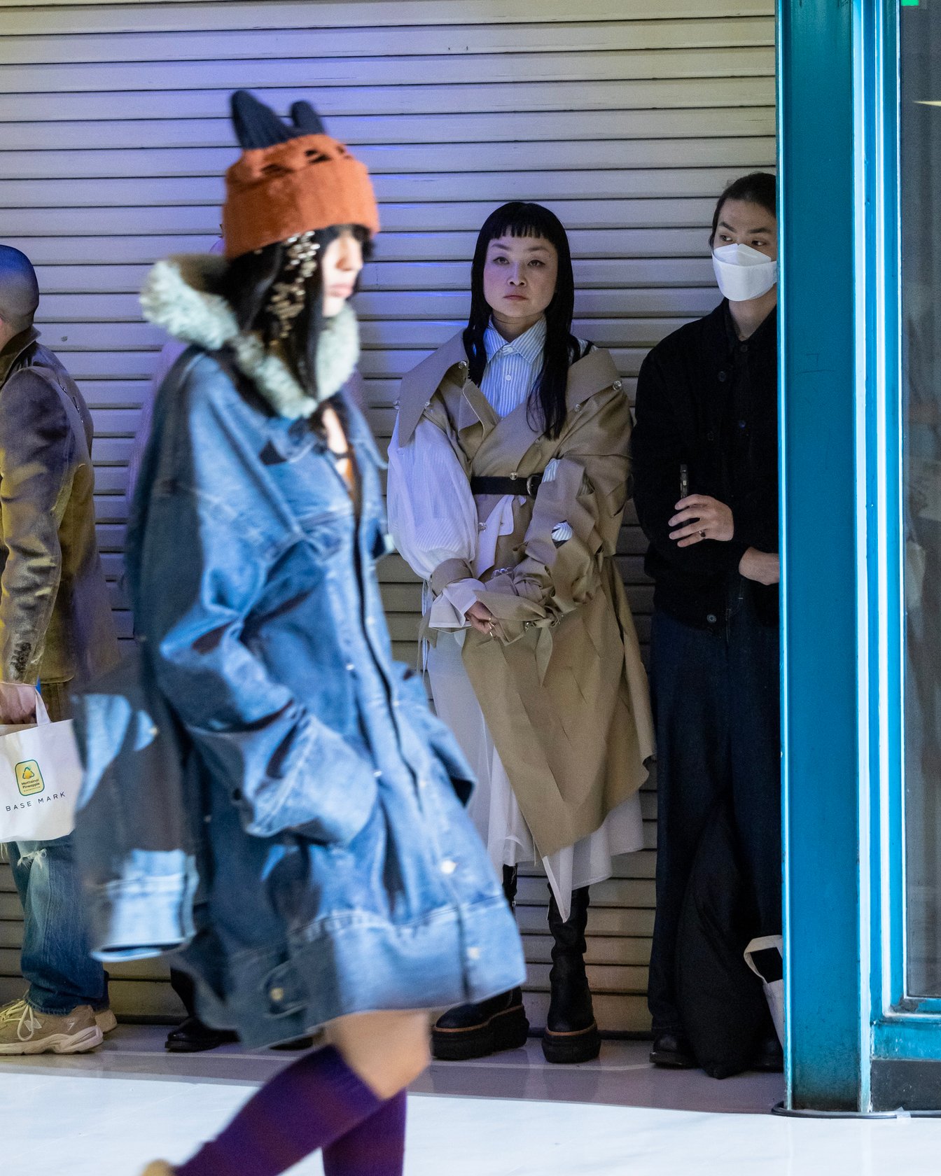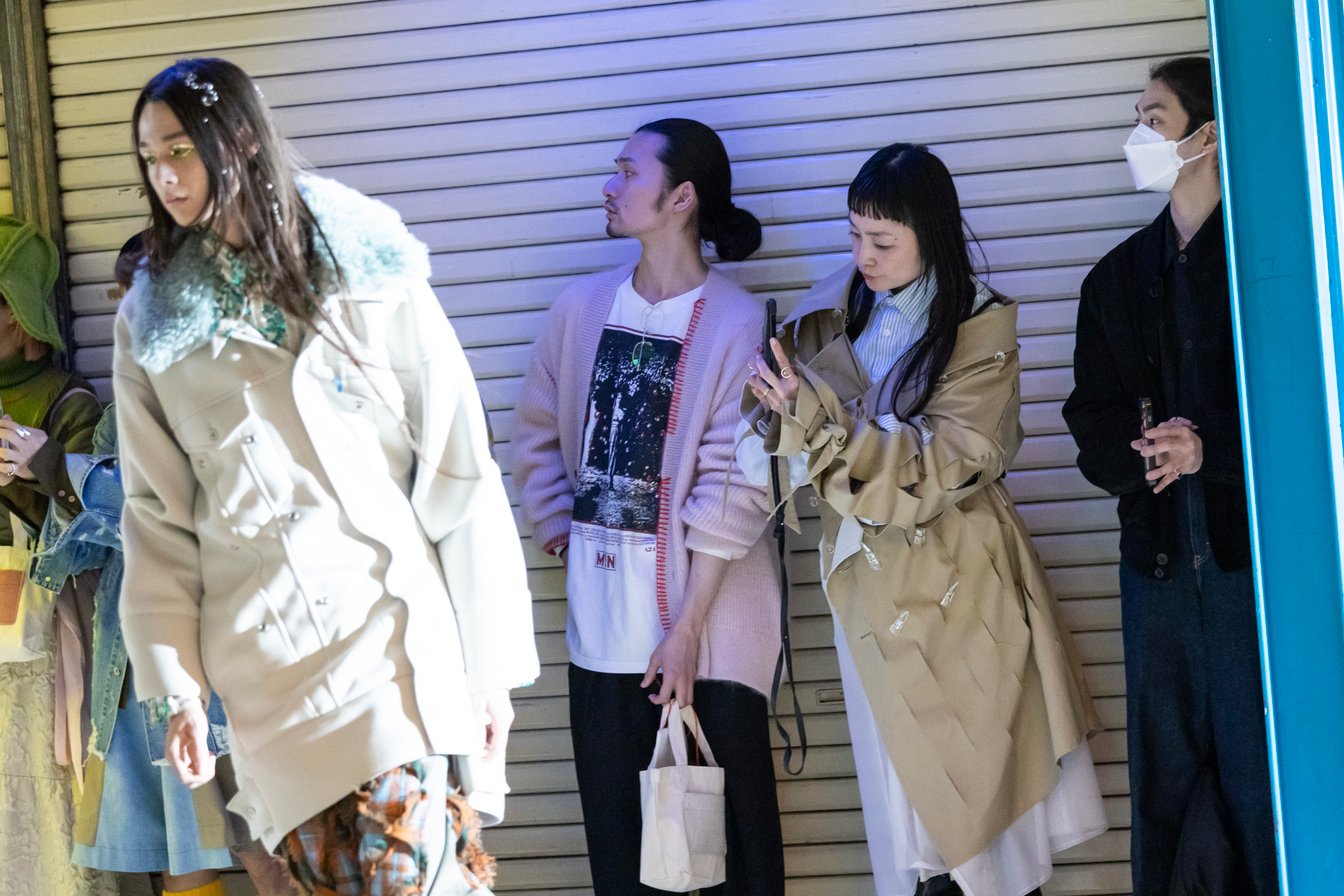 いよいよBASE MARKのランウェイショーがスタートしました。FW23コレクションのテーマは「Heads/Tails」。表と裏という意味を持ち、昔と今、日本と西洋など、一見すると交わらない相反する2つが融合し表現されることで、さまざまなカルチャーが想起され、ファッションを通して新しい世界が提案されました。ショー会場は、ニュー新橋ビル。昭和にタイムトリップしたような、レトロな雰囲気が漂うフロアで、最新コレクションがお披露目されました。