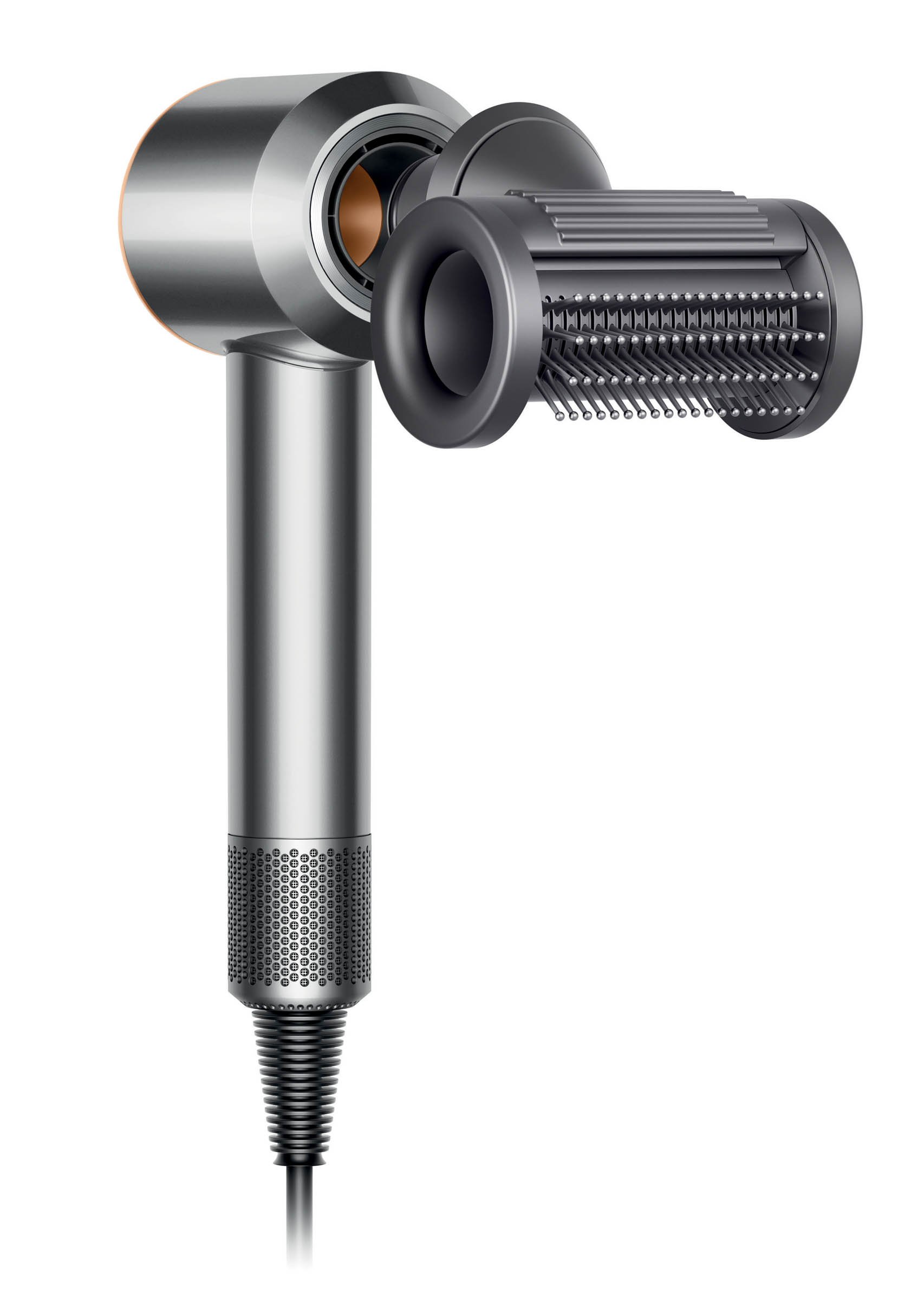 これまでの、低温のやさしい風ですばやく乾かす「低温ツール」と、なめらかで均一の風速で髪を揃えながら乾かしシルクのような指ざわりに仕上げる「なめらかツール」に、新たに「ツヤ出しツール」が加わり、ダイソンのエンジニアによるテクノロジーが最大限に詰まった最新モデル。ツヤ出しツールは“なめらかブラシモード”と“浮き毛抑制モード”の2つのモードで浮き毛やうねりの少ない髪へ導く。コールドショット含む 4つの風温設定、3つの風速設定が可能に。マグネット式のアタッチメントが3つ備わっている。ニッケル/コッパー、アイアン/フューシャ、ダークブルー/コッパー。価格は税込4万8800円 ※編集部調べ。