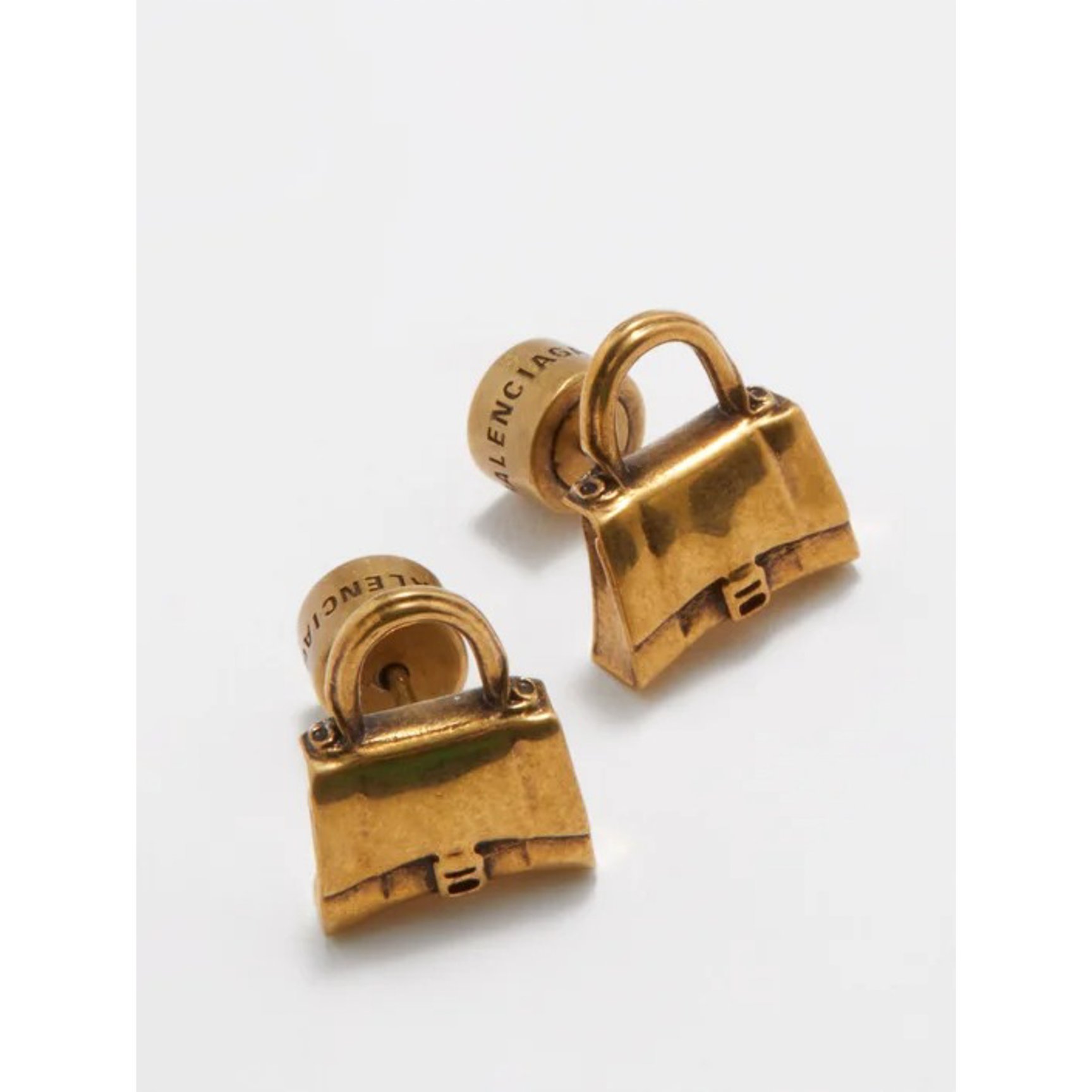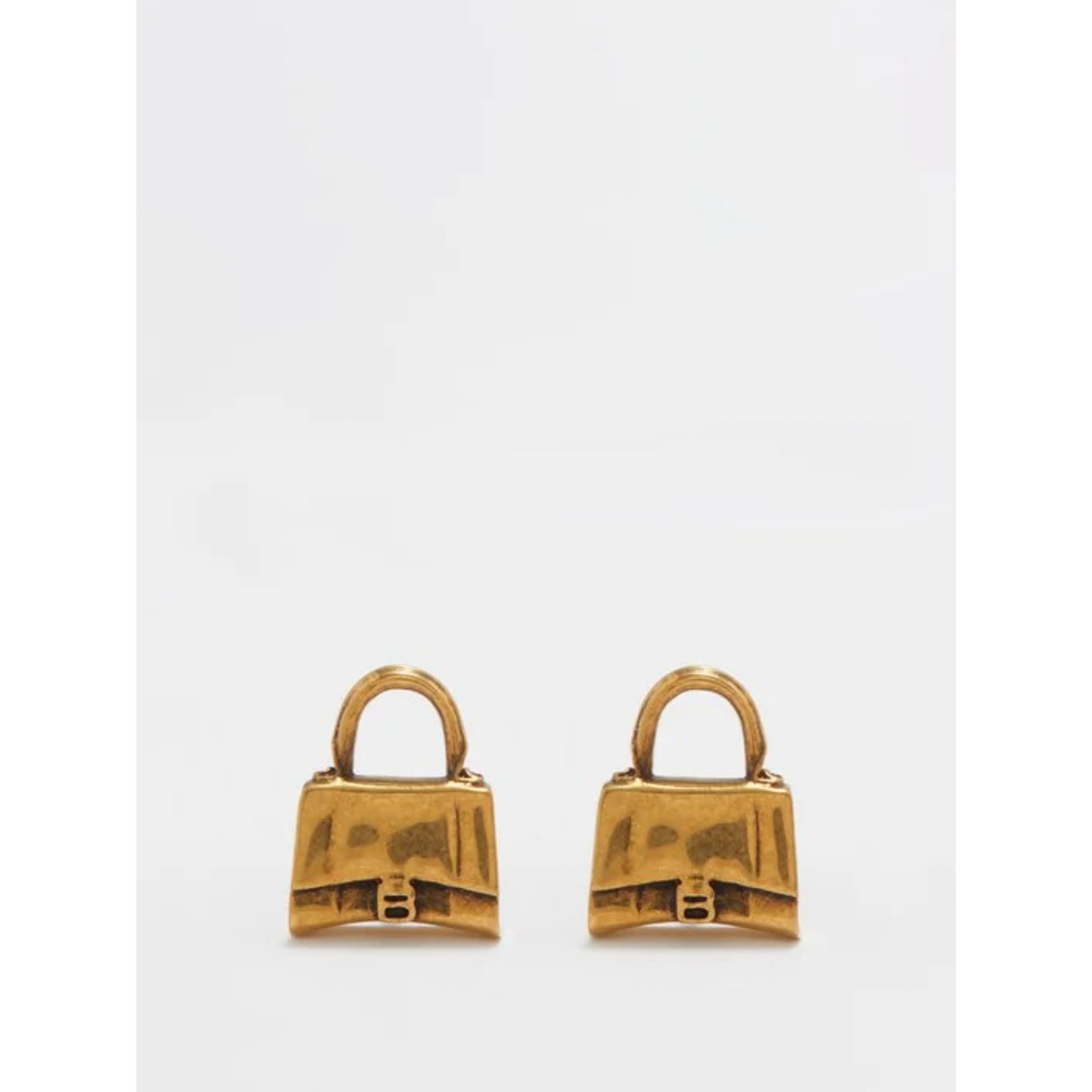 「バレンシアガ(BALENCIAGA)」のアイコンであるハンドバッグ「アワーグラス」をモデルに“B”ミニチャームをあしらったピアスです。遊び心のあるデザインや、アンティークライクなゴールドトーンが耳元を小粋に仕立ててくれます。