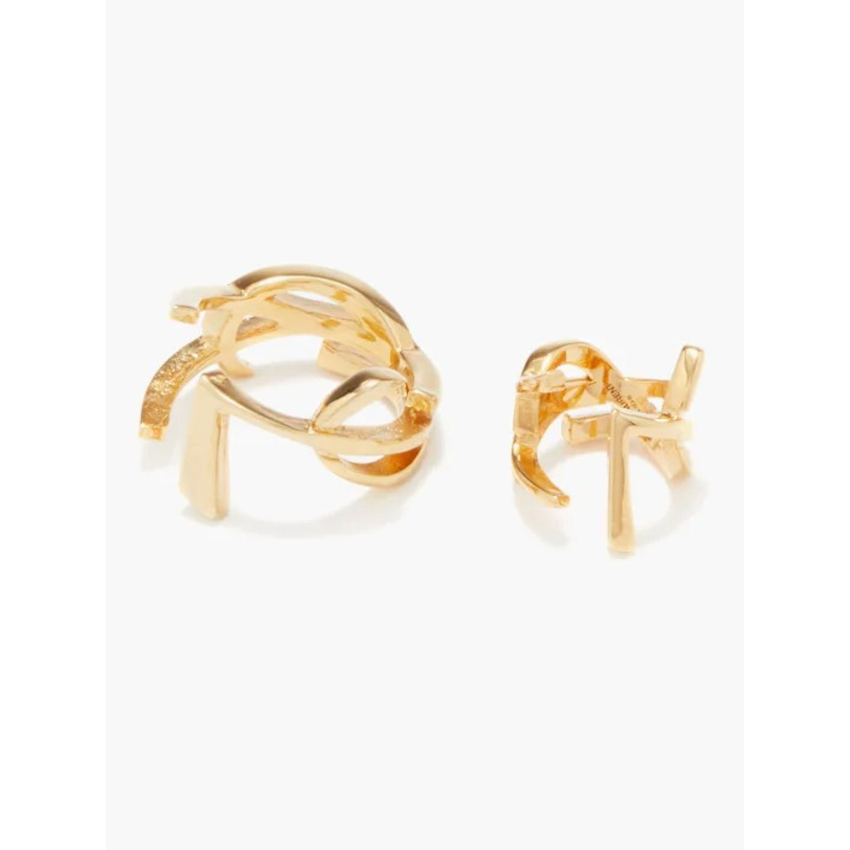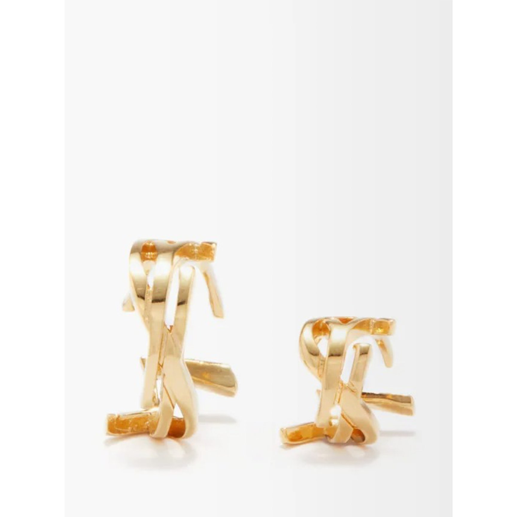 ユニークなフォルムのイヤーカフは、「サンローラン(SAINT LAURENT)」の「YSL」モノグラムを象ったもの。サイズ違いの2個セットなので、そのまま2個付けするのはもちろん、気分やスタイルに合わせて1つだけつけても洒落感のある耳元を叶えてくれます。