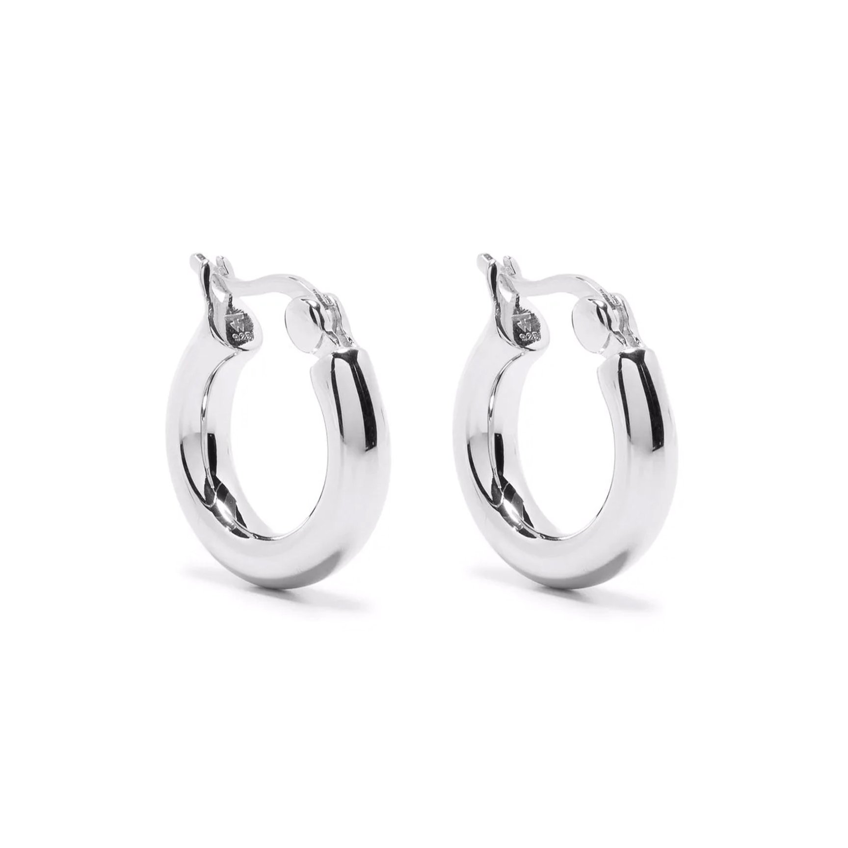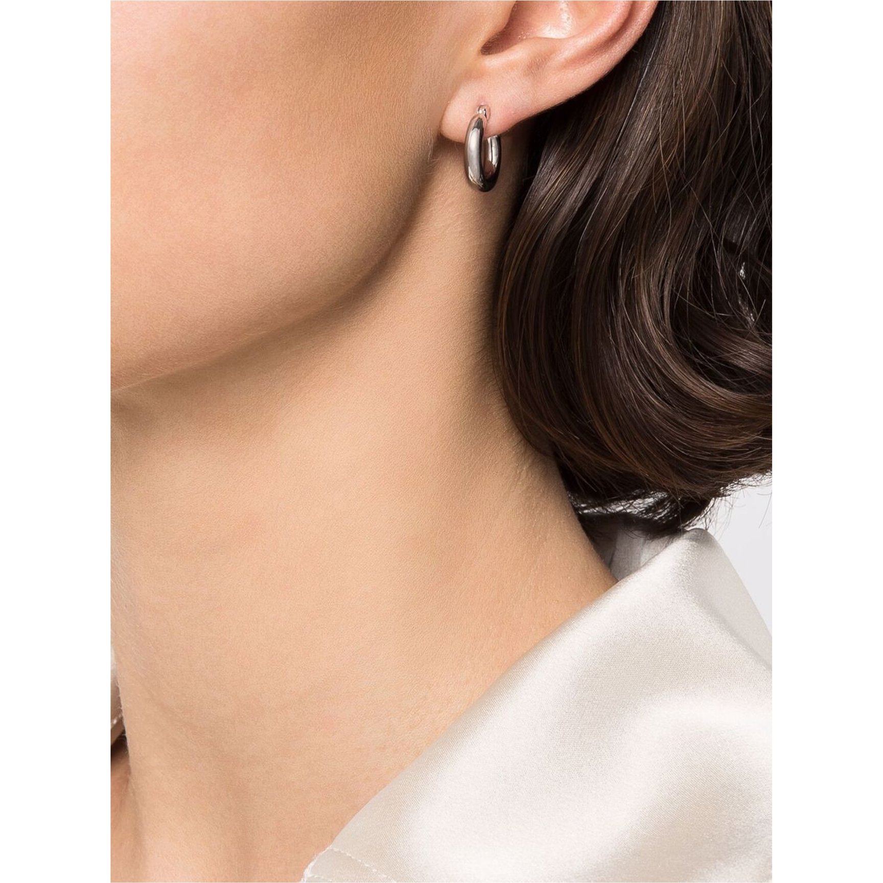 「ボッテガ・ヴェネタ(BOTTEGA VENETA)」のフープピアス。シンプルながら、ダメージ加工されたシルバーの風合いや、太めのフープが装いにウエイトをもたらしてくれます。