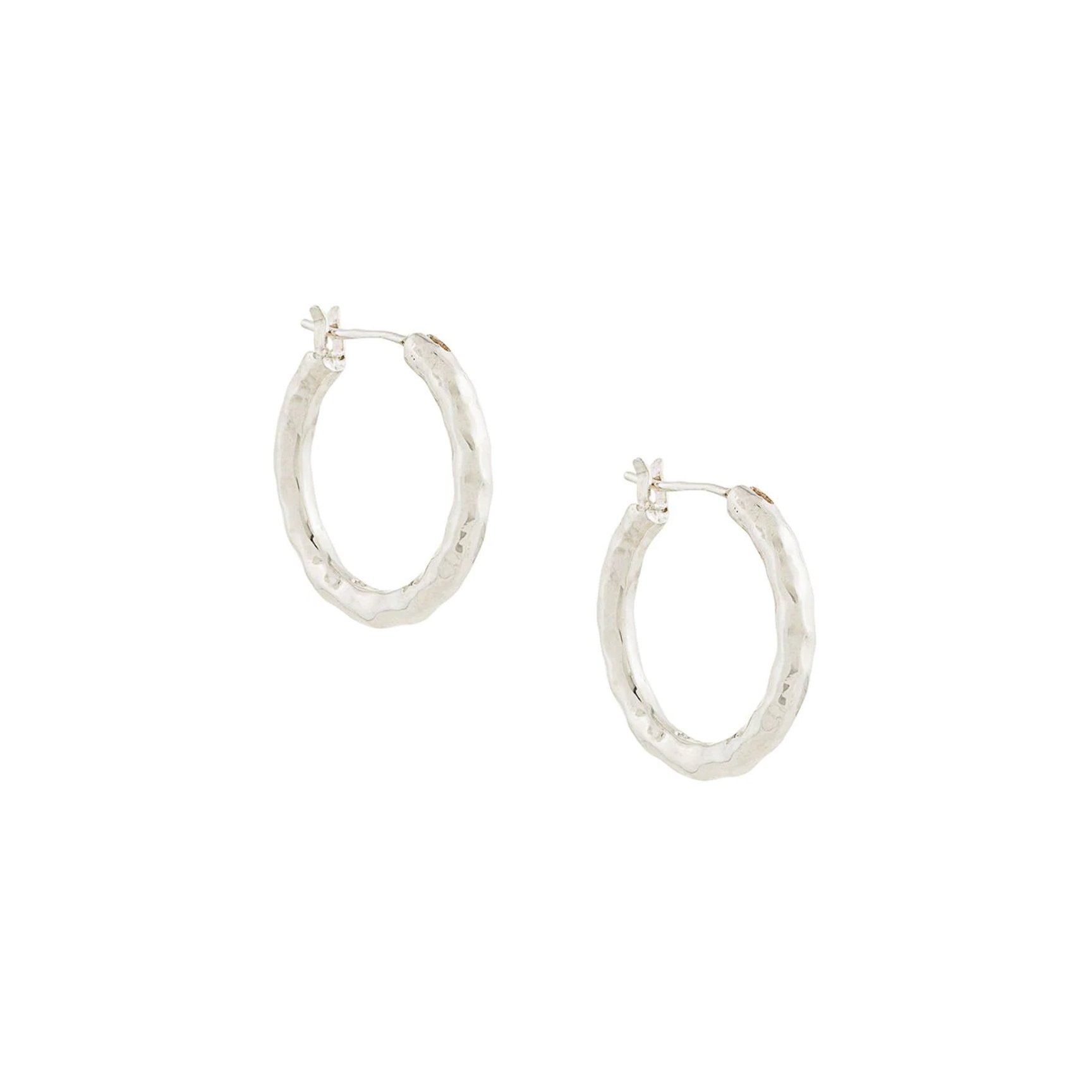 叩き加工が施されているので、シルバーの表情に抑揚があるのが特徴的な「イーエム(e.m.)」のフープピアス。適度なシンプルさは、幅広いスタイリングのお供にしたくなります。
