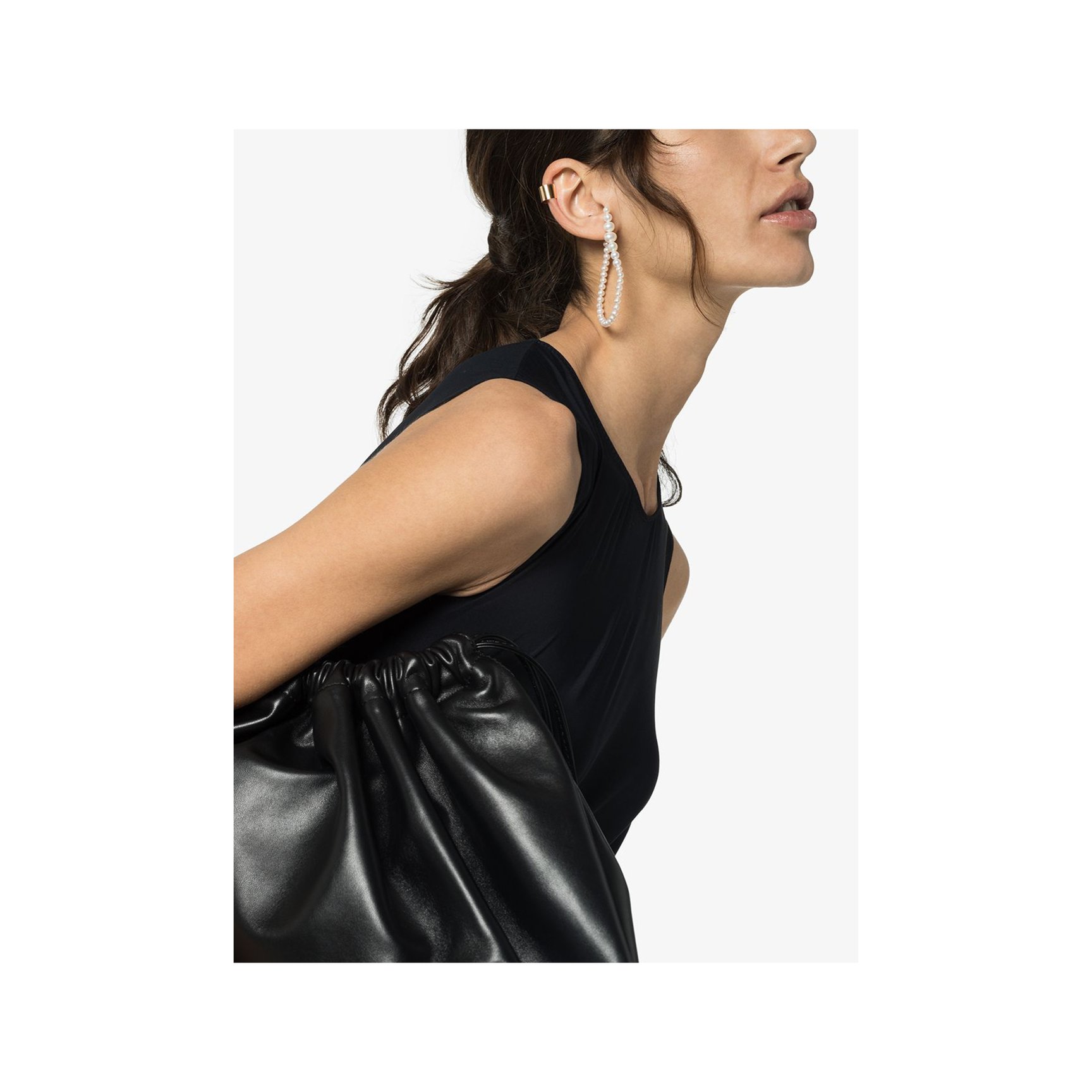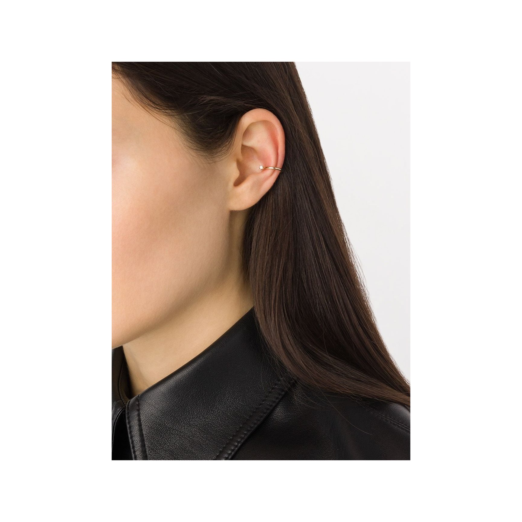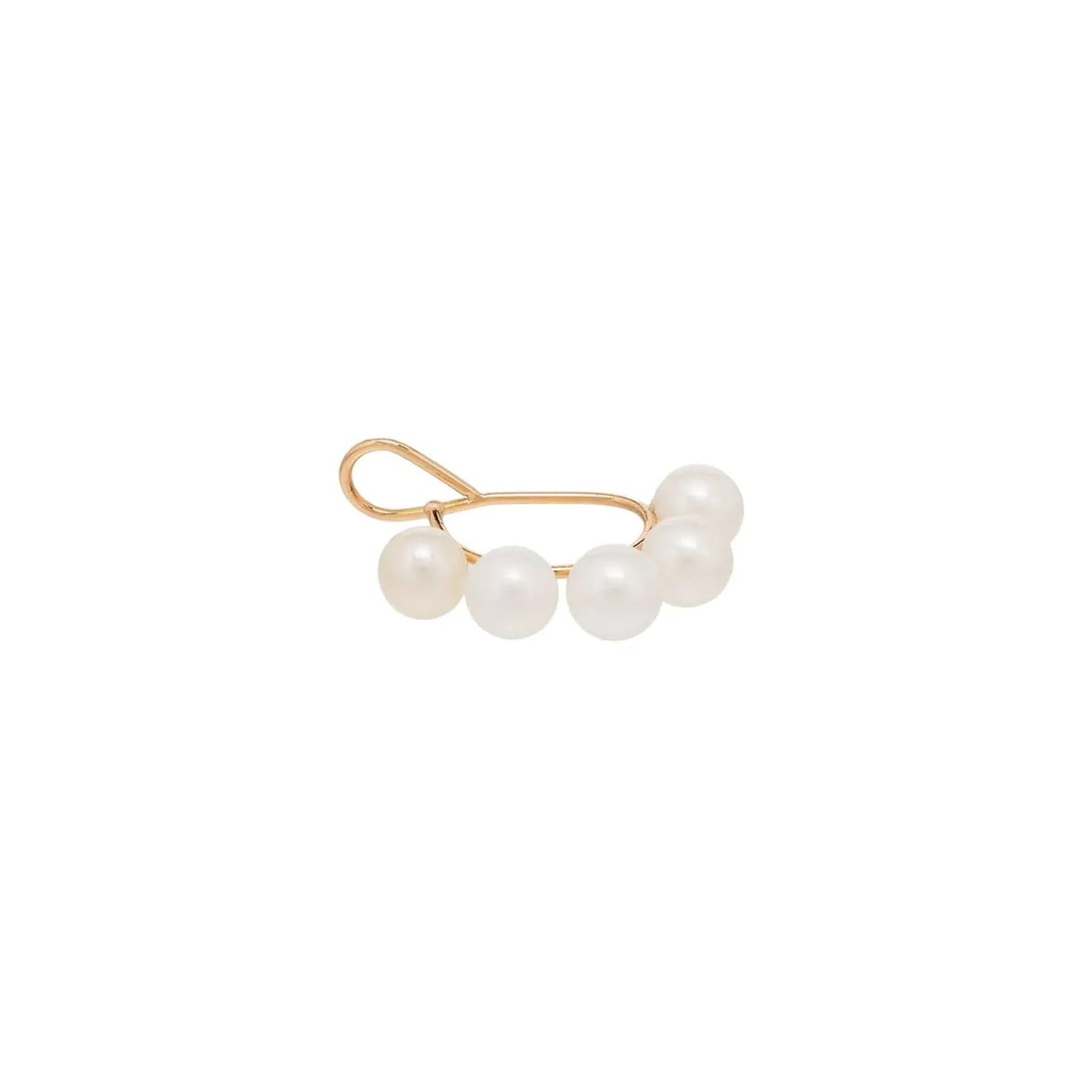 線状の細身のゴールドのフープに、一列にパールが並んだ「サスキア・ディーツ」のイヤーカフ。まるで耳元に真珠だけが浮いているように見えます。ちょうどいい大きさの5粒のパールで、耳元にも遊び心を。