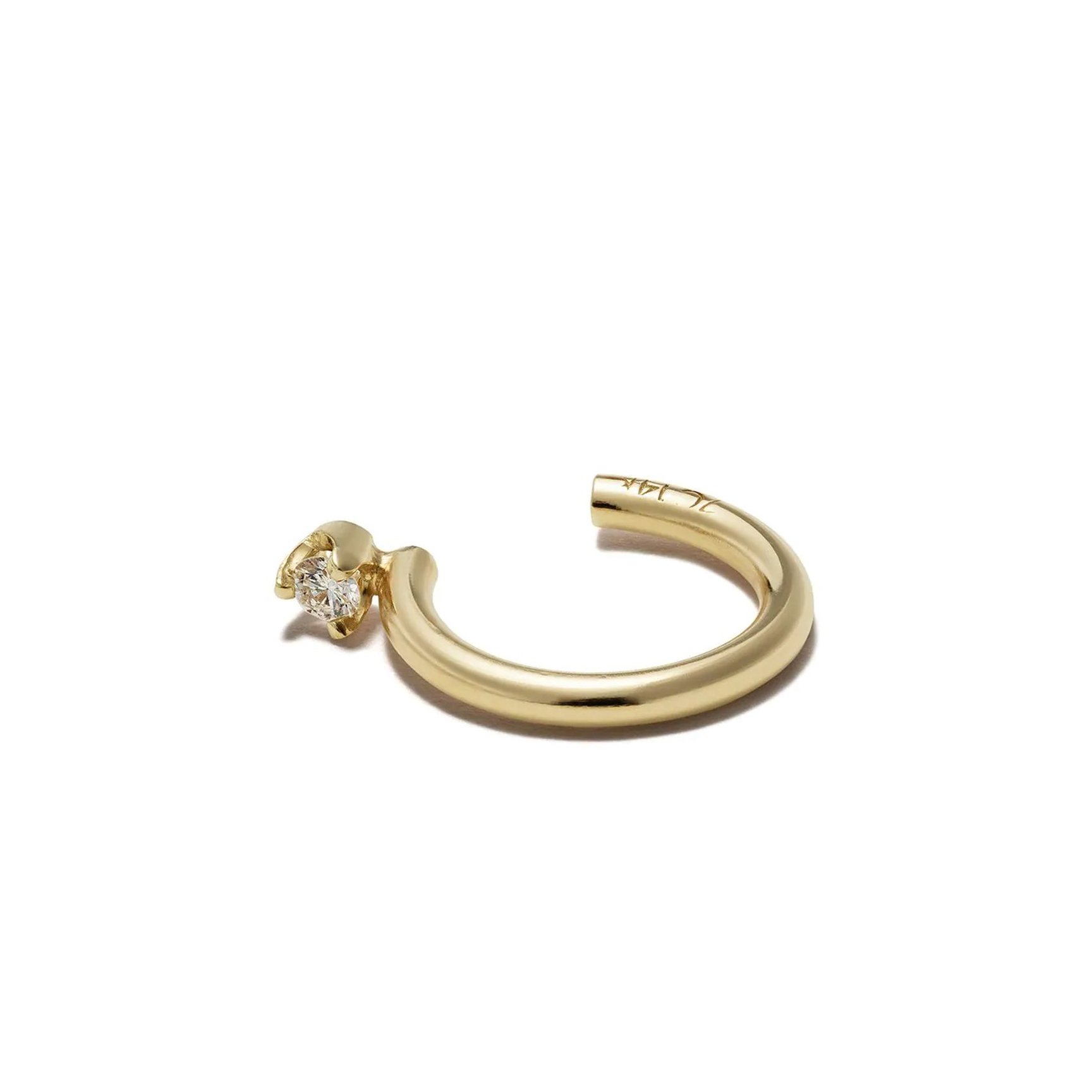 「ゾーイ キッコ(Zoë Chicco)」のイヤーカフは、ラウンドカットのダイヤモンドが一粒あしらわれています。ツヤ感のあるイエローゴールドの輝きとダイヤモンドの清楚さが楽しめます。華奢でシンプルなので、重ね付けに使うのも◎ 。