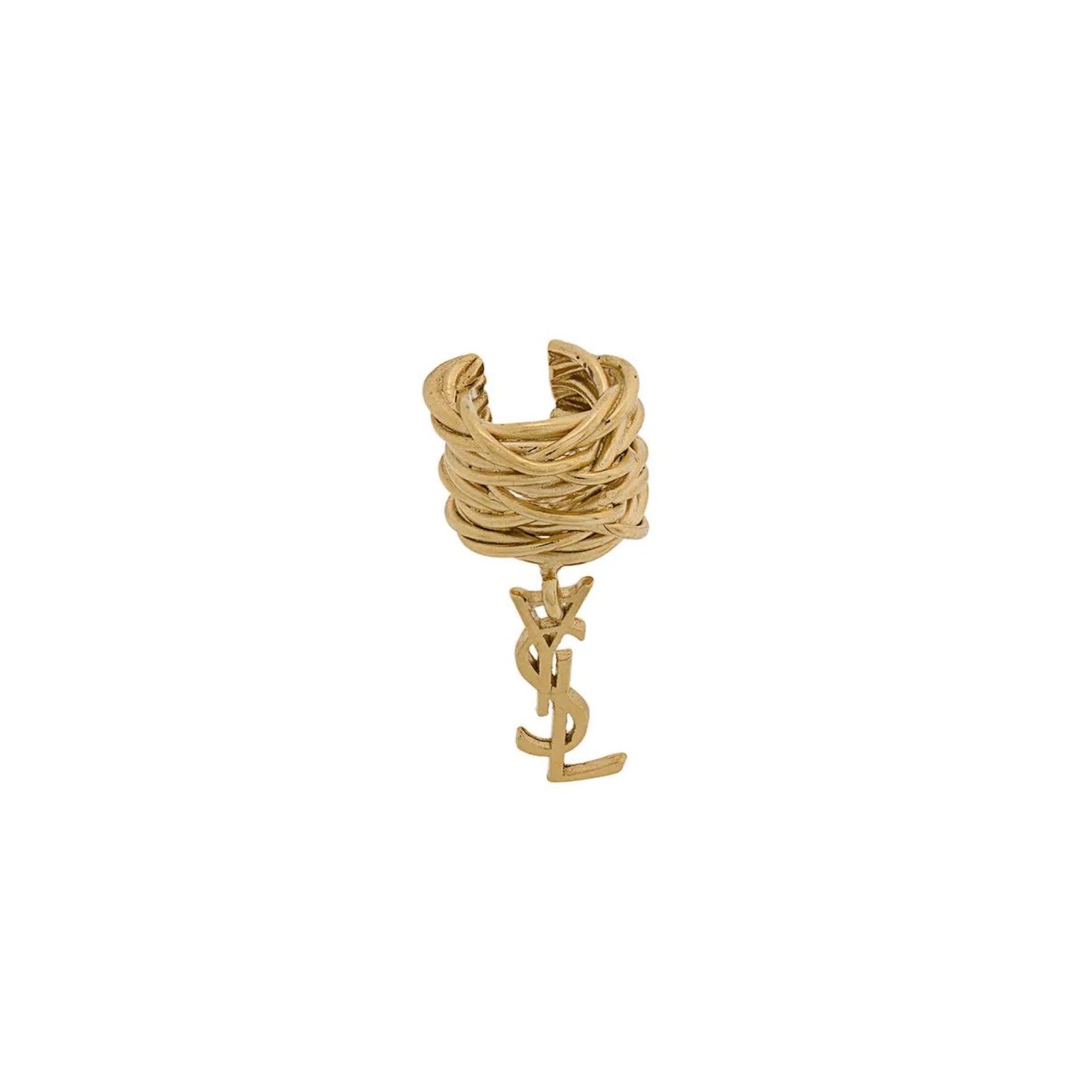 フープが幾重にも無造作に重なったかのようなデザインと、ブランドロゴシンボルのドロップモチーフがロックな印象。「サンローラン(SAINT LAURENT)」のイヤーカフは、マットな24Kゴールドで、シックなパーティーシーンにもぴったり。ユニセックスで使えるデザインです。