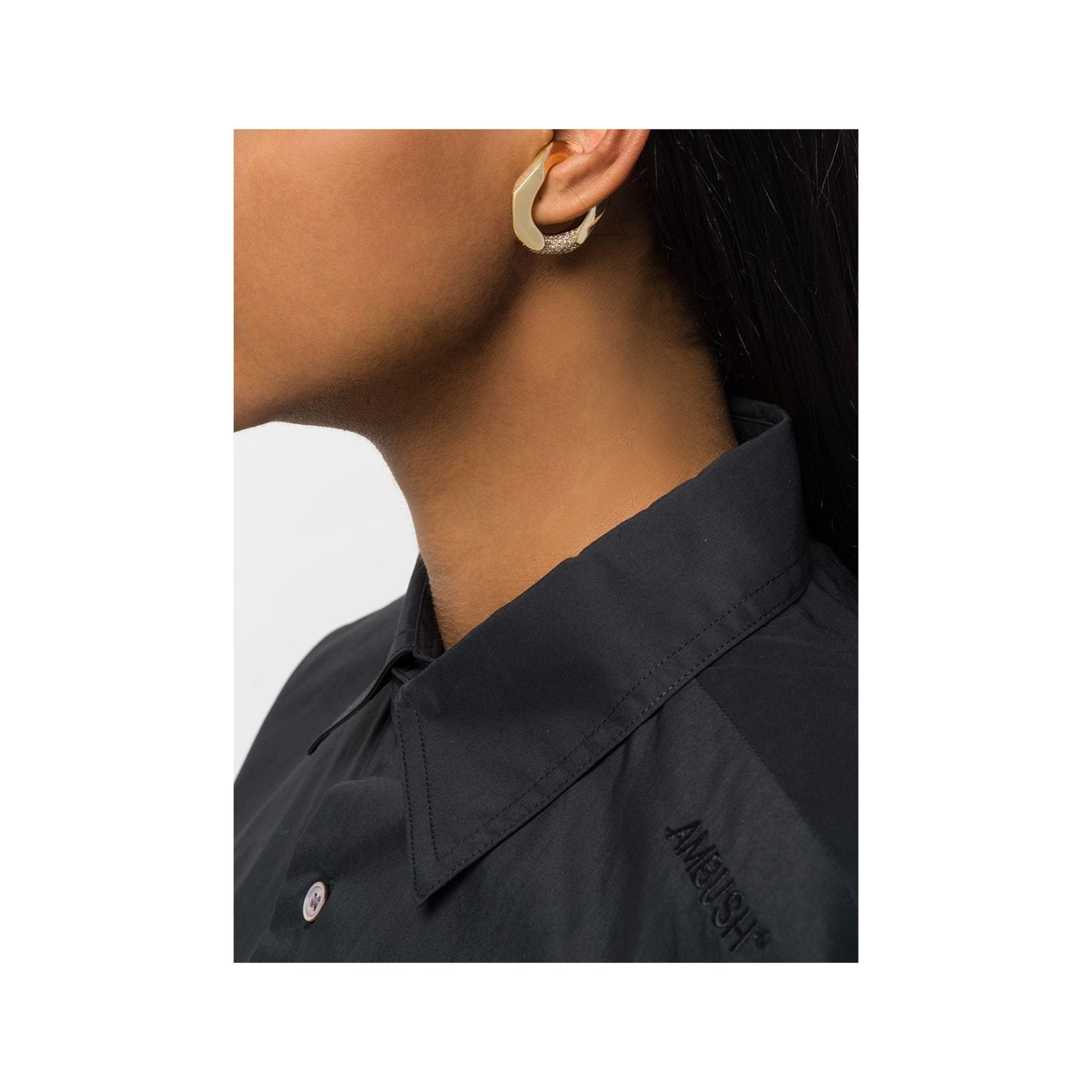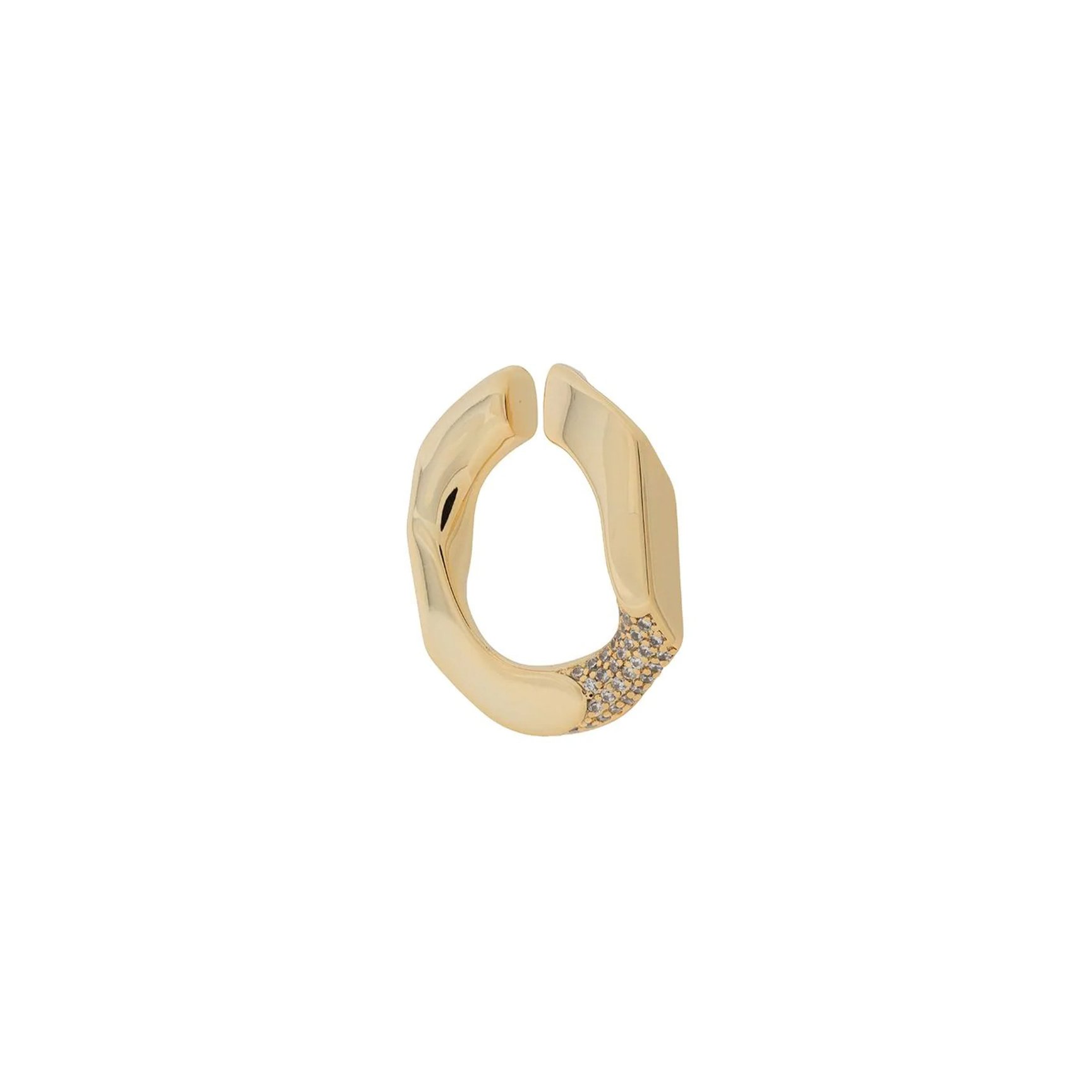 「ナンバリング(Numbering)」のゴールドのイヤーカフは、有機的な多角形のフォルムが印象的。部分的に埋め込まれたクリスタルガラスとの、素材感のコントラストが秀逸。