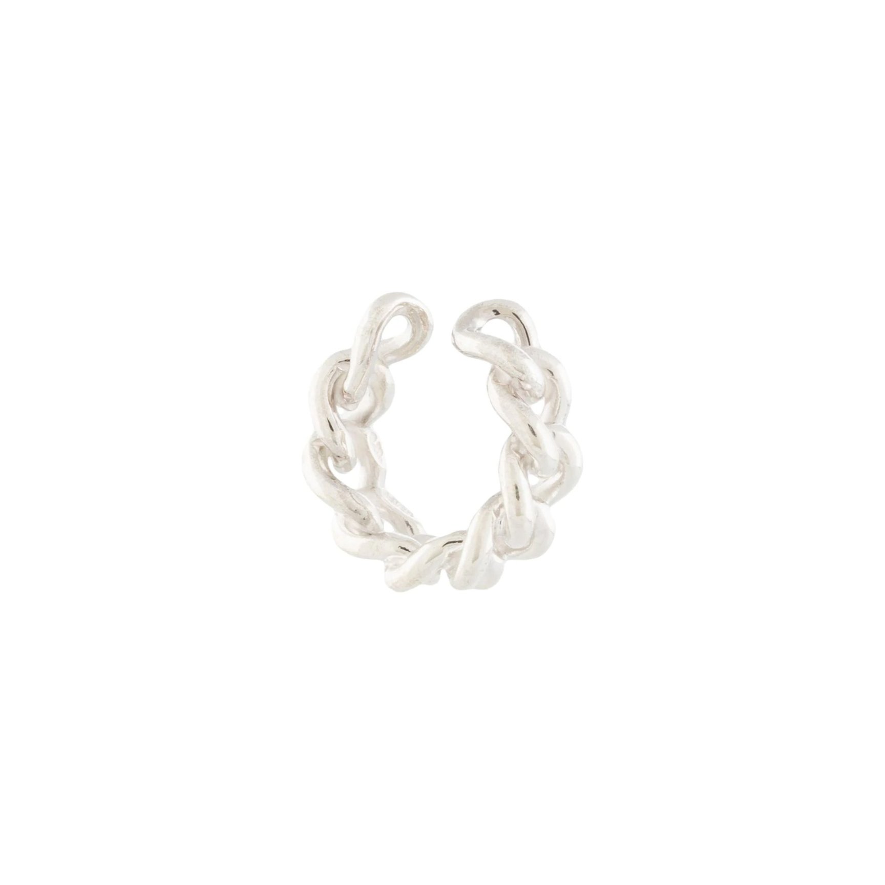 ジャパニーズジュエリーブランド「イーエム(E.M.)」のシルバーのイヤーカフです。ツイストしたチェーンのような造形で耳元にアクセントを。やや大ぶりのサイズ感ながらも、デイリーユースにもおすすめのデザインです。