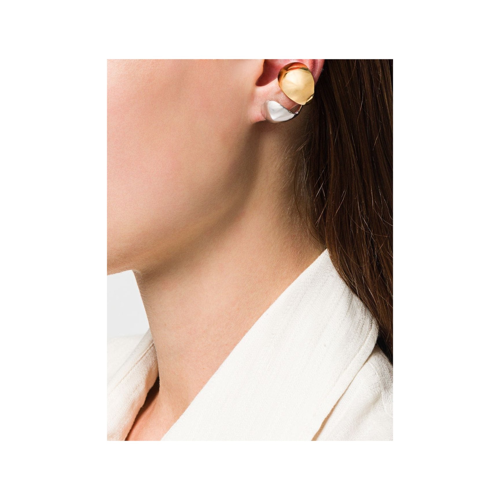 「シャルロット・シェネ(Charlotte Chesnais)」のイヤーカフは、シルバーとゴールドのバイカラーがポイント。存在感のあるサイズですが、2つ異なる卵型のモチーフの曲線が、優しげです。