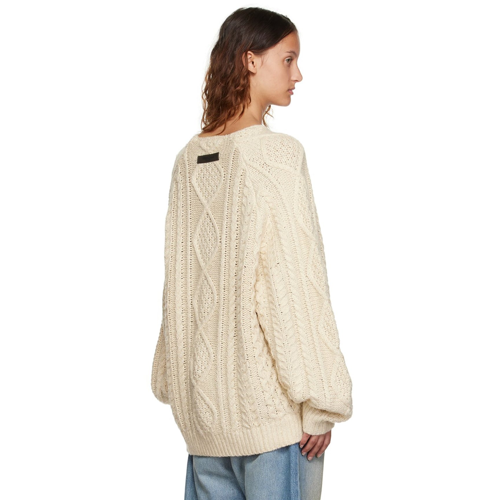 ほっこりした印象を持つケーブル編みのニットもラインナップ。首元のリブを省くことで、程よい抜け感を演出。写真のようにボーイフレンドニットのような、ゆったりとしたサイズ感で合わせるのがポイントです。