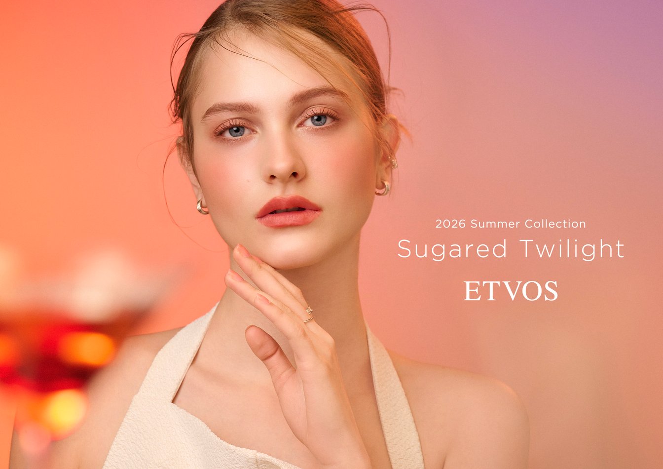 エトヴォスの夏コスメは、「Sugared Twilight」をテーマに展開。砂糖をまぶしたように繊細なきらめきや、ほんのりと染まる血色感をまとって、甘く揺れる夕日とリンクする無邪気な愛らしさを演出してみては。