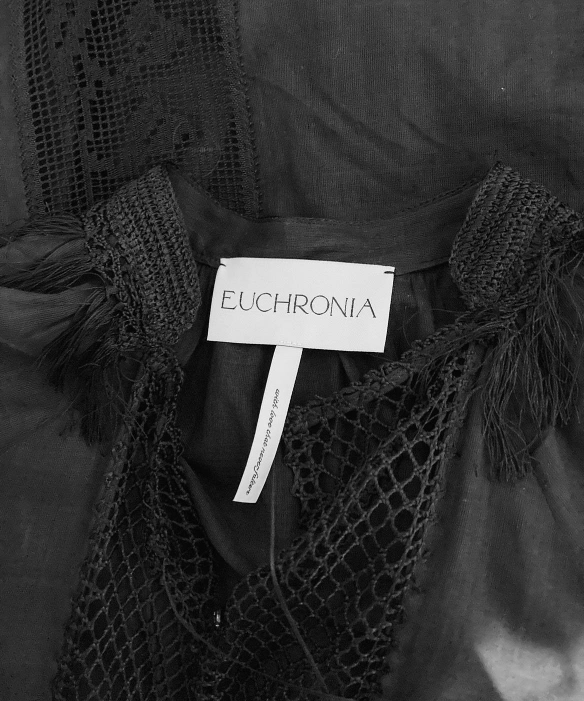 展示会の準備までに1年間もあると思っていましたが、私たちはお互い別の仕事をしていることから、本当にあっという間に時間が過ぎていき、撮影前はギリギリまでサンプルが間に合うかなどで不安になることが多々ありました。でも、コンセプトを詰めるところからスタートして服を作り、1年かけて準備を行ってきたものが、関わって下さった方たちのおかげで写真として作品になった事、念願だったお花屋さんでの展示会が行える事がとても嬉しく感じています。下記の写真はようやく上がってきたブランドネーム。ネームの下に背守りのように付いてるのは”with love that never faulters"という文字です。