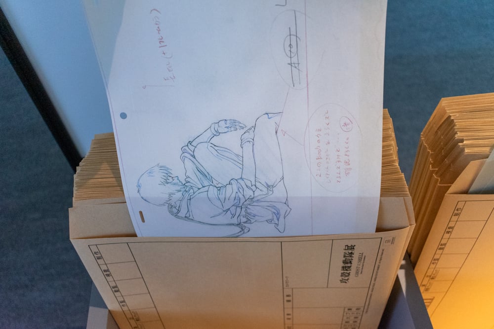 今回の展覧会のメイン会場には、各アニメ作品の設定資料や原画、セル画など1600点を超える制作資料が一堂に集結。アニメーション史に残る名シーンと言える、草薙素子が光学迷彩を纏いつつビルから落下するシーンなど、数々の名場面が生まれたプロセスが体感できる。