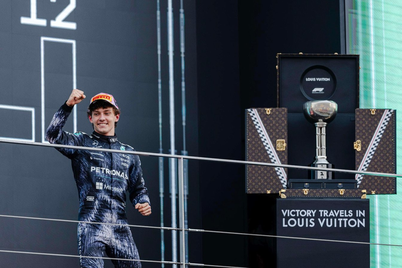 前戦に続き、優勝を果たした「メルセデス AMG ペトロナス F1チーム」19歳の新星アンドレア・キミ・アントネッリ(Andrea Kimi Antonelli)は表彰台でルイ・ヴィトンのトロフィーケースに入った優勝杯を掲げた。