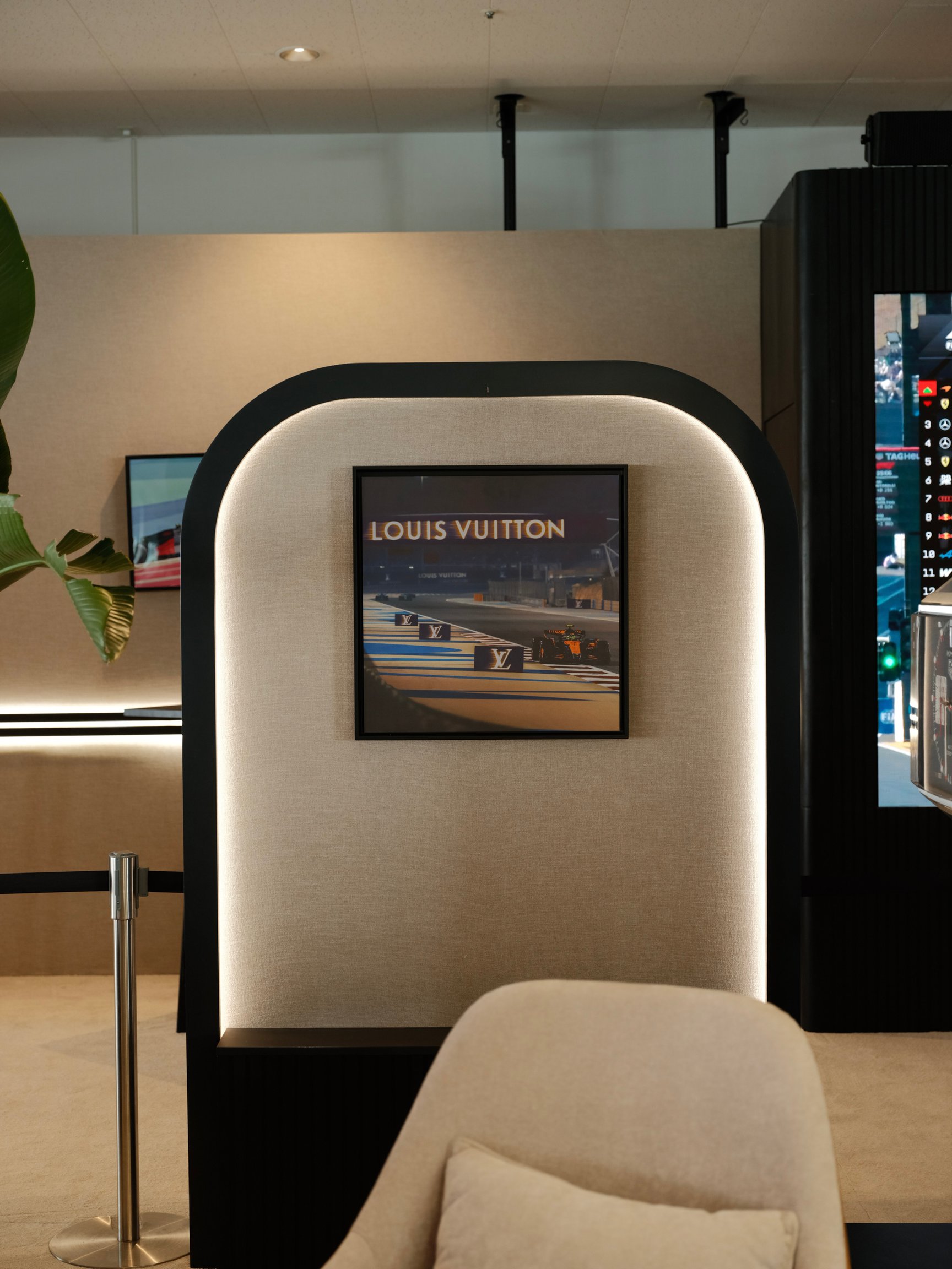 F1をファッション文脈で語るうえで欠かせないのが、昨年発表されたLVMH モエ ヘネシー・ルイ ヴィトン(LVMH Moët Hennessy Louis Vuitton)による10年間のパートナーシップだ。これにより、F1の現場ではサイネージ掲出といったブランド露出にとどまらない、ラグジュアリーならではの演出が随所で存在感を放っていた。