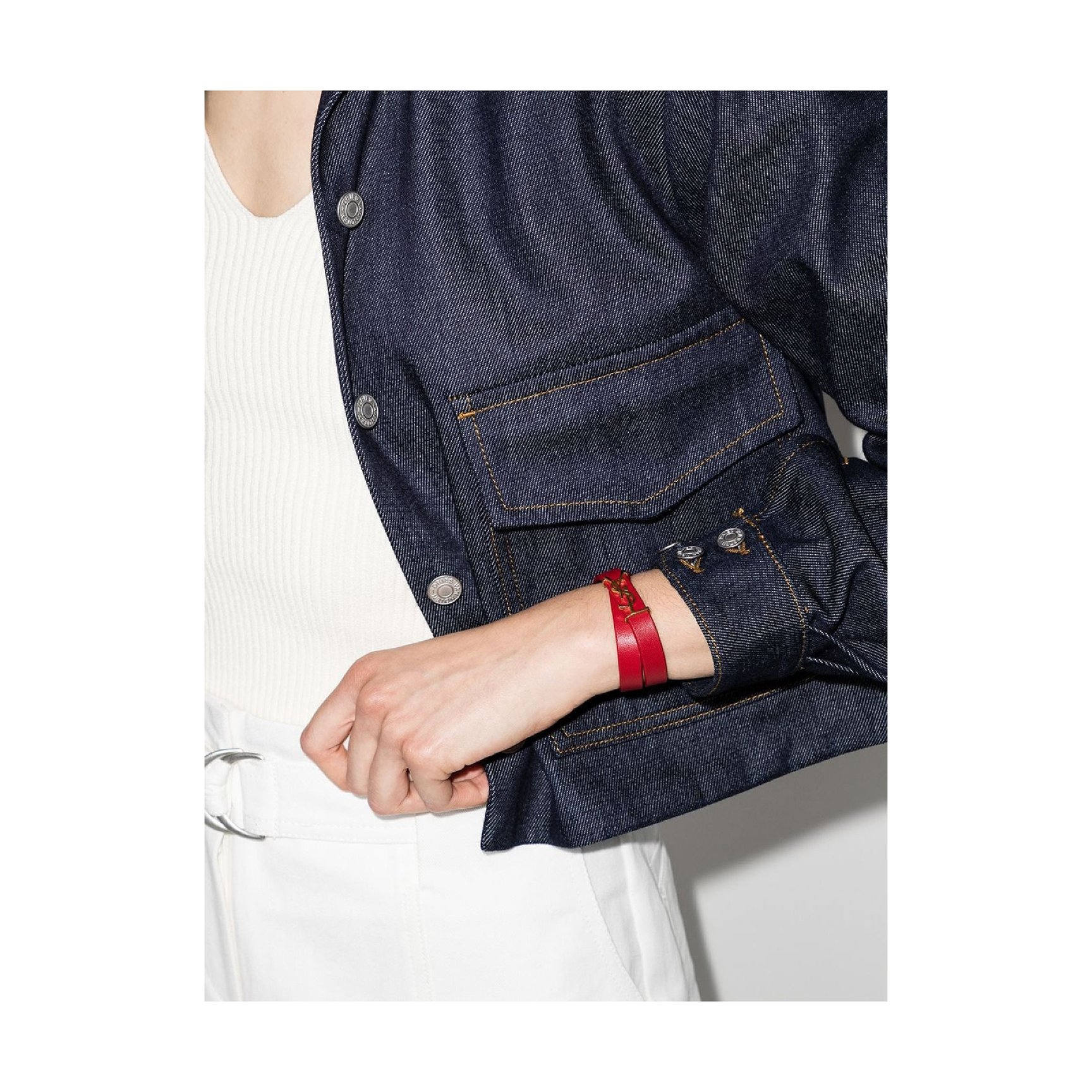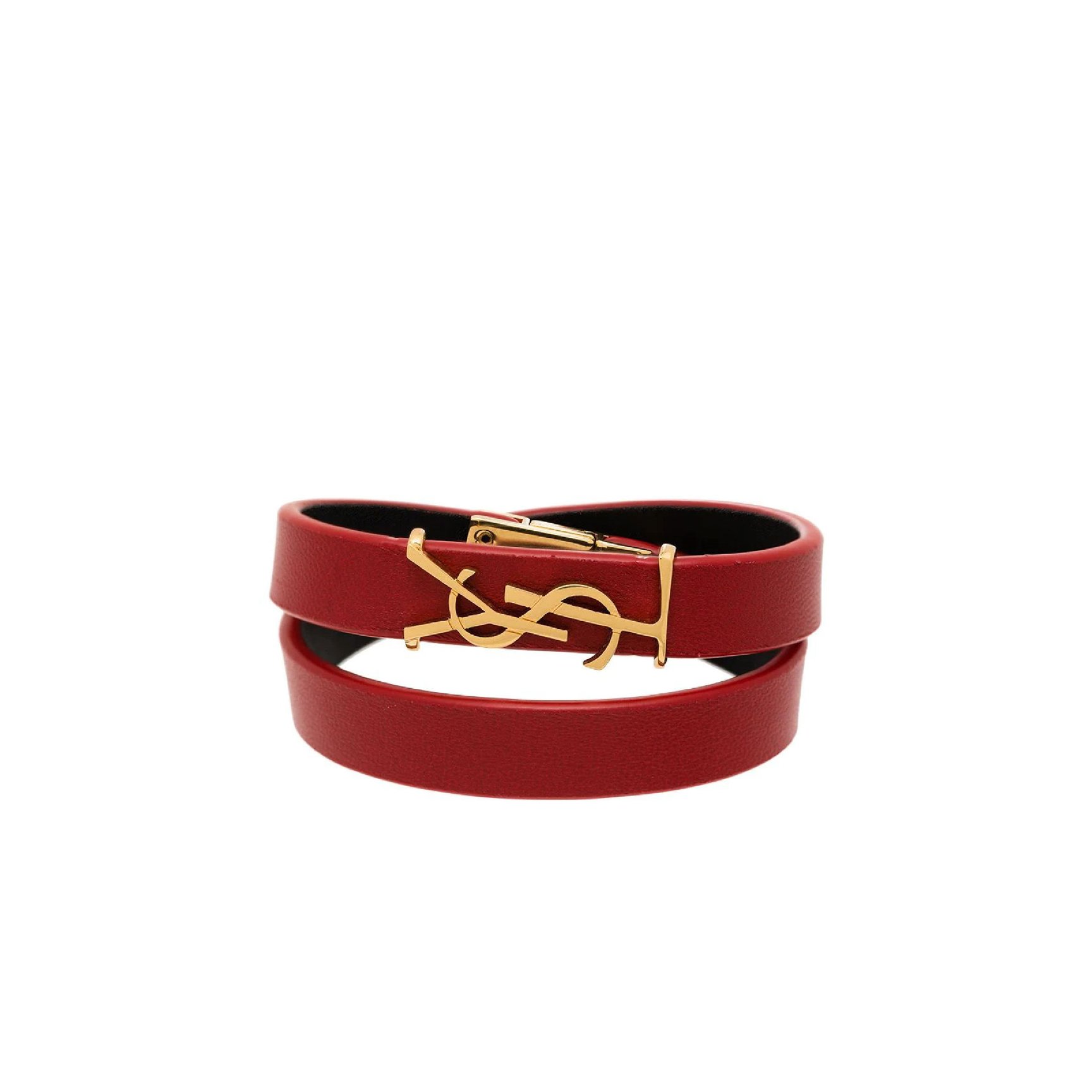 リングよりも贈るハードルが高くなく、スタイリングに合わせてファッションのアクセントとして楽しめるブレスレット。「サンローラン(SAINT LAURENT)」のカジュアルにもドレスにも映える一本は、YSLロゴプレートのゴールドと気分が高まるようなレッドが鮮やかなレザーブレスレットです。
