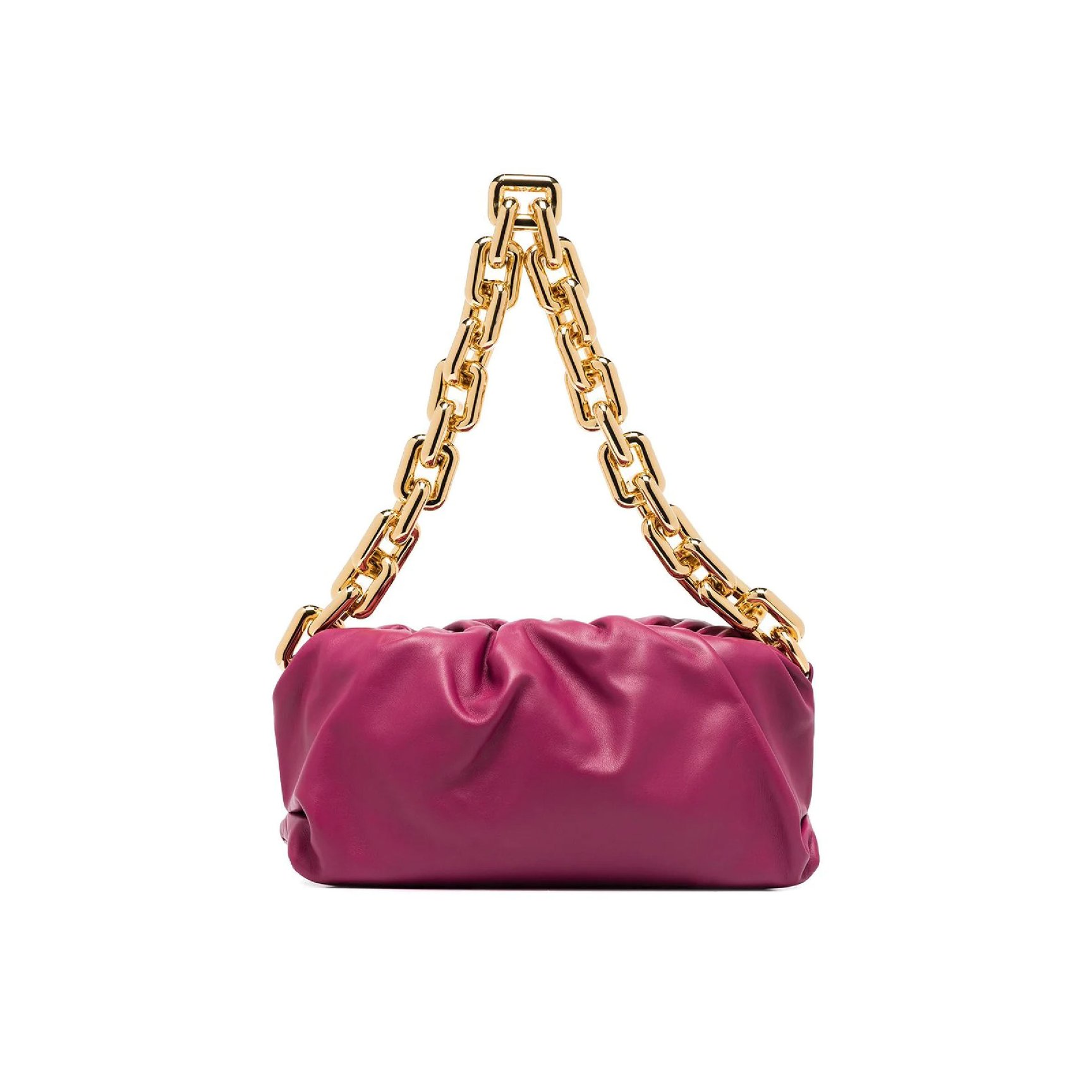 ゴージャスでモダンなバッグに狙いを定めているのなら、「ボッテガ・ヴェネタ(BOTTEGA VENETA)」の名品「ザ・チェーン・ポーチ」をチェック。芯を感じるフェミニンなカラーと、ボリューミーなゴールドチェーンでグラマラスなスタイリングを完成させます。もちろん、魅力溢れる色違いのラインナップにも注目です。