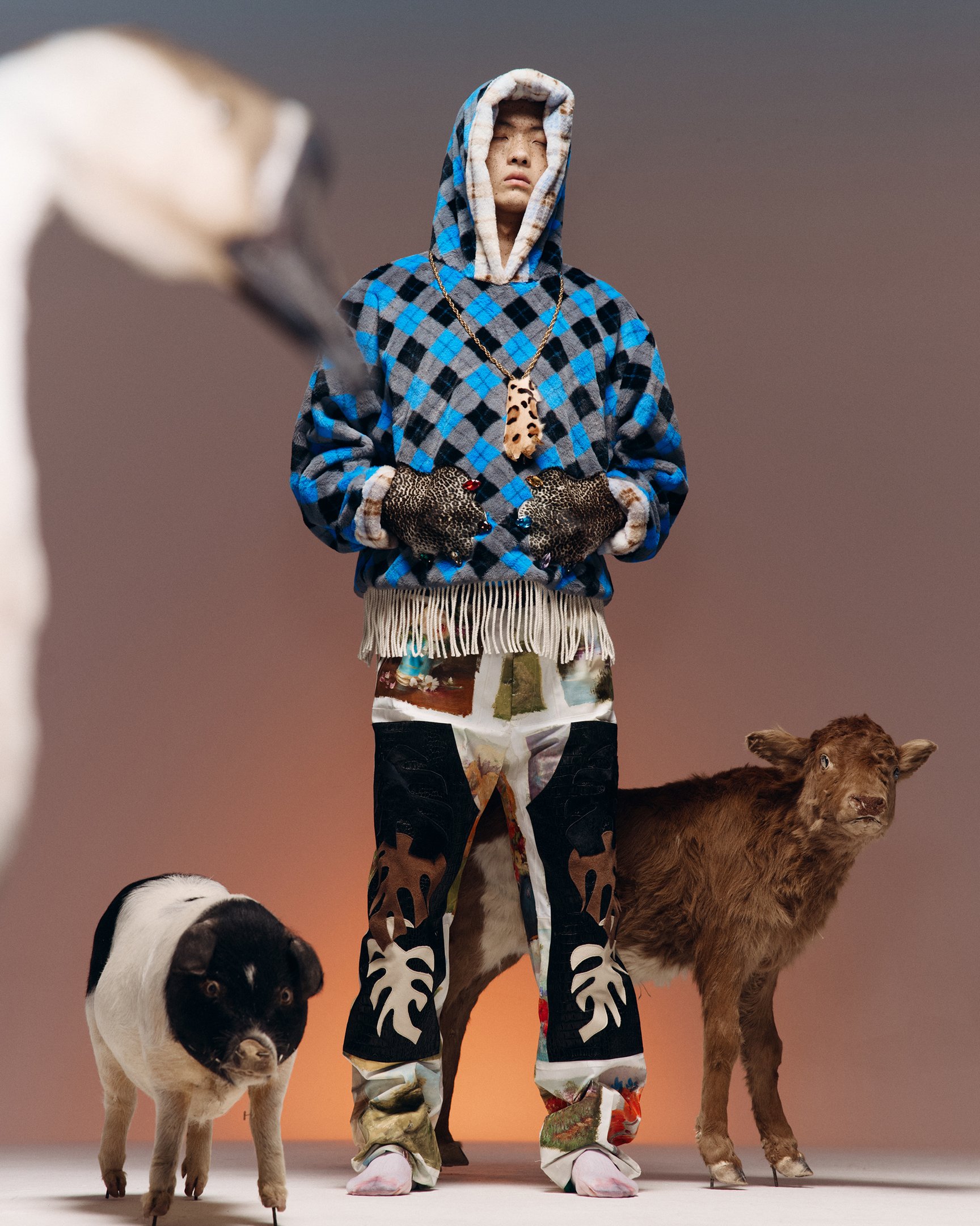 ペナルティメイトを手掛けるシャン・ガオは、中国・温州出身。ニューヨークのパーソンズ美術大学で修士号を取得後、ラフ・シモンズ(Raf Simons)が率いる「カルバン クライン 205W39NYC(Calvin Klein 205W39NYC)」で2年間経験を積み、2018年にニューヨークでペナルティメイトを始動。自身のルーツである中国とアメリカでの生活の双方から着想を得た、1970年代の「ウェアラブル・アート(着る芸術)」運動を彷彿とさせるコレクションを展開している。多様な素材を組み合わせたアッサンブラージュ(寄せ集め)技法と、独創的な物語性のあるクリエイションが特徴。2025年には、LVMHプライズのセミファイナリストに選出された。