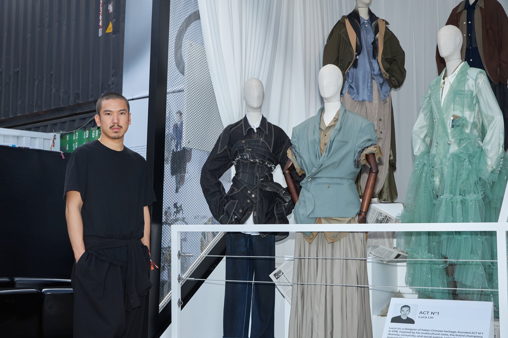デザイナーのルカ・リンは、1993年イタリア生まれ。マックスマーラ(Max Mara)・グループでパタンナーやデザインプロジェクトのコンサルタントとして経験を積んだ後、2016年にアクト・ヌメロウーノを設立。自身の多文化なバックグラウンドを背景に、多様性と包括性を象徴するクリエイションを展開している。