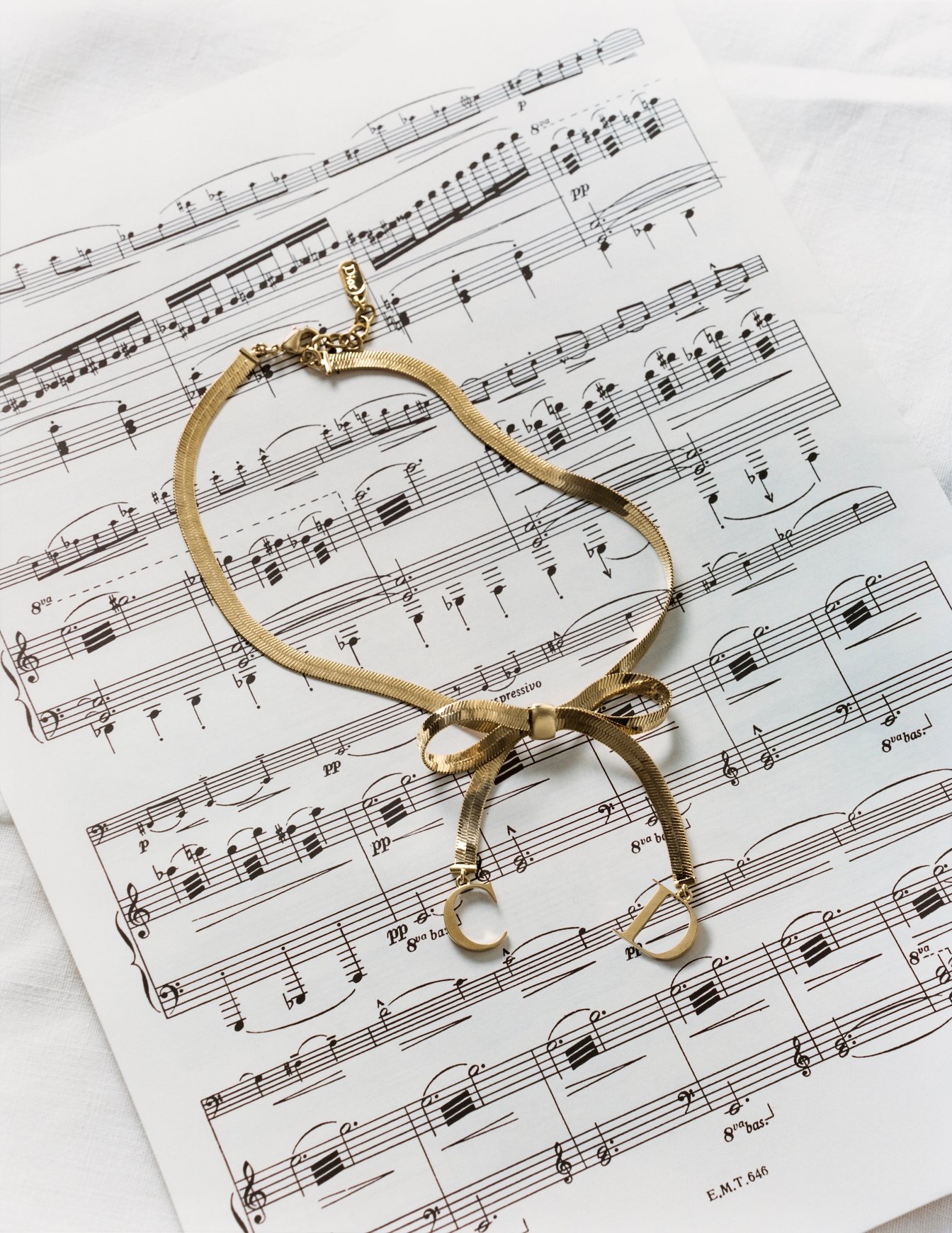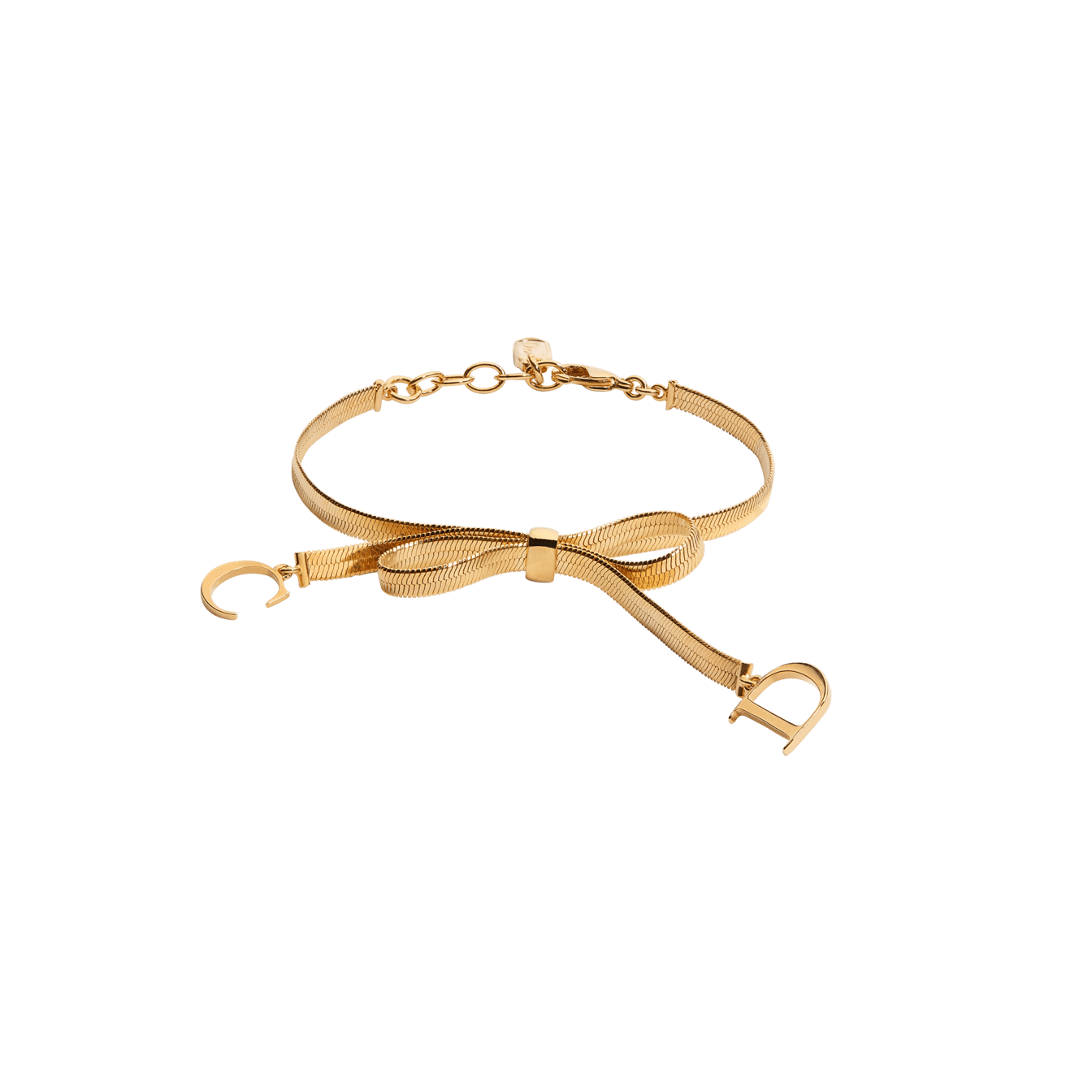 アイコニックなモチーフの一つが「ボウ」(リボン)。ジョナサンは、クリスチャン・ディオールが1947年の初ショーで発表して以来、愛し続けてきたリボンにオマージュを捧げた。ゴールドトーンメタルで精巧に作り上げたスネークチェーンのリボンに、CDシグネチャーのアクセントを添えたブレスレットが登場。
