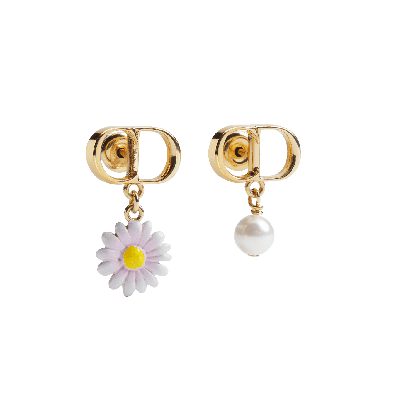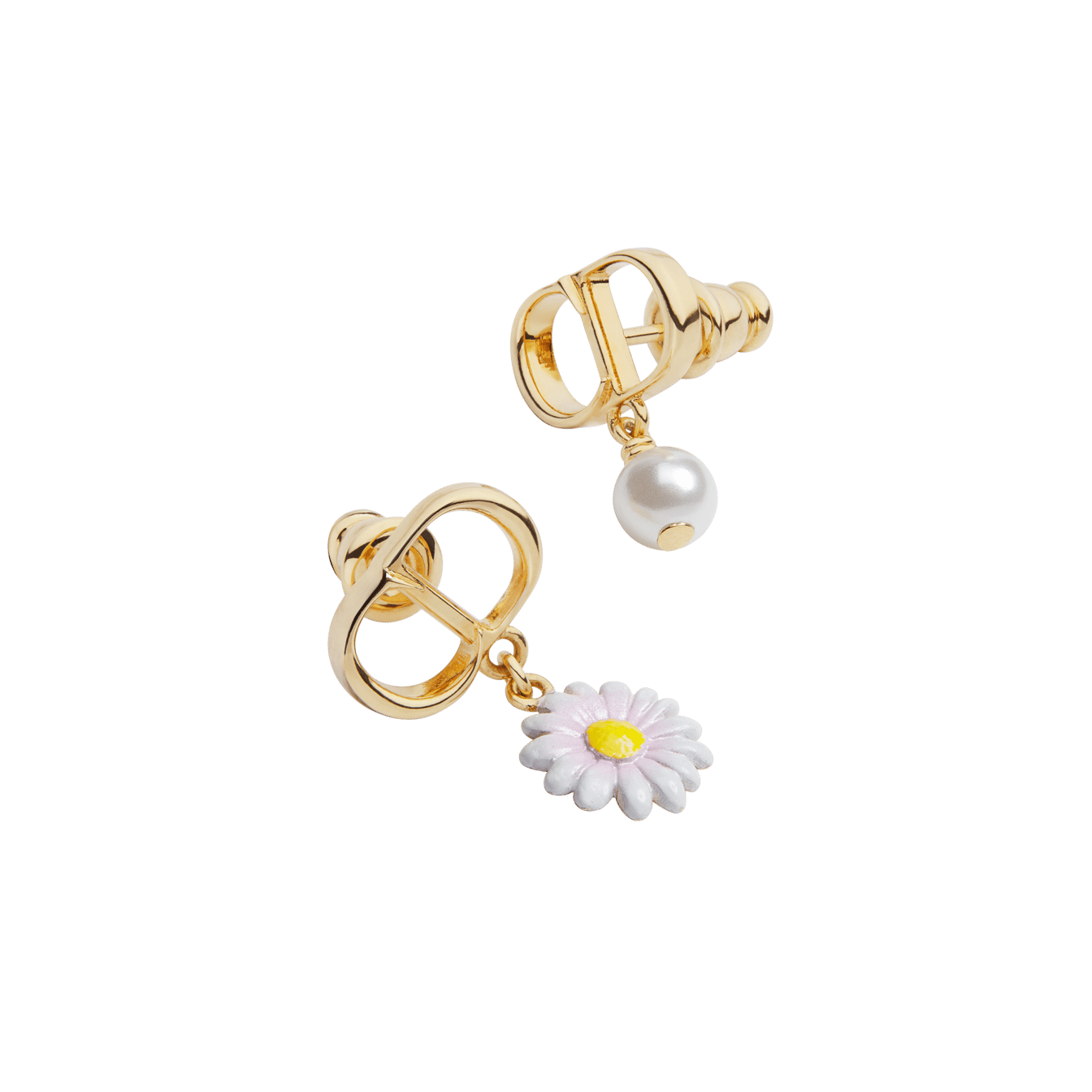 庭園の美しさにインスパイアされ、ムッシュ ディオールが愛した花々にオマージュを捧げた。CDシグネチャーのゴールドメタルから、マルチカラー ラッカー仕上げのデイジーチャームとホワイトのレジンパールが揺れる愛らしいデザイン。