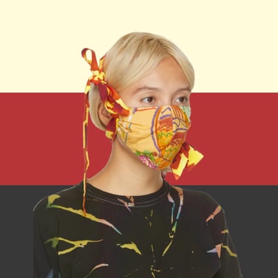 誰とも被らない個性派アイテムをお探しならこちら。デッドストックファブリックを使用した「コリーナ ストラーダ(Collina Strada)」のマスクは、ひとつひとつプリントが異なるんです。ボリューミーなリボンストラップも抜群の存在感を発揮してくれます。