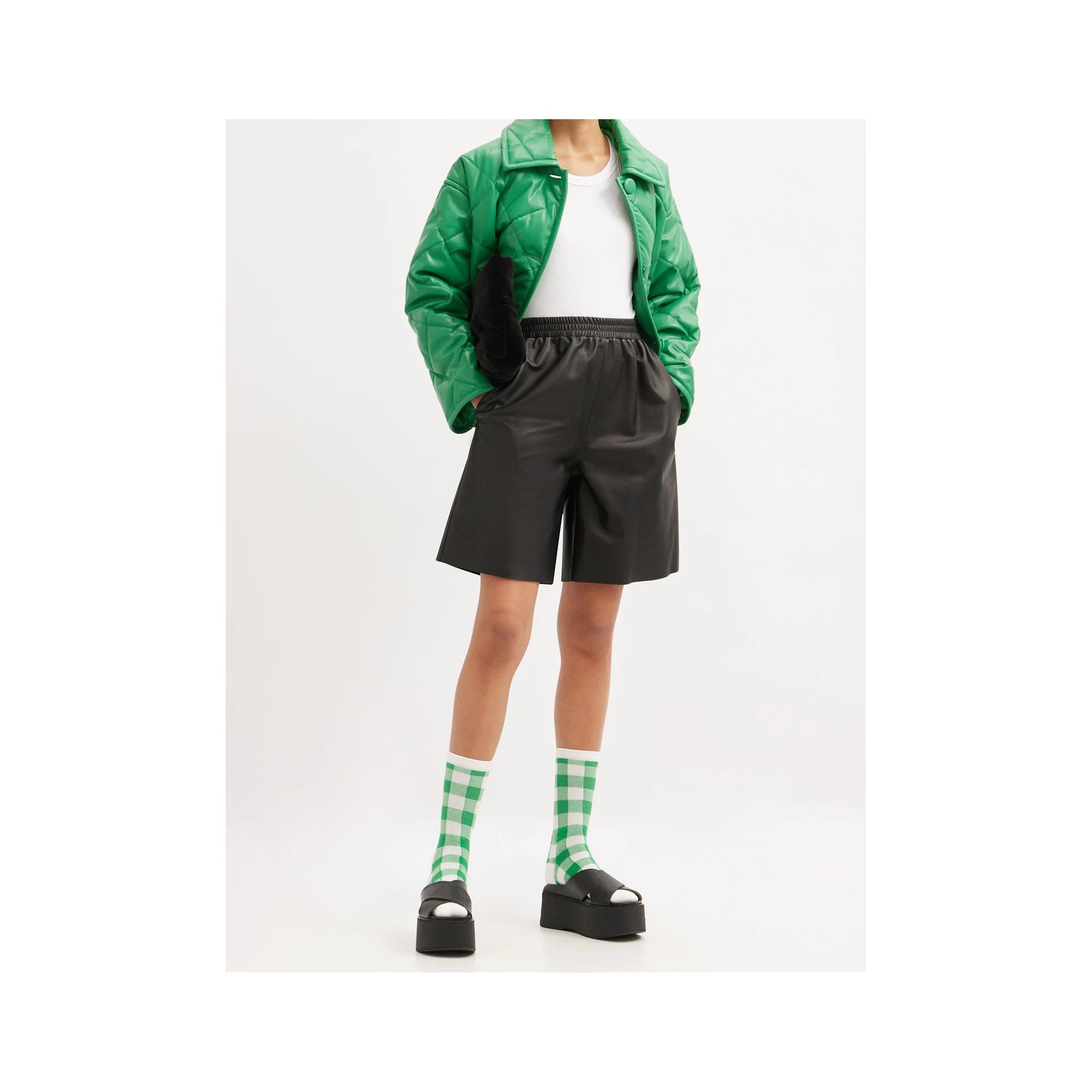 ここ最近何かと話題の「ガニー(GANNI)」ですが、ウェアはさることながら靴下も◎でした。ジャガード織でデザインされたストライプとロゴモチーフはミニマルだけれどスタイリングに取り入れた途端にインパクト大。