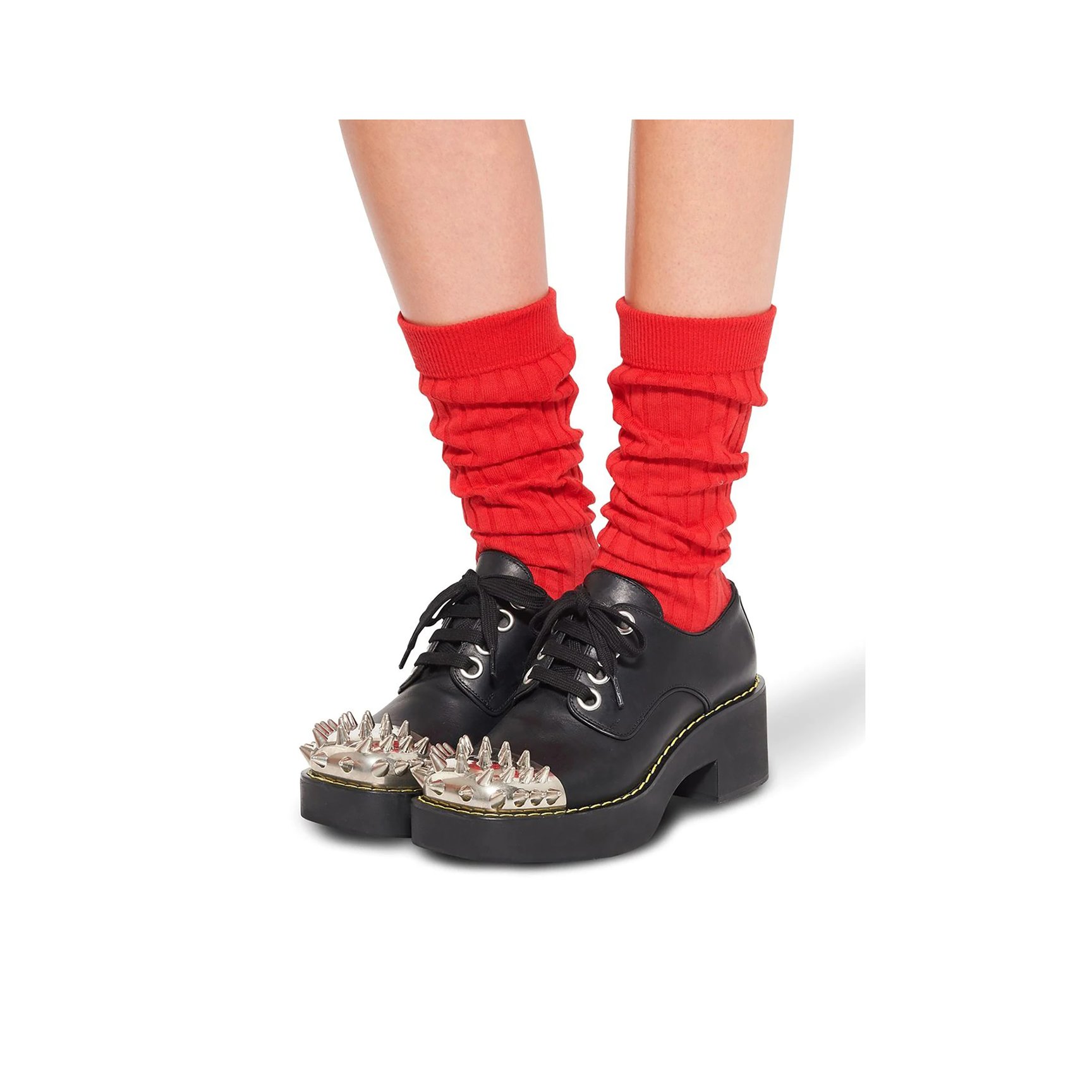 最高にシックでミニマルな「ミュウミュウ(MIU MIU)」の真っ赤な靴下をご紹介。シンプルなウェアに差し色として添えるだけでコーディネートが華やぐ無敵のソックスは、今季のトレンドであるローファーとの組み合わせも抜群です。