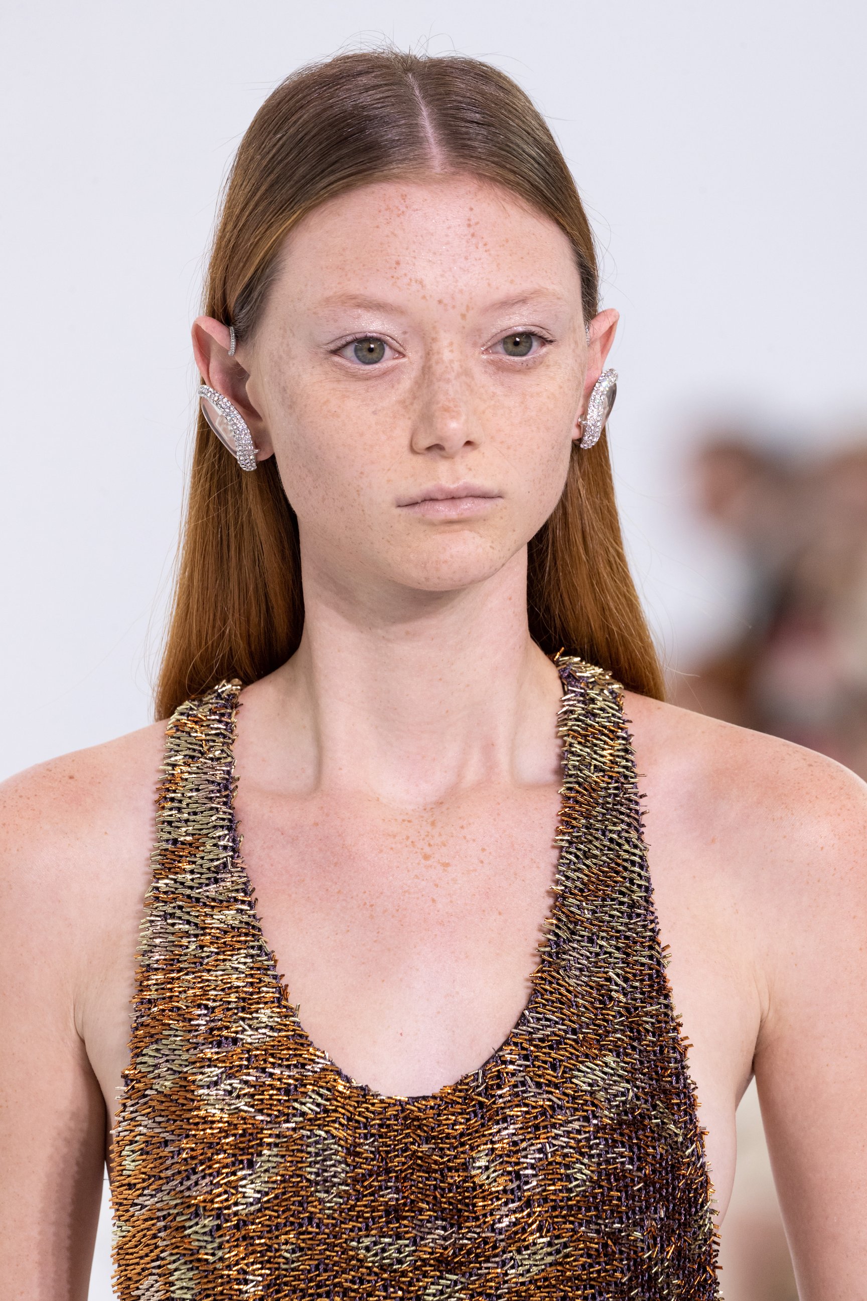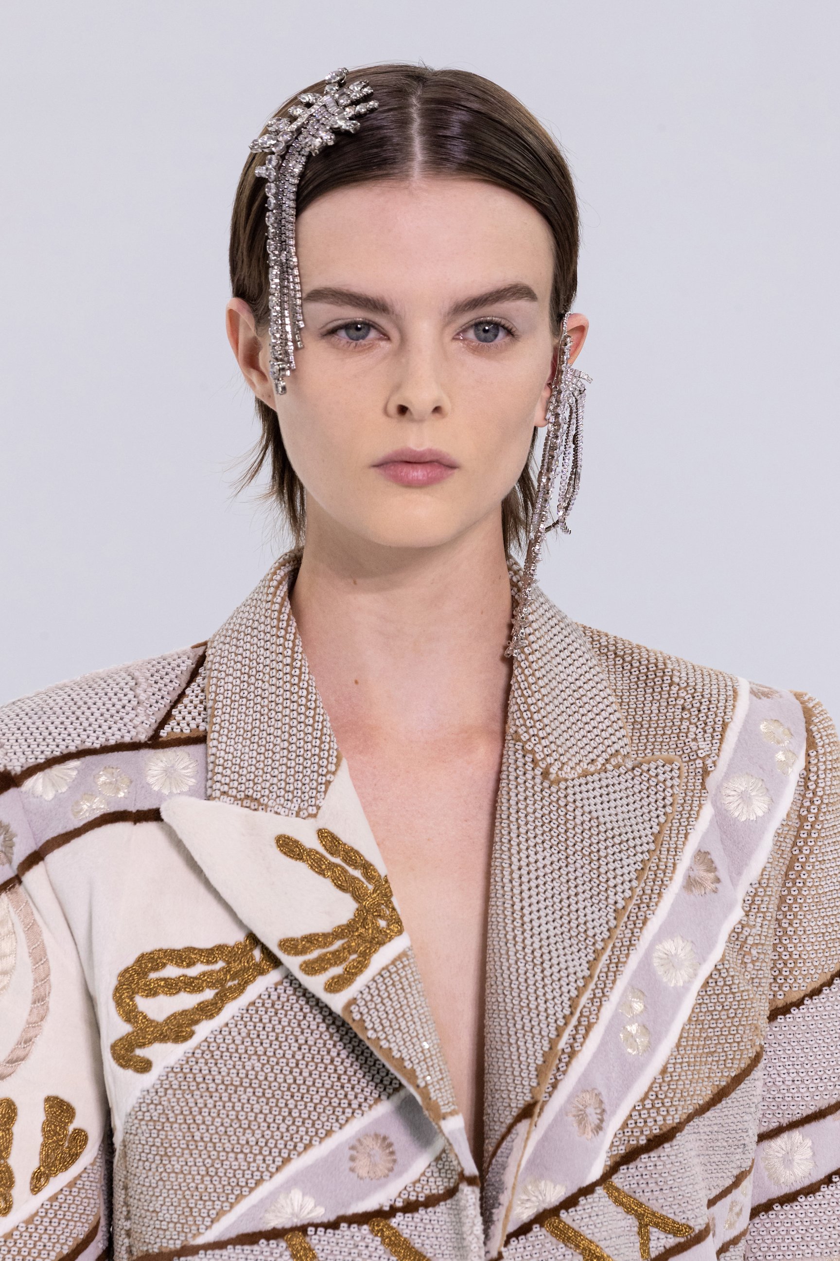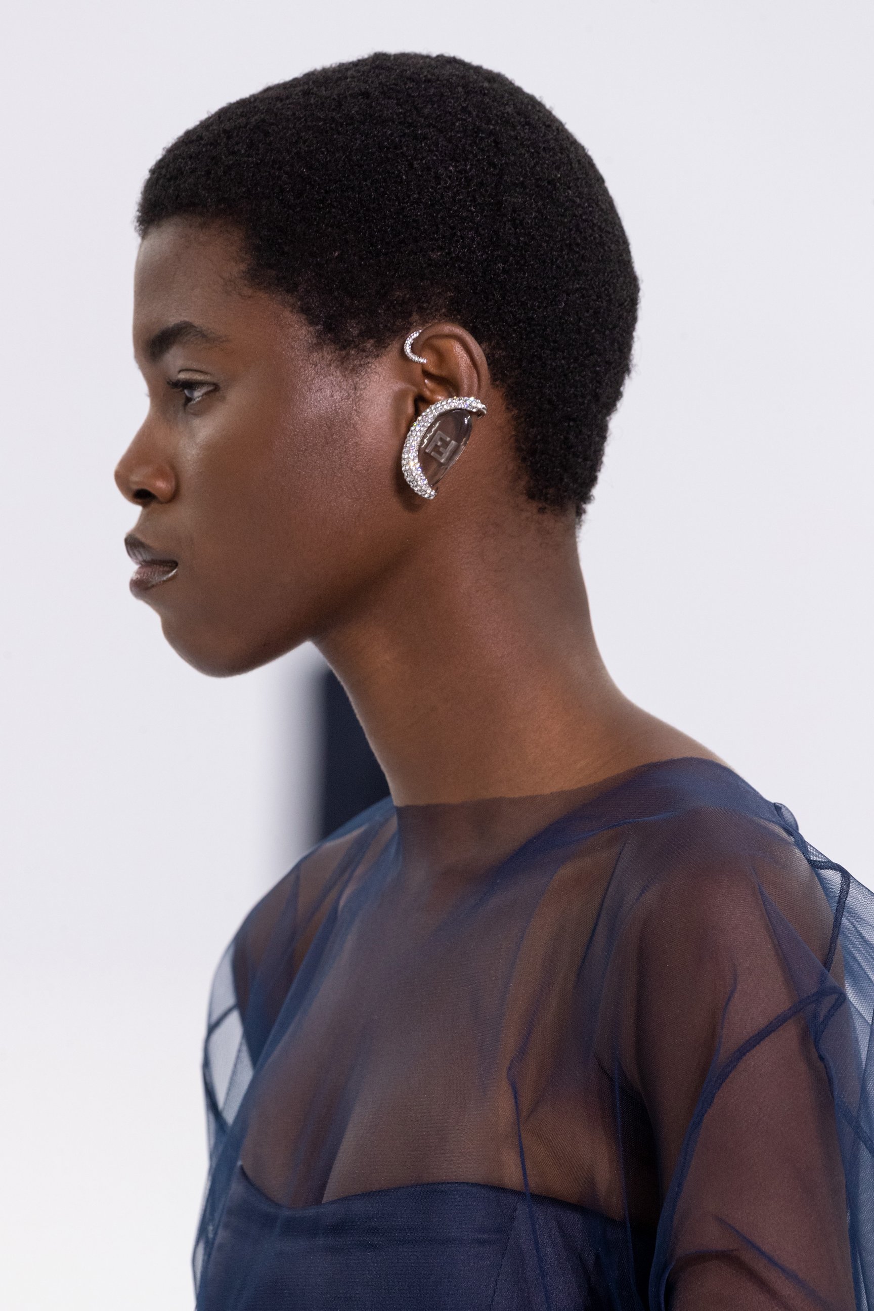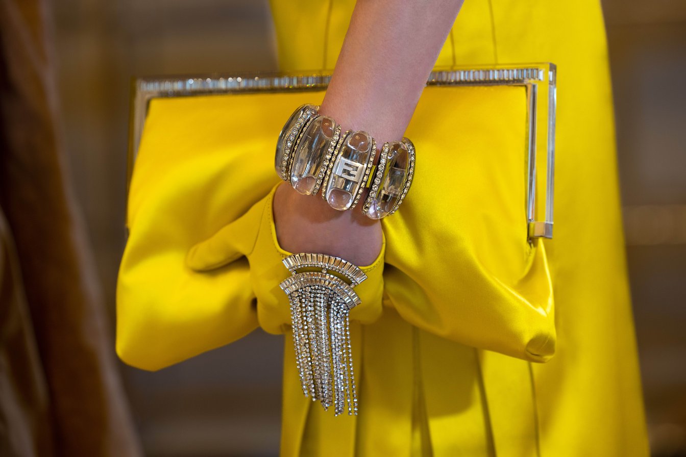 また、コレクション全体に華やぎを与えていたのは、ブランド初のハイジュエリーである「フェンディ フラーヴス(FENDI FLAVUS)」。「フラーヴス」とは、ラテン語で「黄色」を意味する言葉。ジュエリー アーティスティック ディレクターのデルフィナ・ デレトレズ・フェンディ(Delfina Delettrez Fendi)が、ホワイトとイエローダイヤモンドの光、動き、そして輝くオプティミズムを純粋に表現した。