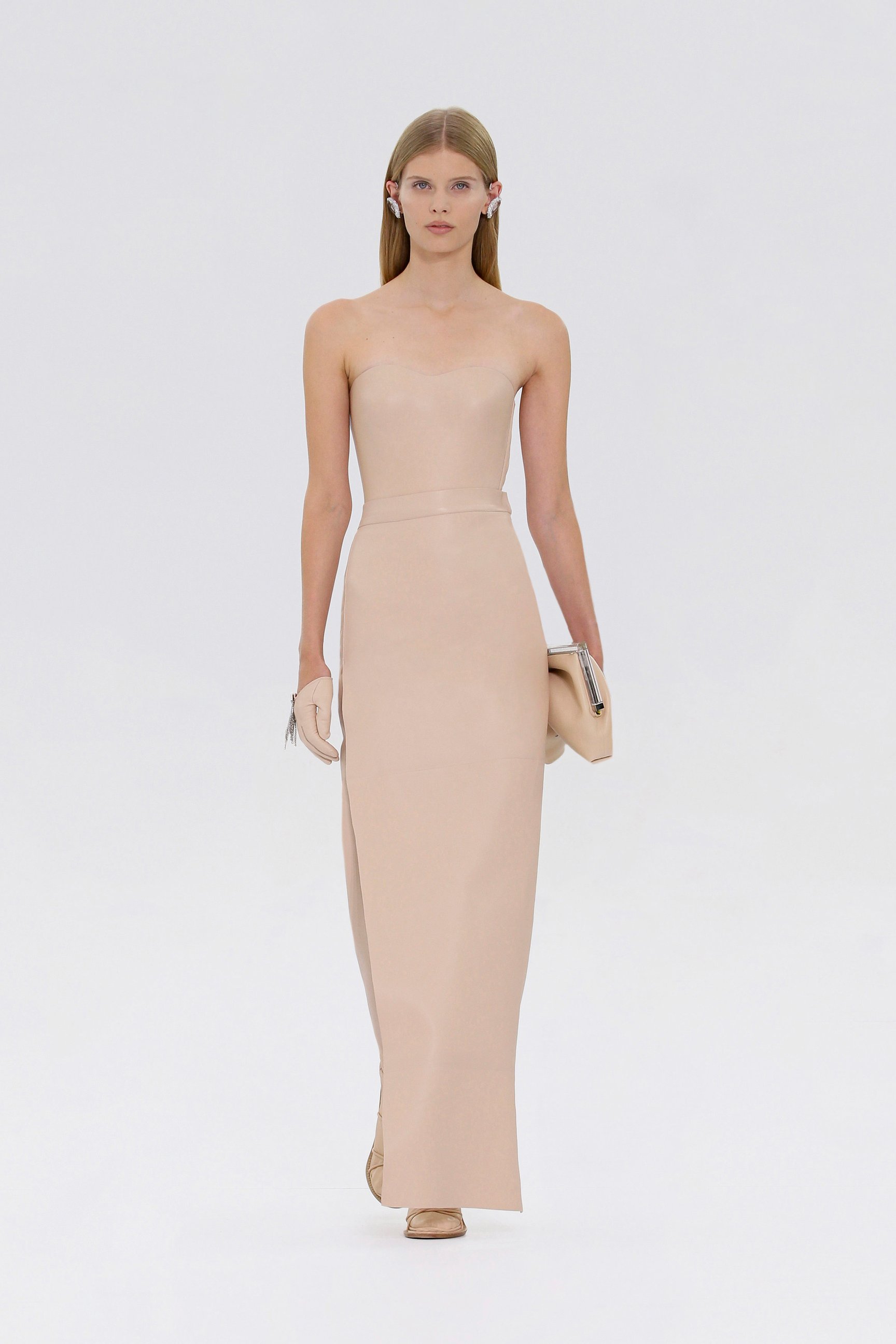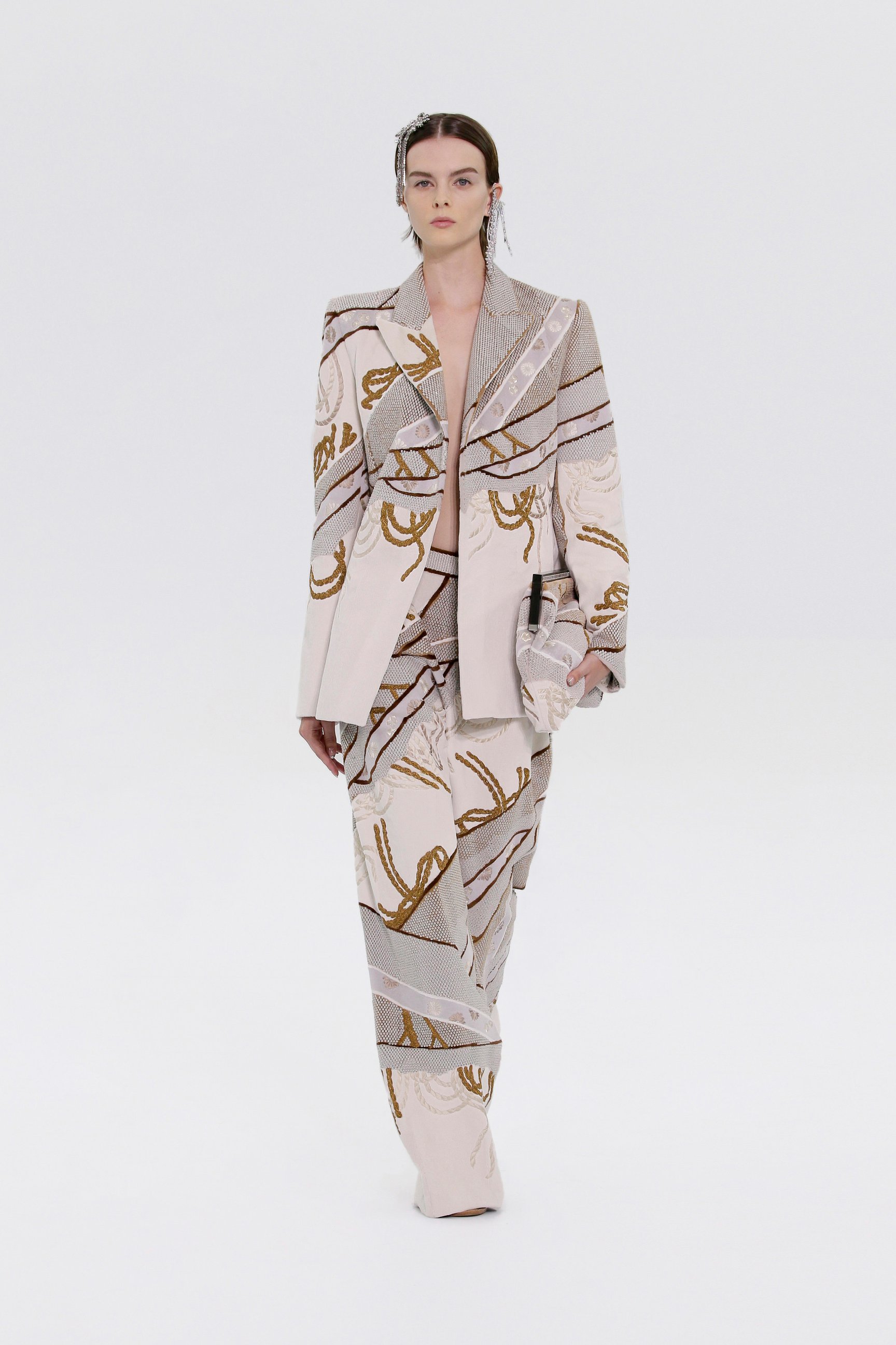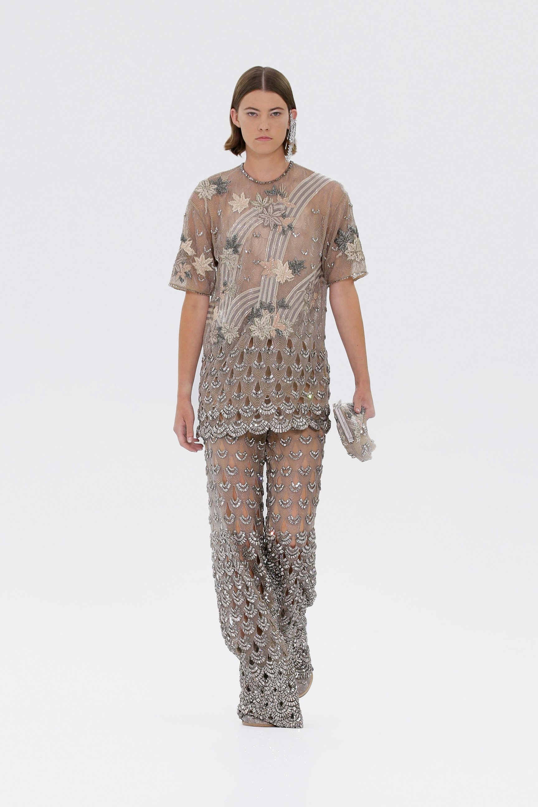 コレクションのキーワードは「パリンプセスト」。記された字句を消し、別の内容を上書きした羊皮紙の写本のことで、「反復され、透けて見える過去の断片が現在を作り上げ、未来へとさりげなく移り変わっていく」というコンセプトを反映している。ヌーディなカラーパレットやしなやかな素材は、羊皮紙そのものを思い起こさせた。