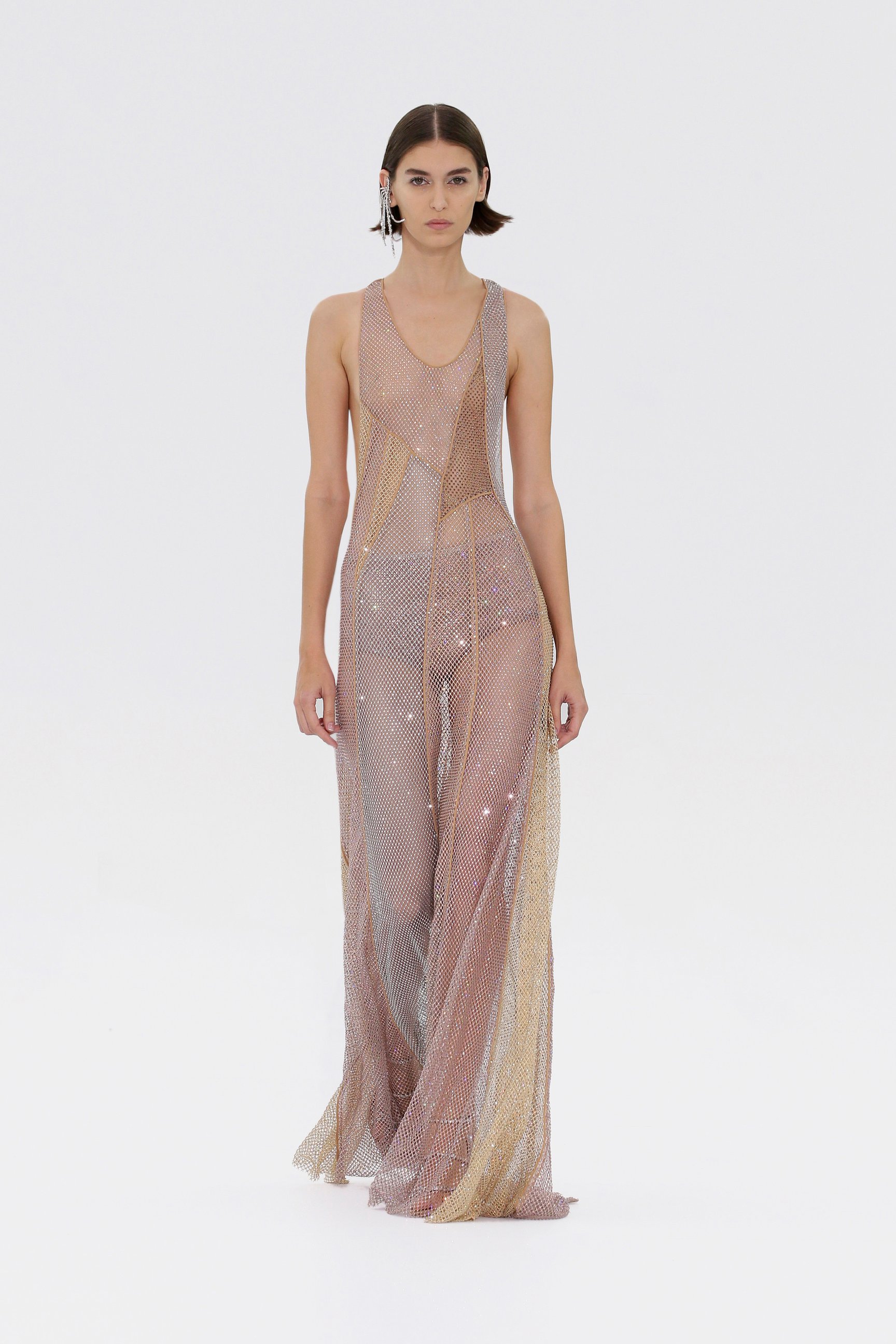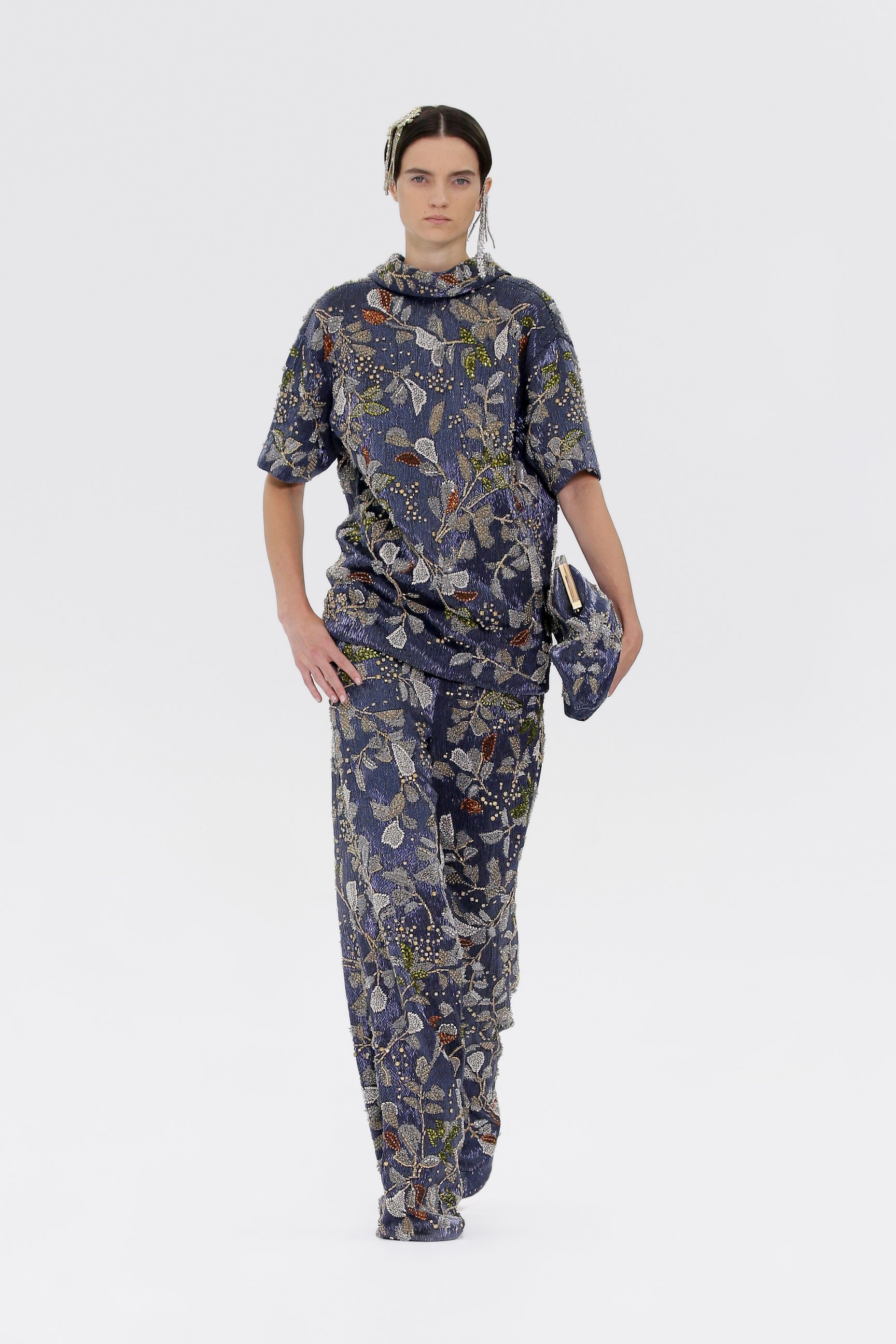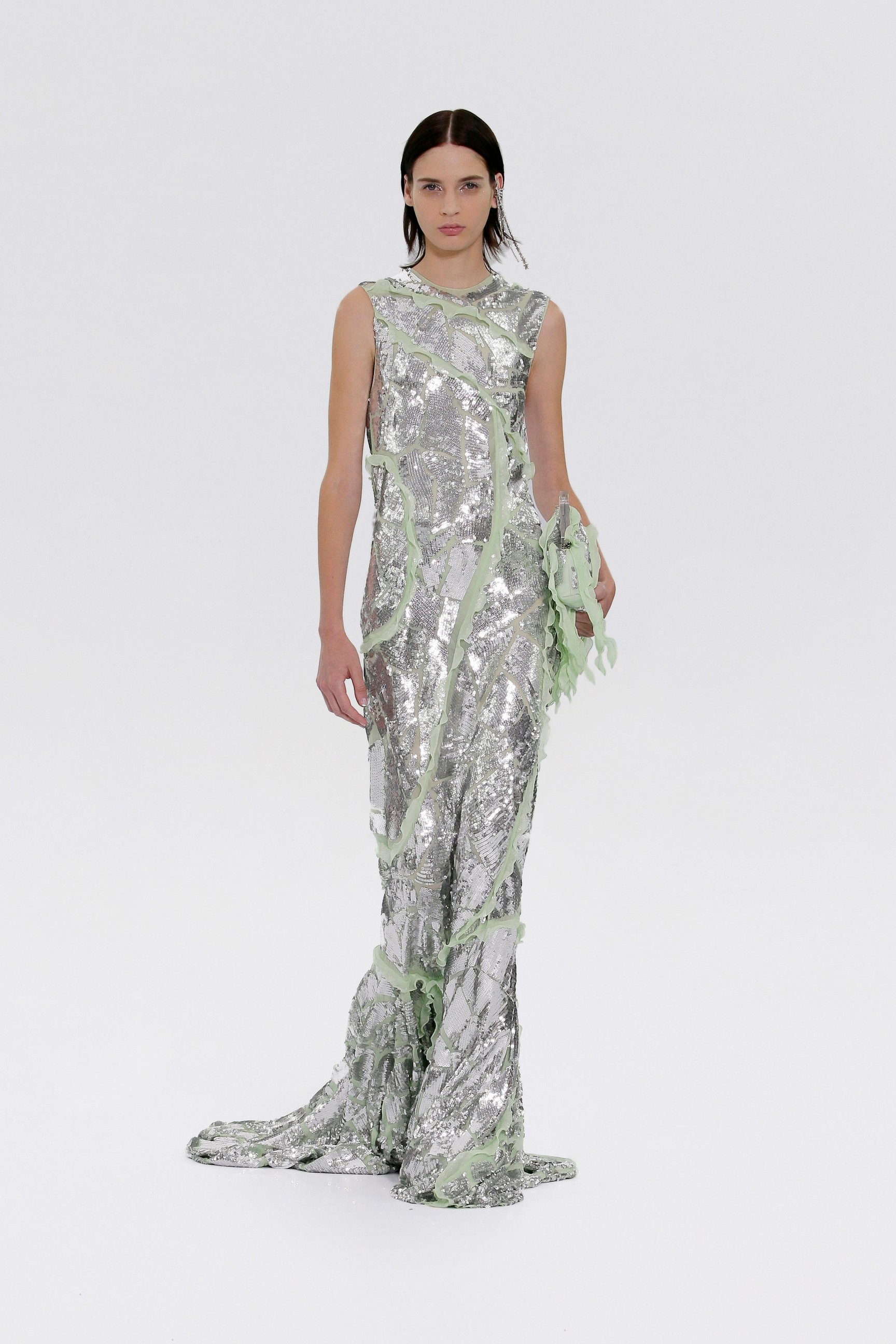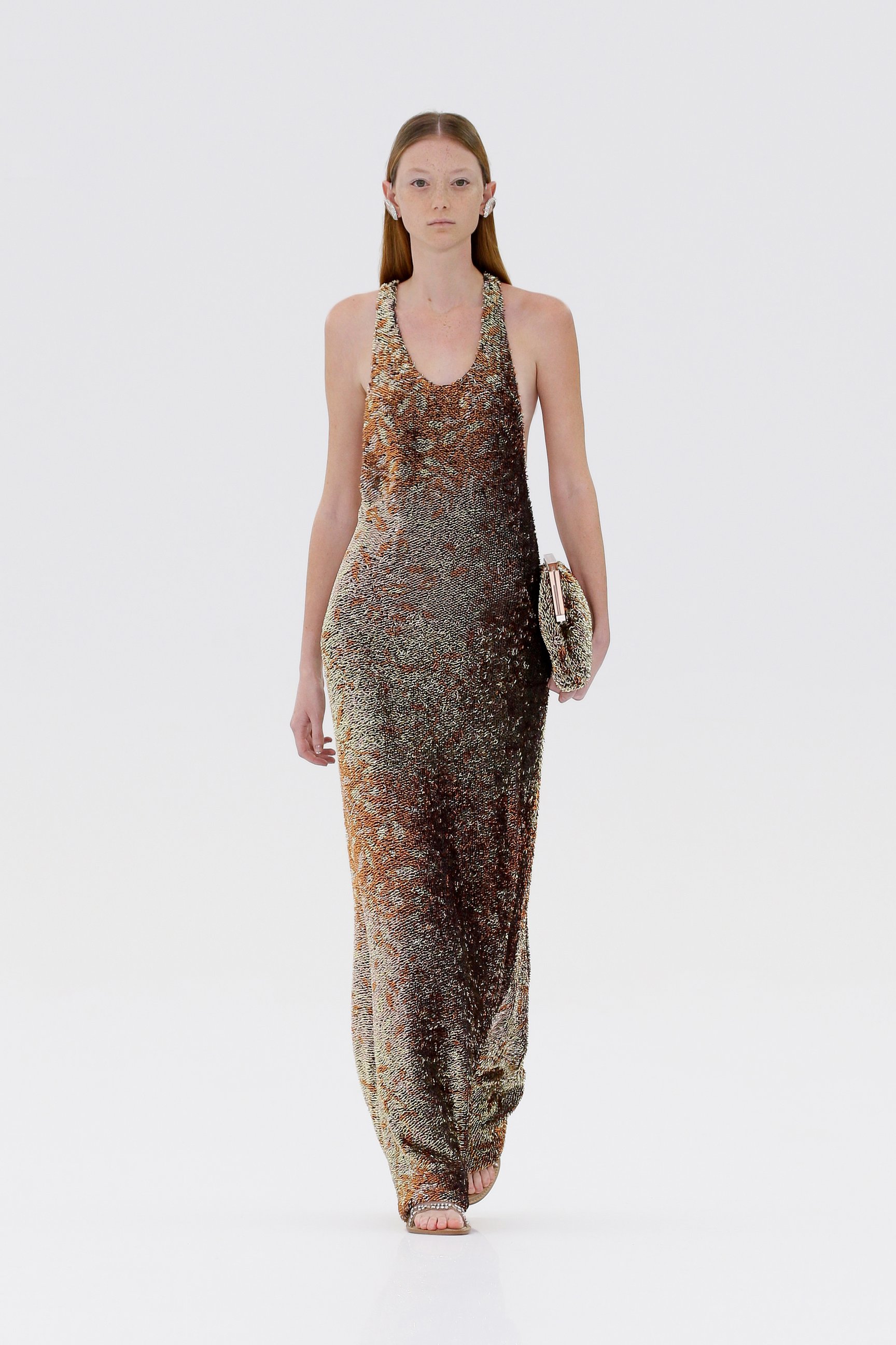 コレクションのキーワードは「パリンプセスト」。記された字句を消し、別の内容を上書きした羊皮紙の写本のことで、「反復され、透けて見える過去の断片が現在を作り上げ、未来へとさりげなく移り変わっていく」というコンセプトを反映している。ヌーディなカラーパレットやしなやかな素材は、羊皮紙そのものを思い起こさせた。