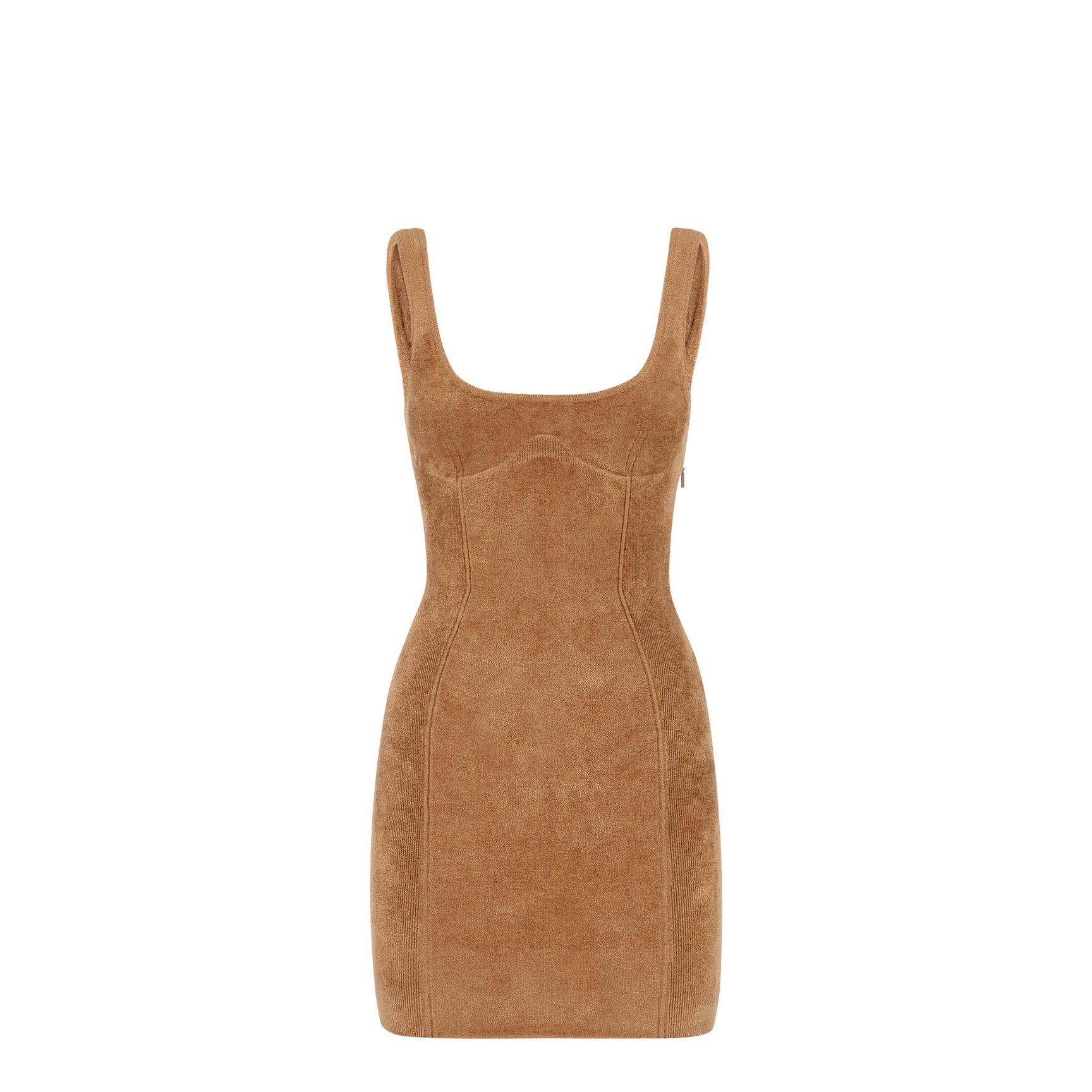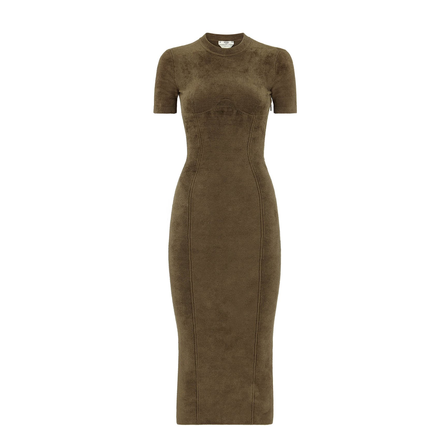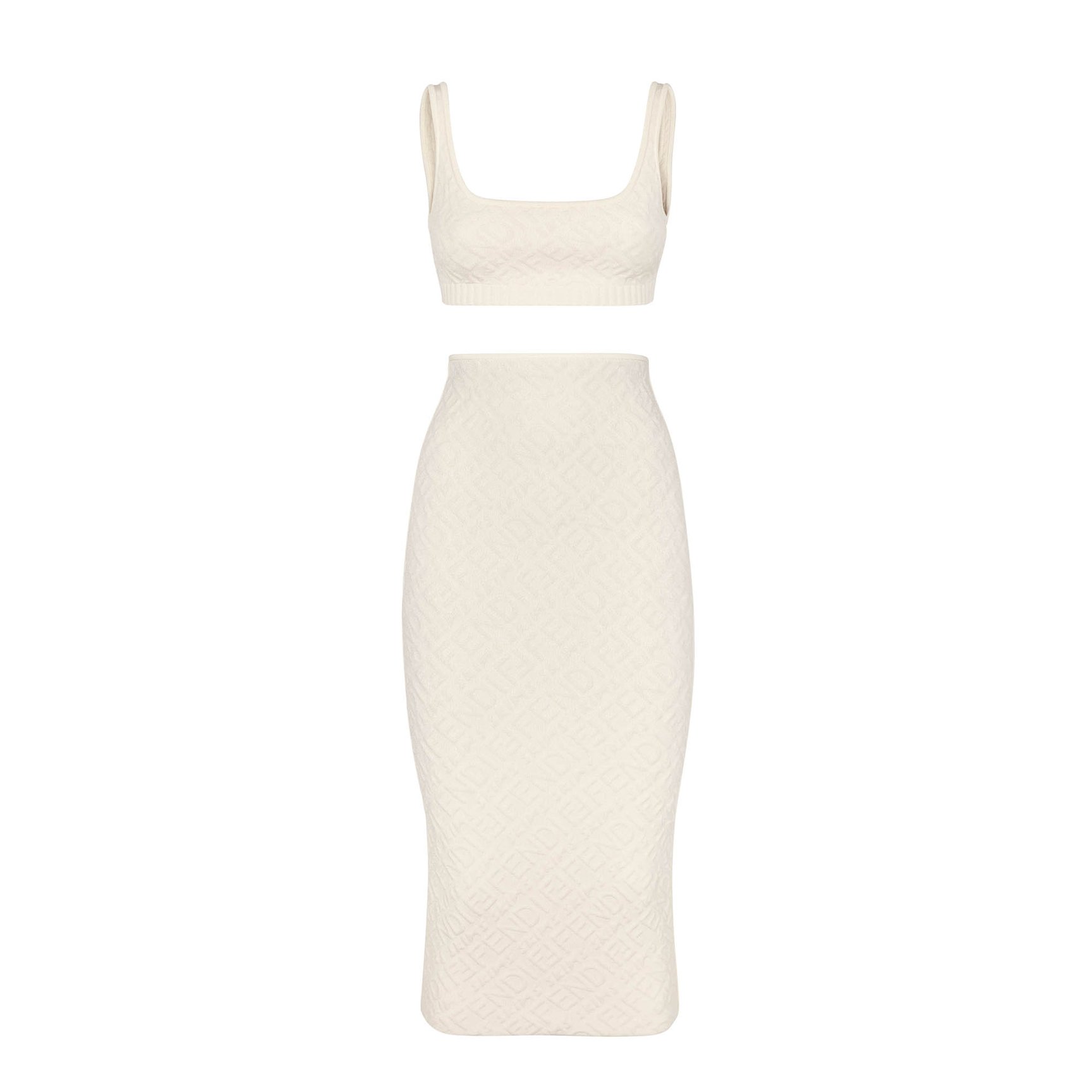 ウェアは「FENDISKIMS」のロゴがエンボスや透かし織り、プリントがあしらわれたドレスや、リバーシブルの再生ナイロンを使ったサステナブルなジャケットといったスポーティーかつエレガントなデザイン。ブラやショーツ(上下別・各2色セット)のアンダーウェアやストレッチが効いたボディスーツ、ショートパンツといったシェイプウェアは、1万5000円〜2万円ほどで手に取りやすい価格帯なのも魅力です。XXS 〜XLの6サイズ展開なので、自分の体型に合ったものをセレクトできます。ボディコンシャスな服は...と躊躇しがちな人には、レイヤードのポイントになりそうな長袖のボディスーツやストッキングがおすすめです。