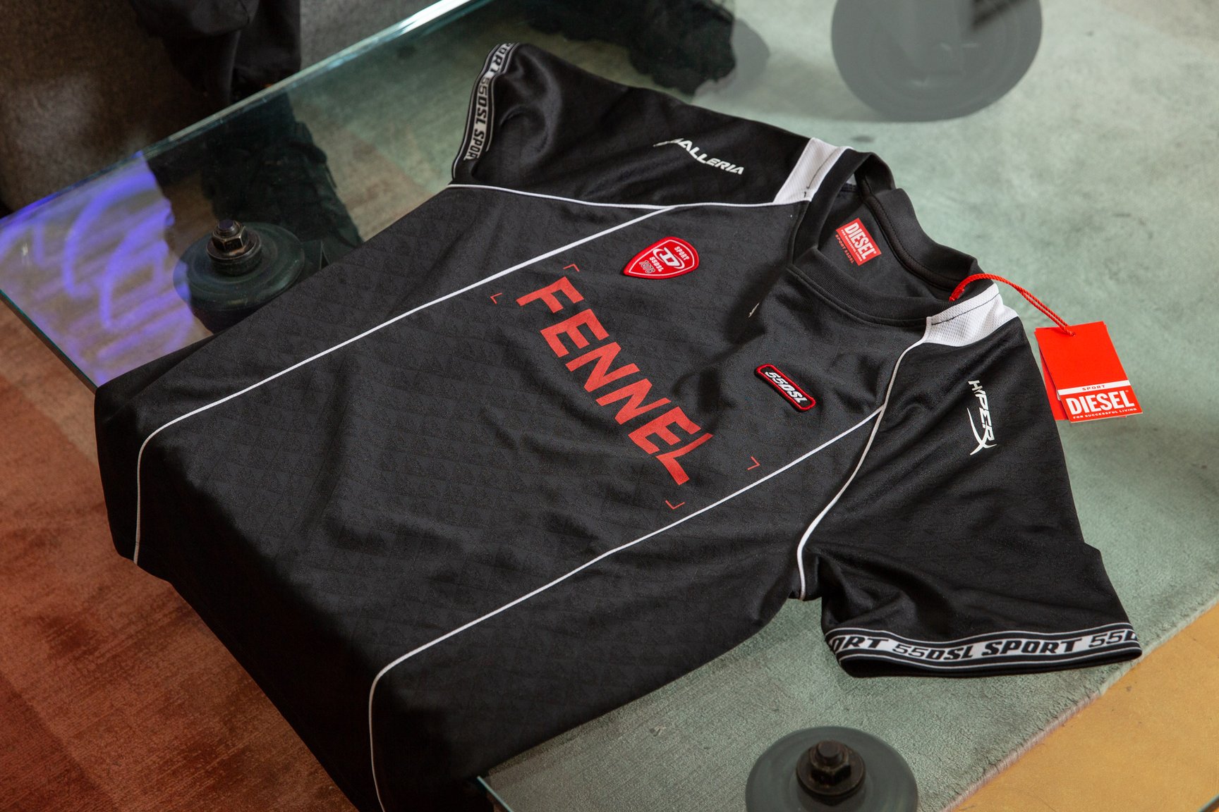 ファッション業界のみならず、知名度の高いディーゼルとのコラボはFNNLにとって大きな一歩です。ディーゼル スタジオでのイベントの他に、コラボアイテムとしてチームのユニフォームを製作しました。