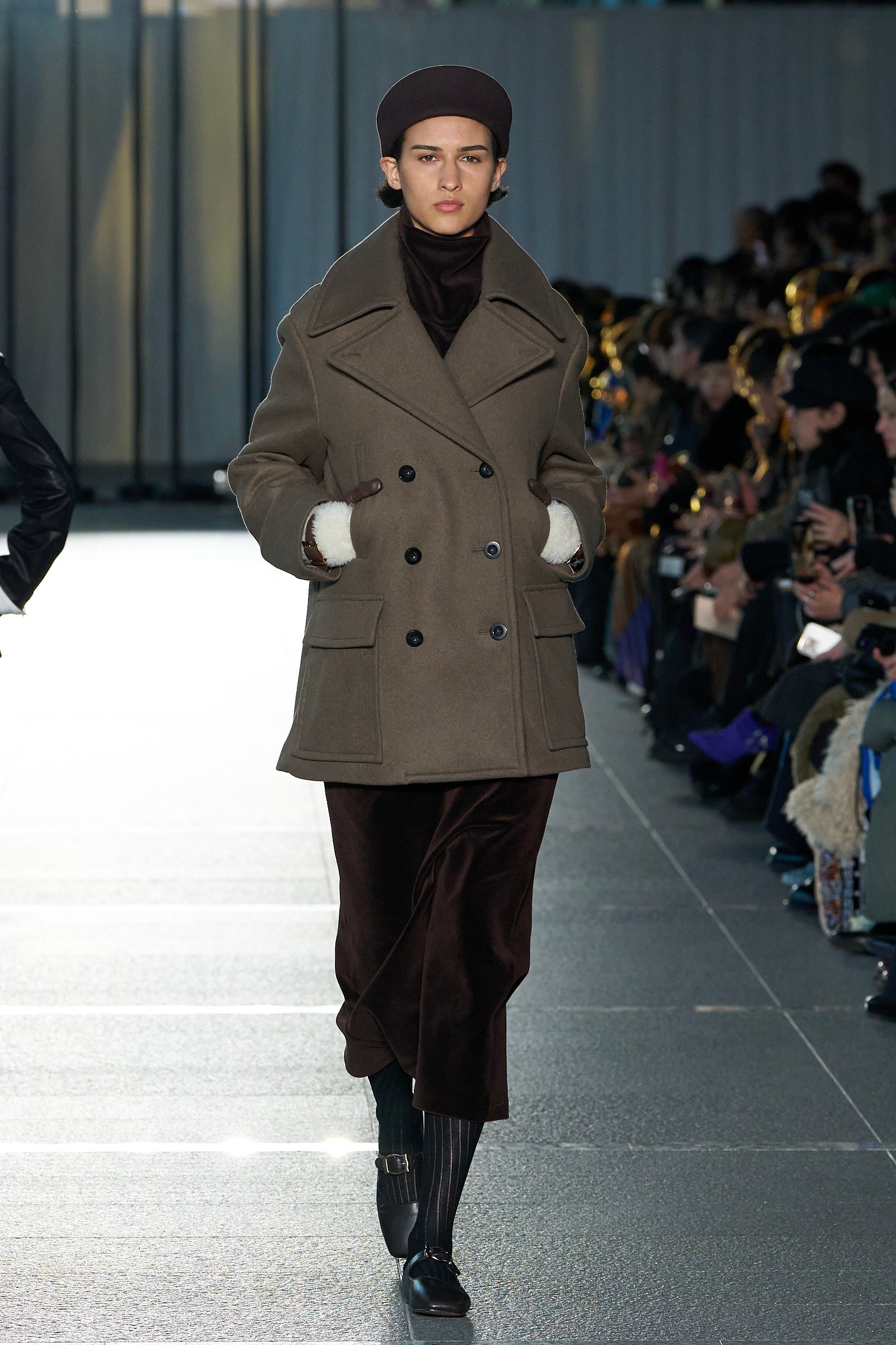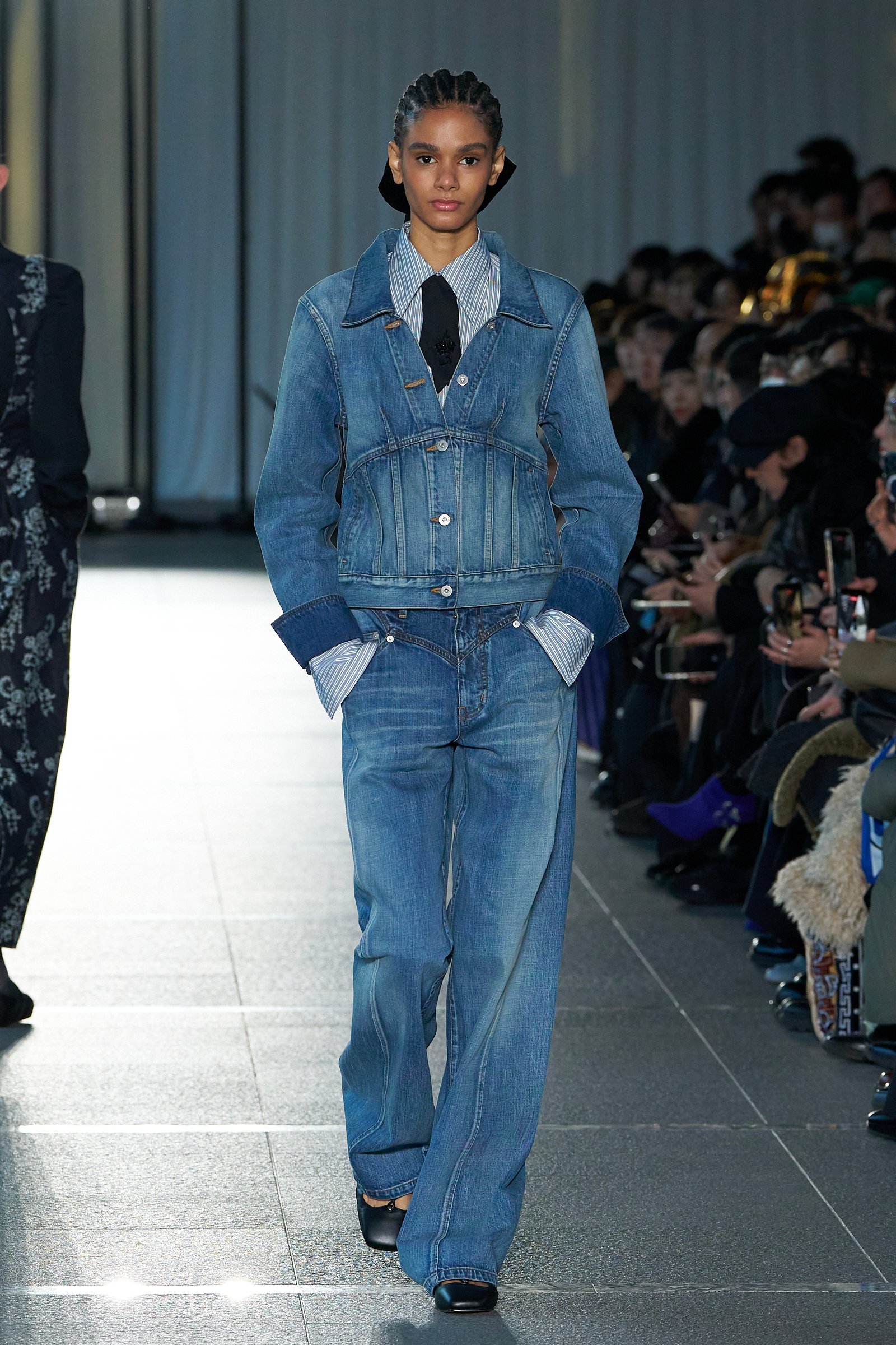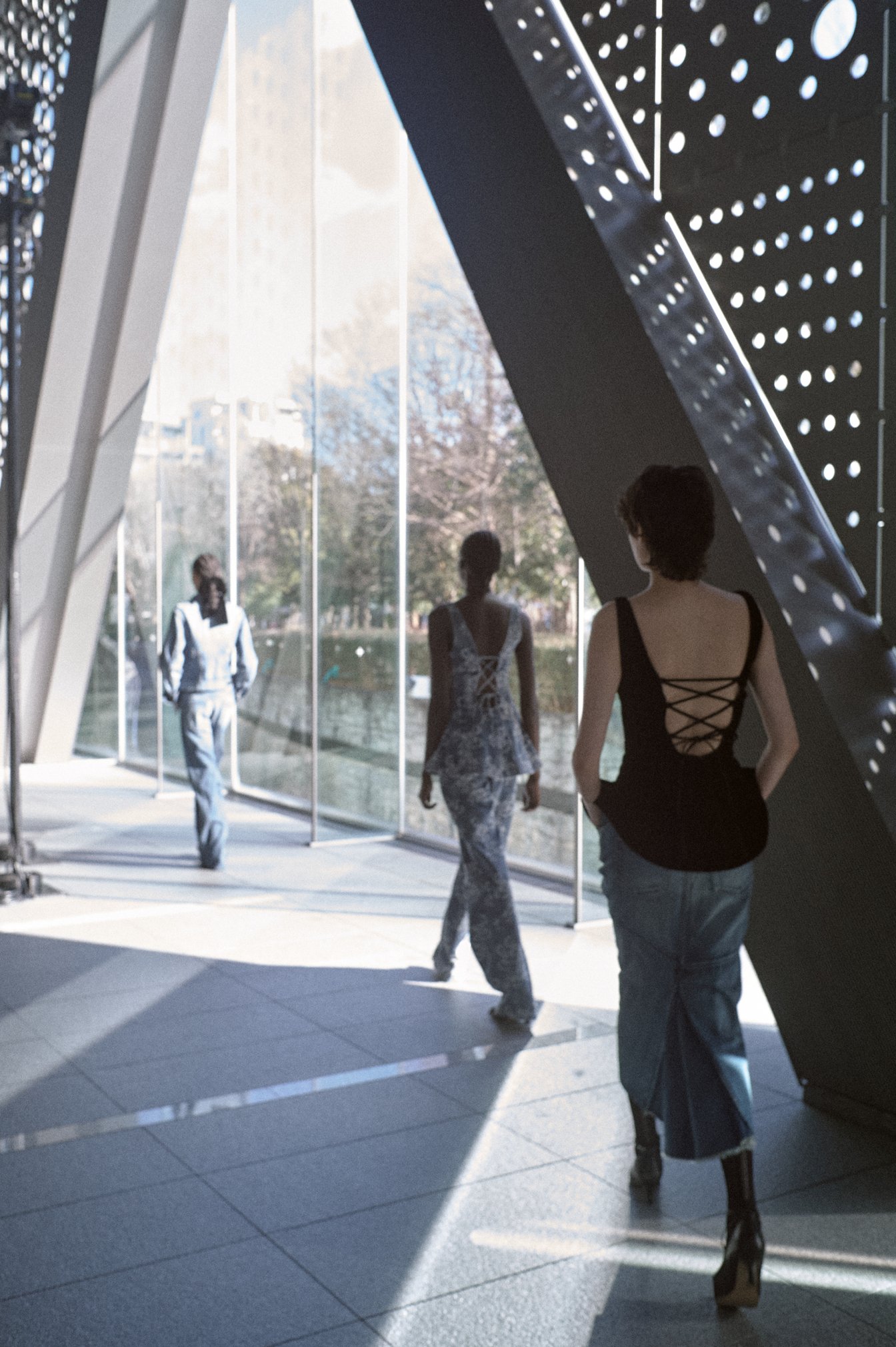 その意図は、自然光がたっぷりと差し込む東京都現代美術館のロビーを舞台に、まるで雑踏の中を女性たちが静かに闊歩するような、現実世界と地続きの世界観でショーが行われたことや、モデルの人選にも反映されていた。過去のショーでも、フェティコは人種や体型、年齢など、モデルの多様性を通してブランドが描く女性像を提示してきたが、今回はそれに加えてプロのモデルだけでなく、ブランドが「素敵だ」と考えるファッション業界で働く一般の女性たちもコレクションを纏ってランウェイを歩いた。そのことからも、服作りを通してより多くの女性たちの日常に寄り添いたいという、舟山の意思や願いが感じられる。