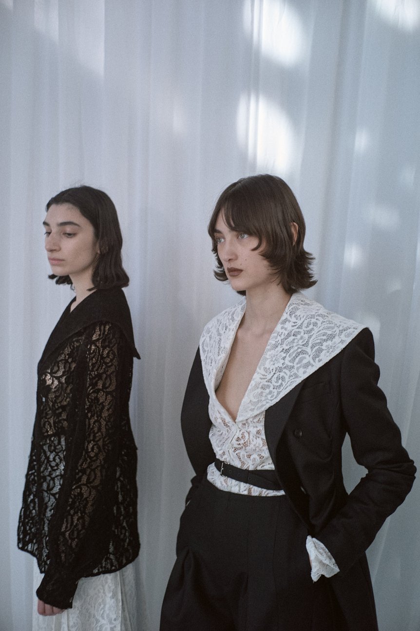 従来は意図的に避けていたようにも思える「メンズウェア」や「男性的な要素」をどう服に取り入れ落とし込むことで、より女性たちの日常と生に寄り添うことができるのか?そして、ボディコンシャスなシルエットや肌見せ、ランジェリーディテールといった従来のフェティコらしさを削ぎ落としてもなお表現し得る「フェティコらしさ」とは何なのか?⎯⎯そんな新たな挑戦と探求がはじまったように思える今季のコレクションは、ブランドのさらなる拡張や飛躍を予感させるものだった。