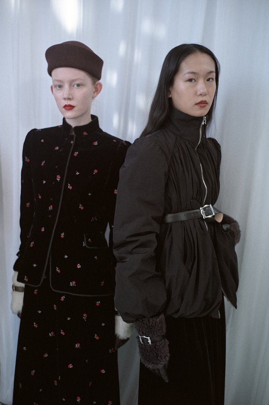 今季のコレクションのテーマは、「気品の輪郭(The Contours of Grace)」。まだ女性が自立することが困難だった1920〜30年代に、自らの意思で既存の枠組みを壊して人生を切り拓いた先駆的な女性たちのスタイルや精神性を着想源に、舟山が理想とする「成熟した女性」の在り方や、女性の装いに宿る「気品」を探求しコレクションに落とし込んだという。